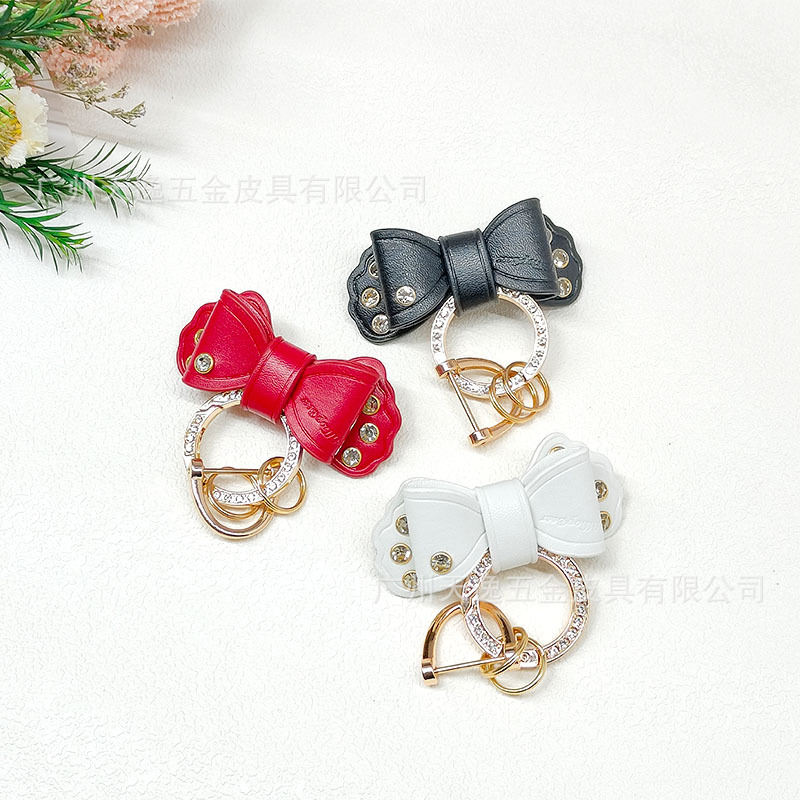 跨境亚马逊希音新款镶钻蝴蝶结汽车钥匙扣可爱钻圈马蹄扣钥匙链包