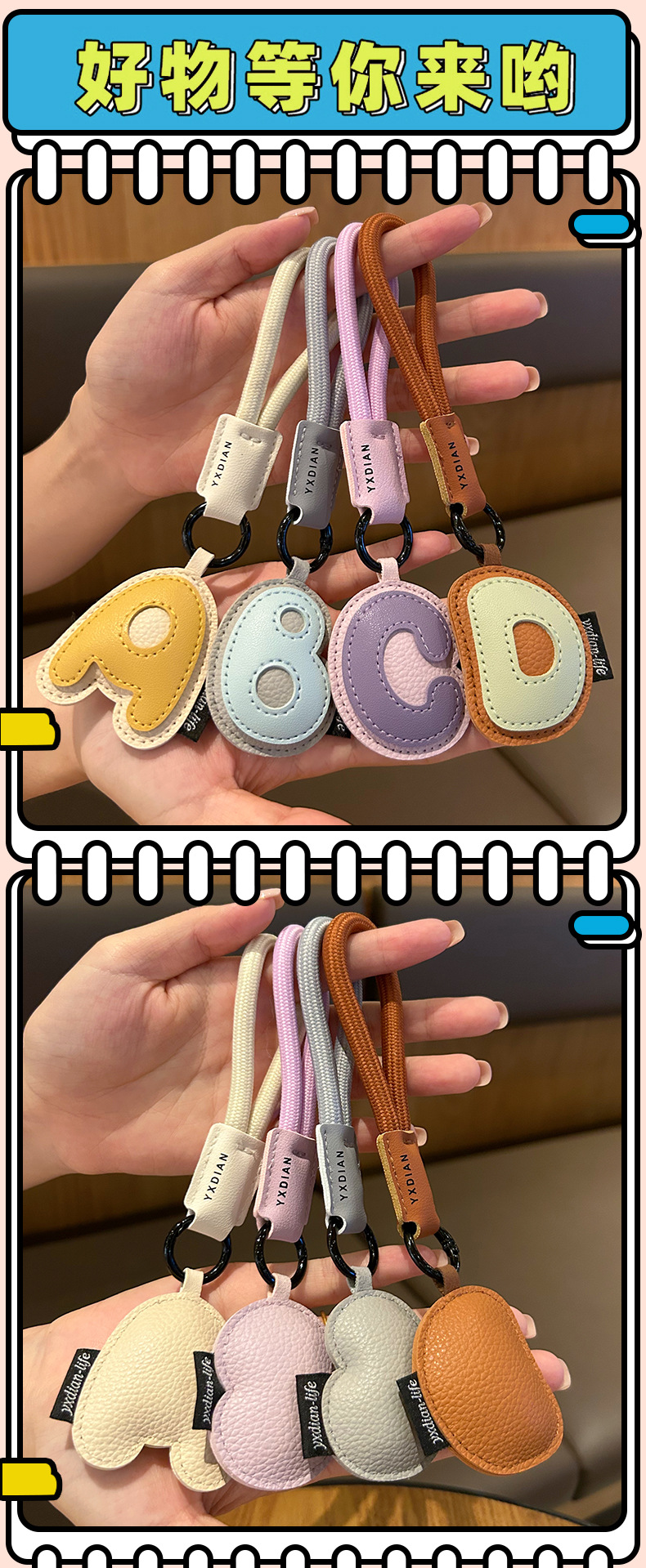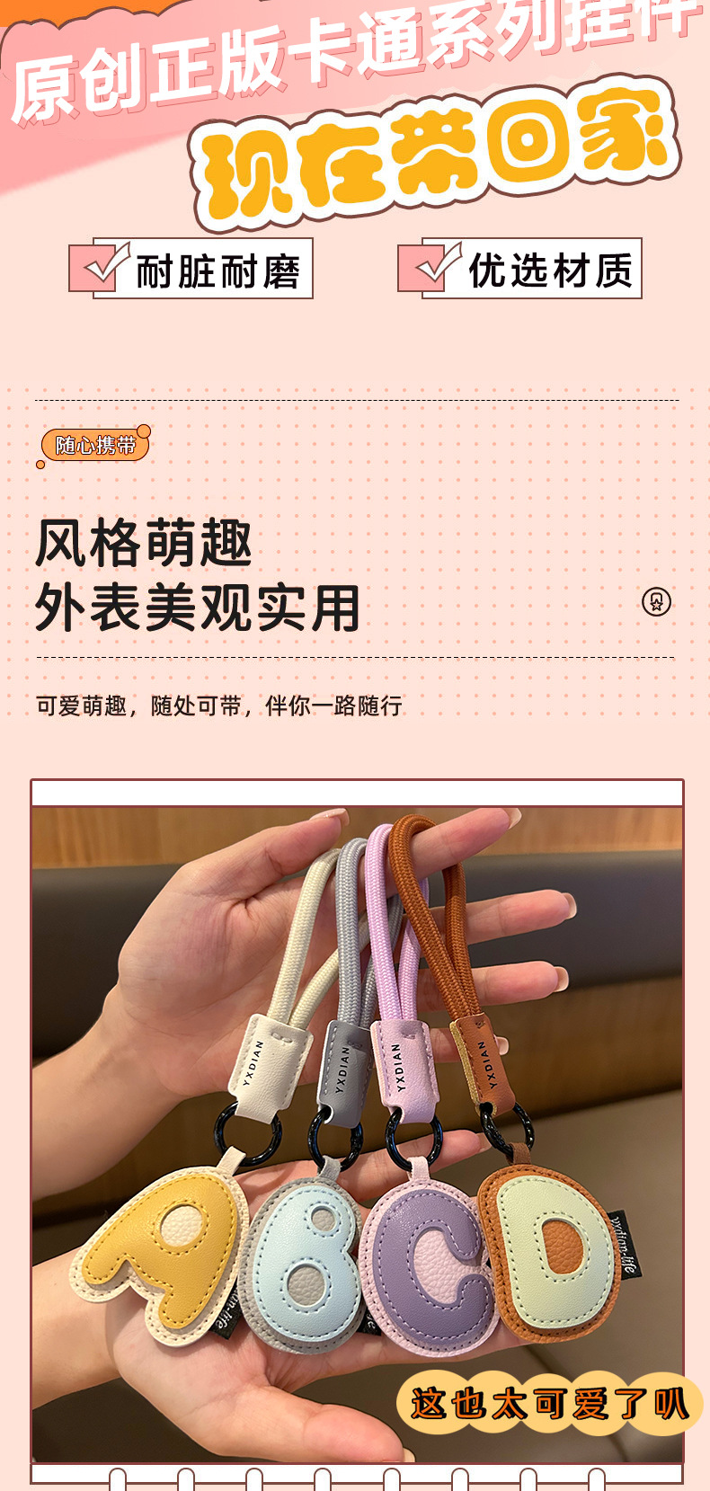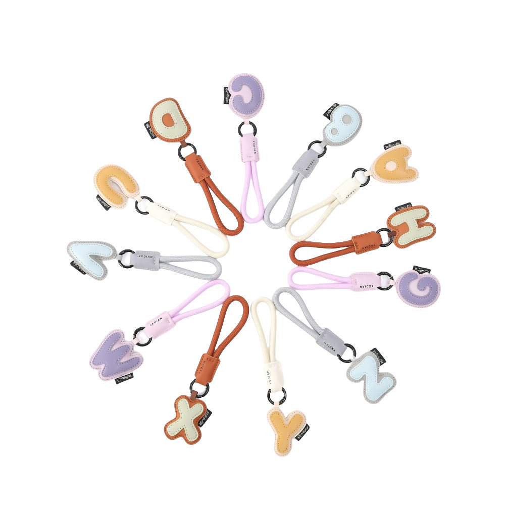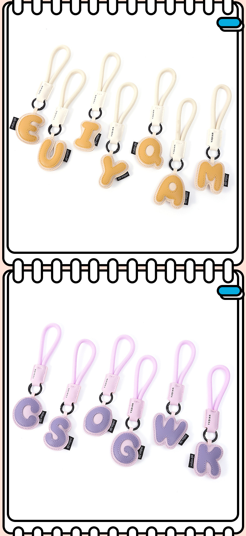 跨境原创日韩钥匙扣英文字母皮革多巴胺包包挂件小饰品配件礼物
