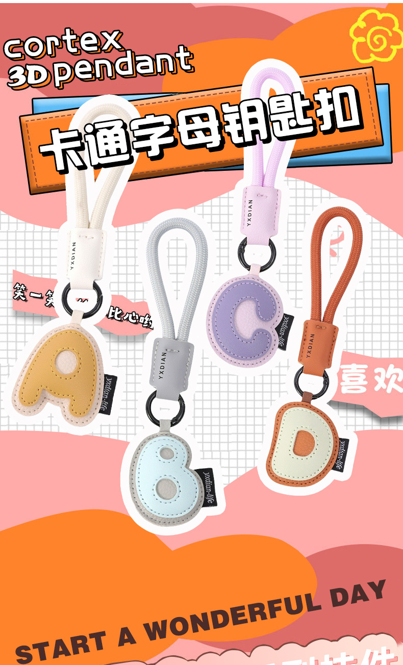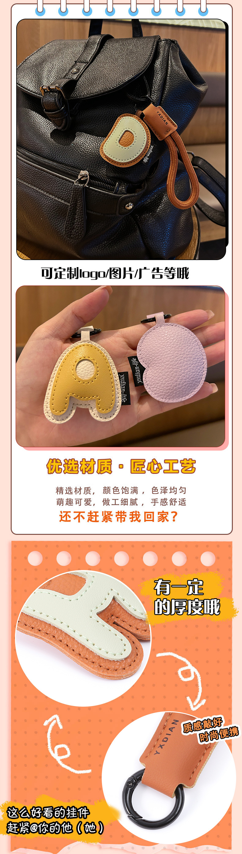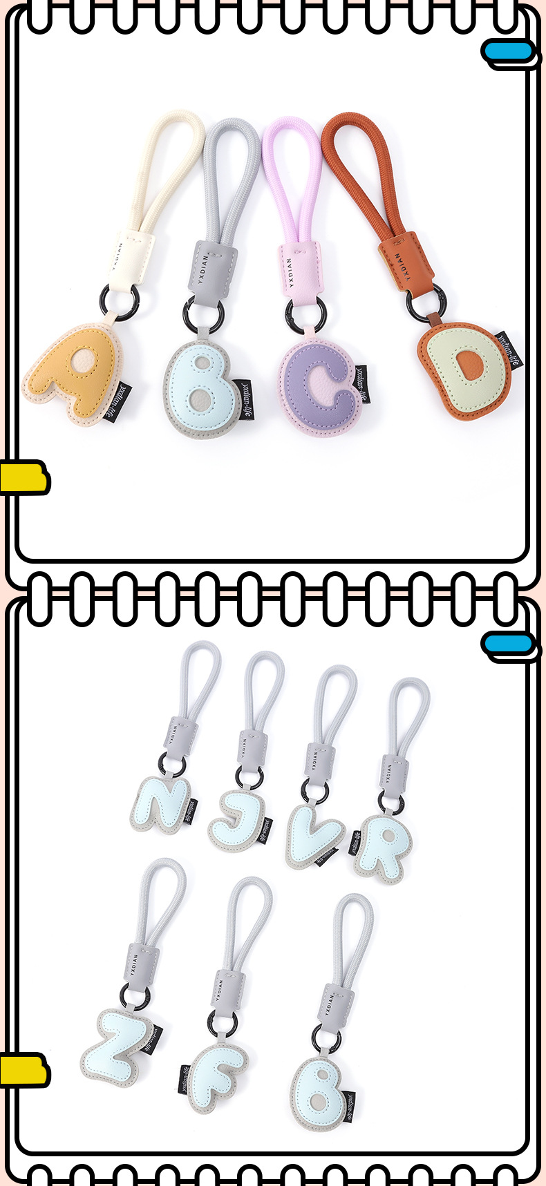 跨境原创日韩钥匙扣英文字母皮革多巴胺包包挂件小饰品配件礼物