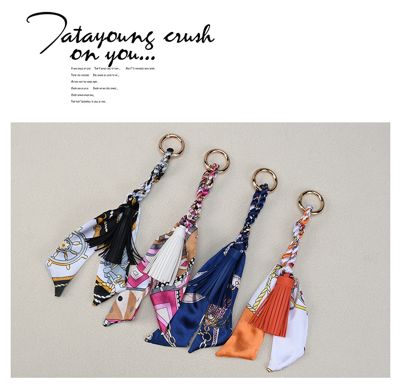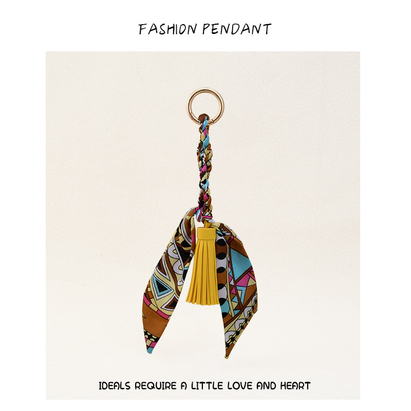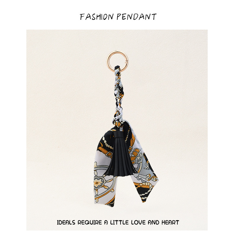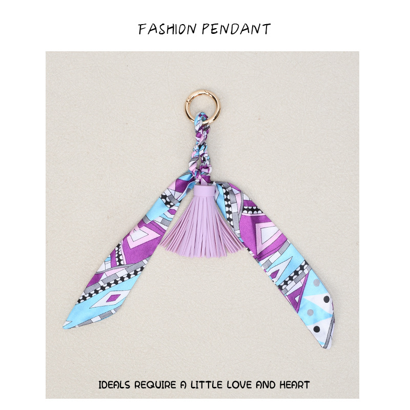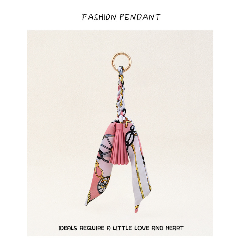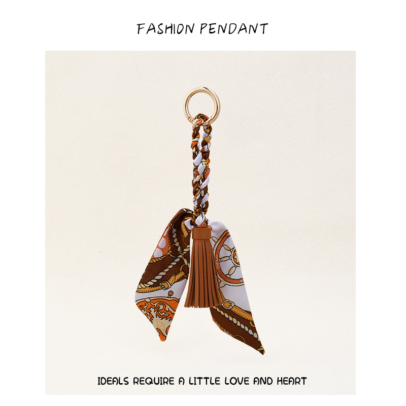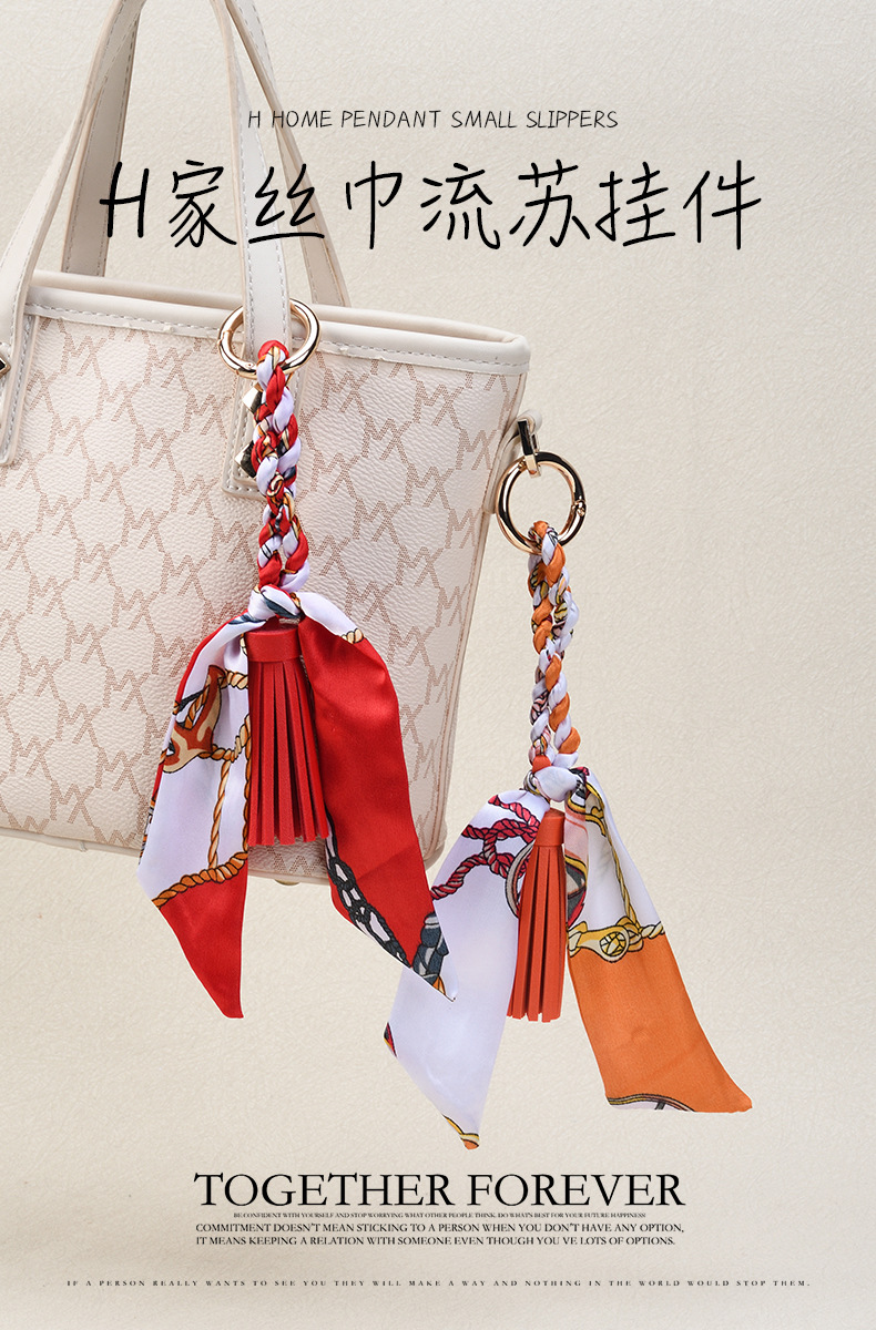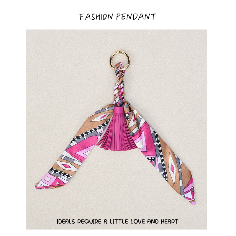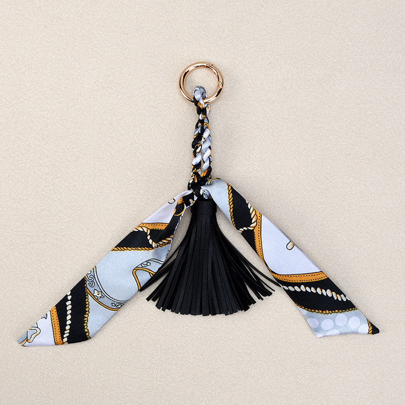 韩国高端时尚丝带蝴蝶结皮革流苏挂件丝巾穗子挂饰包包汽车钥匙扣