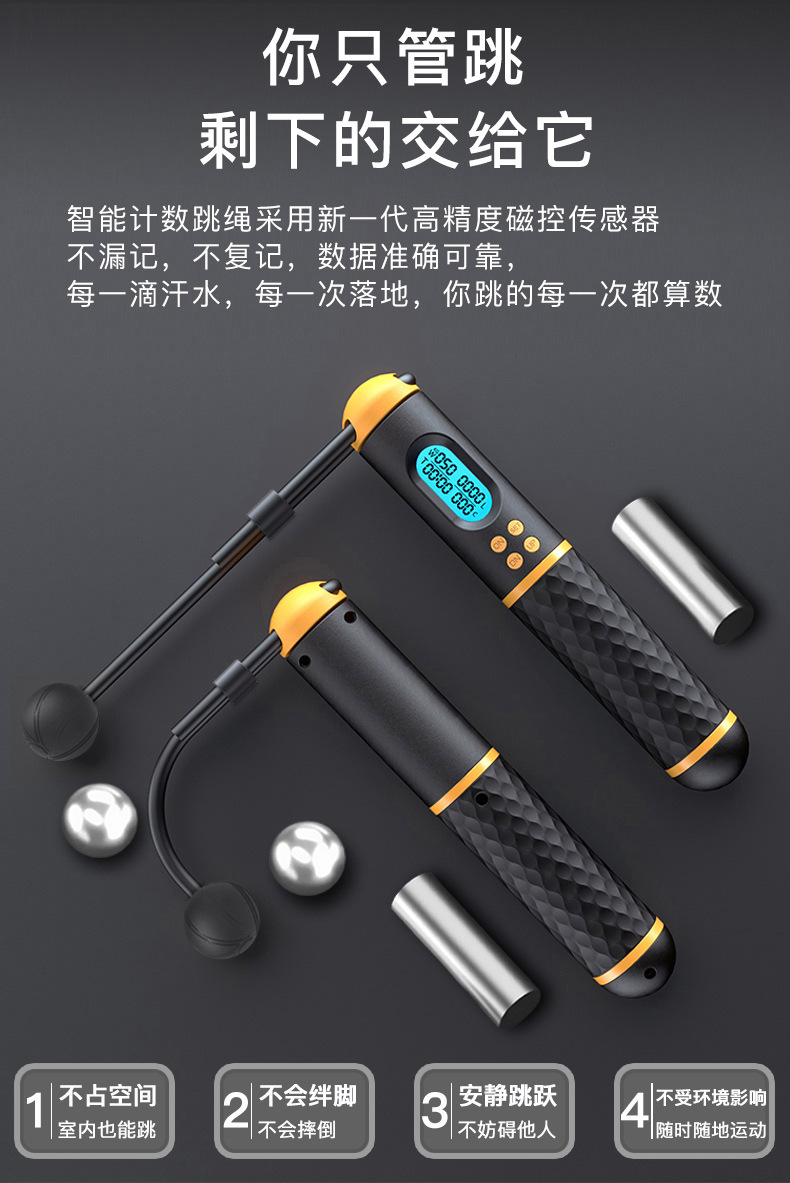 严选厂家直销智能计数跳绳成人健身无线跳绳学生中考训练无绳跳绳
