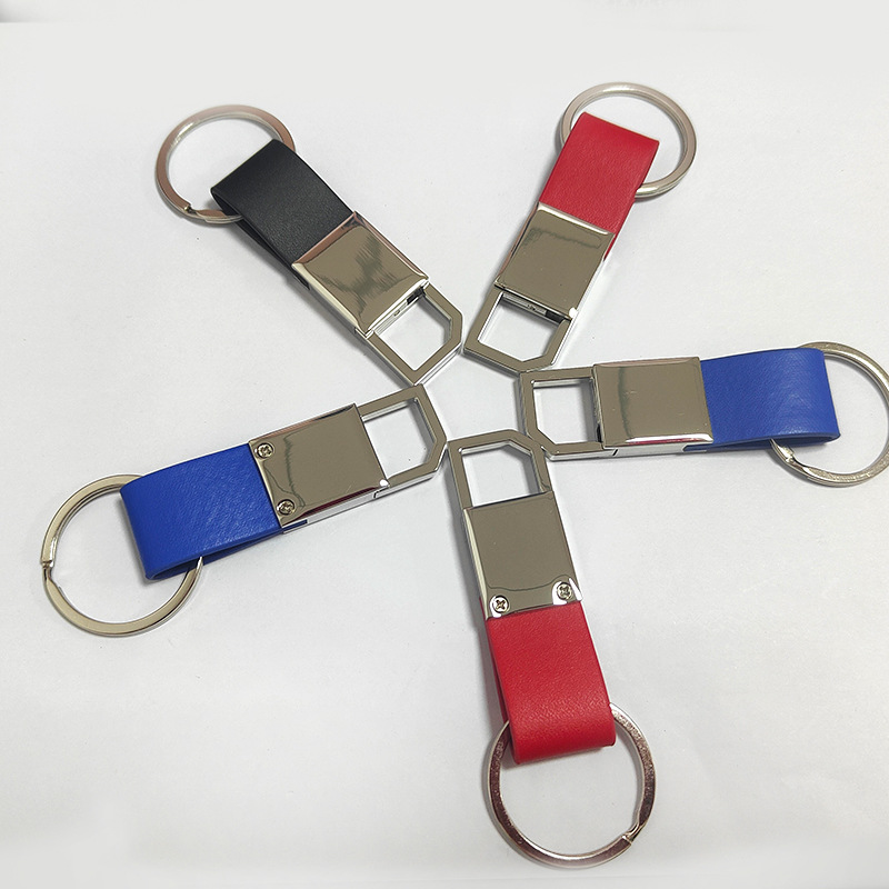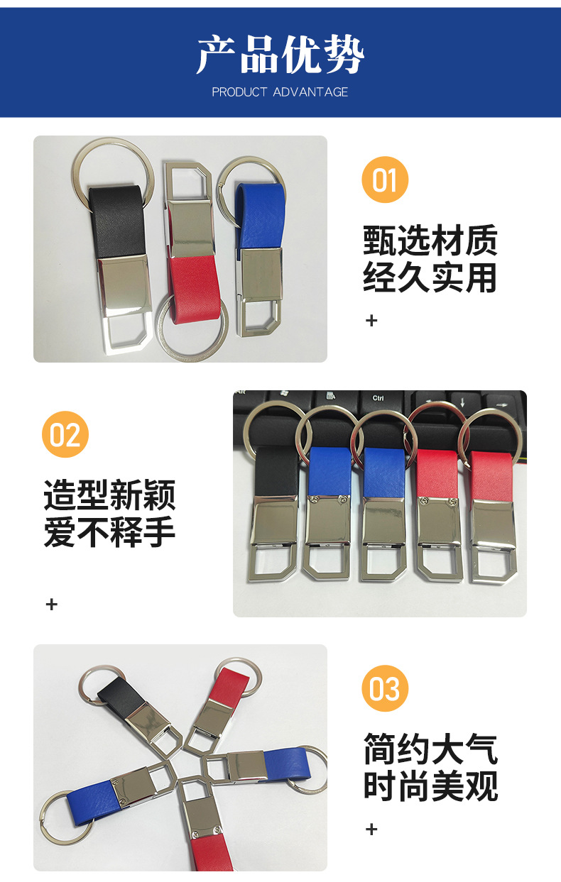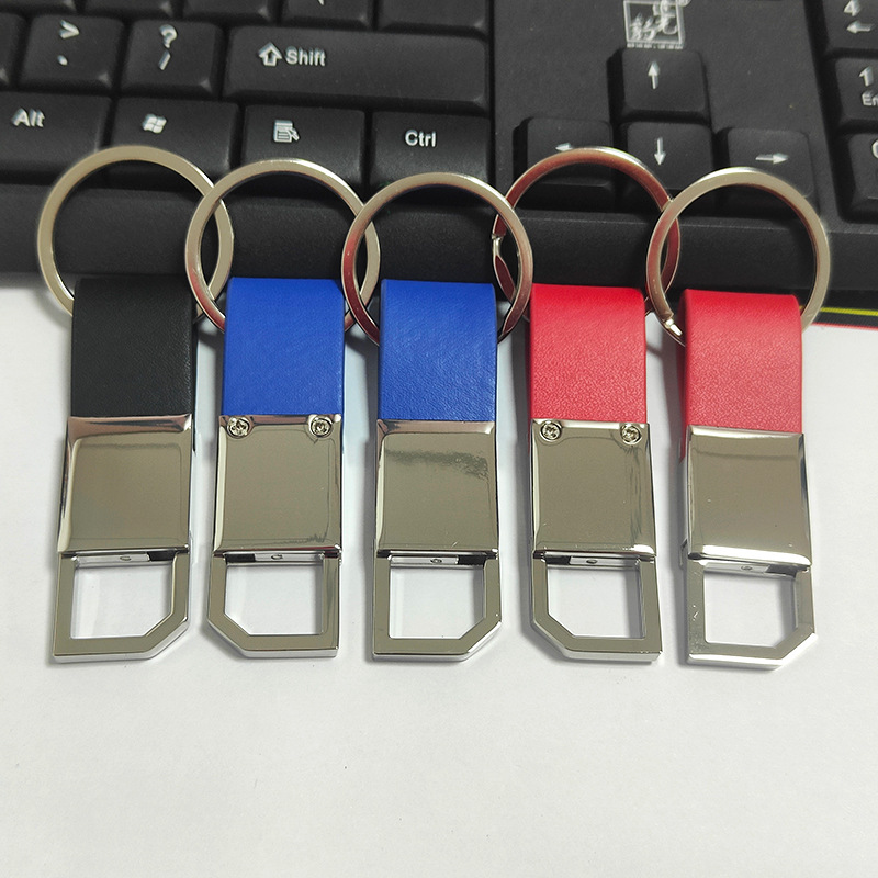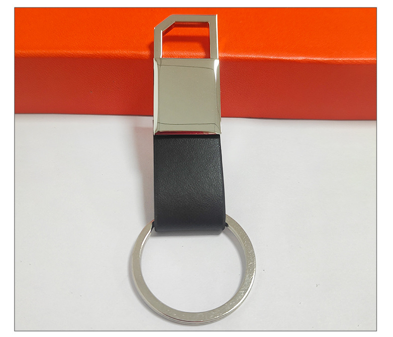 厂家供应商务金属钥匙扣 斜角拉环皮质钥匙扣配件 创意皮质礼品钥