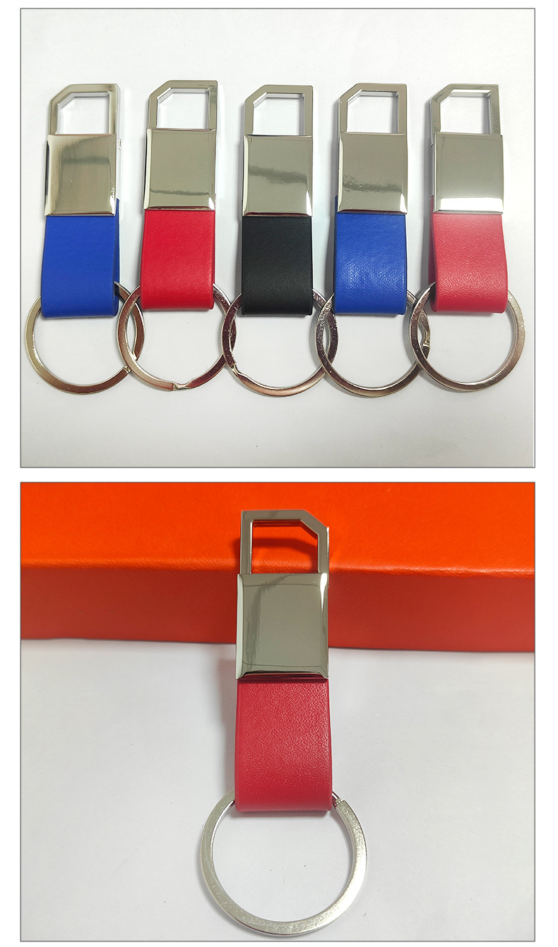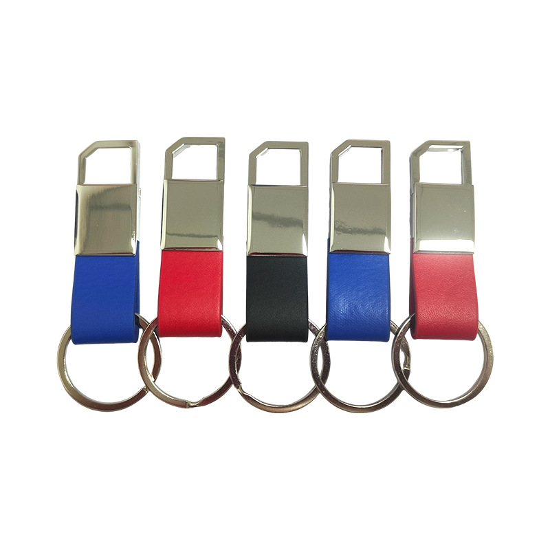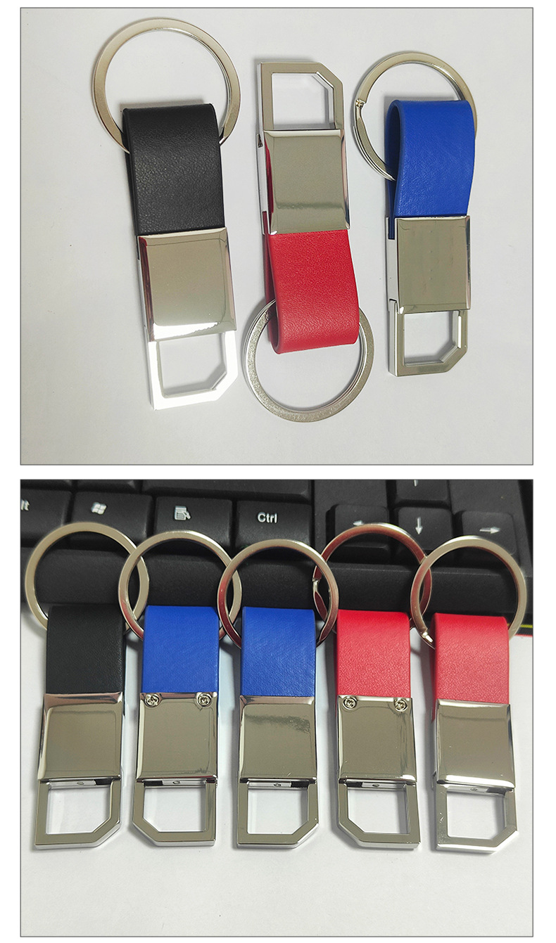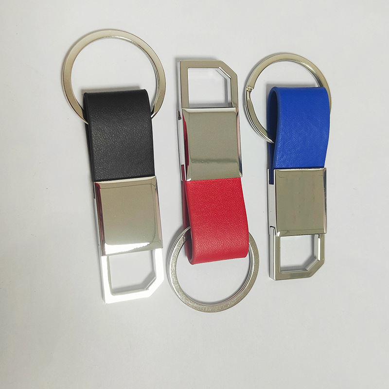 厂家供应商务金属钥匙扣 斜角拉环皮质钥匙扣配件 创意皮质礼品钥