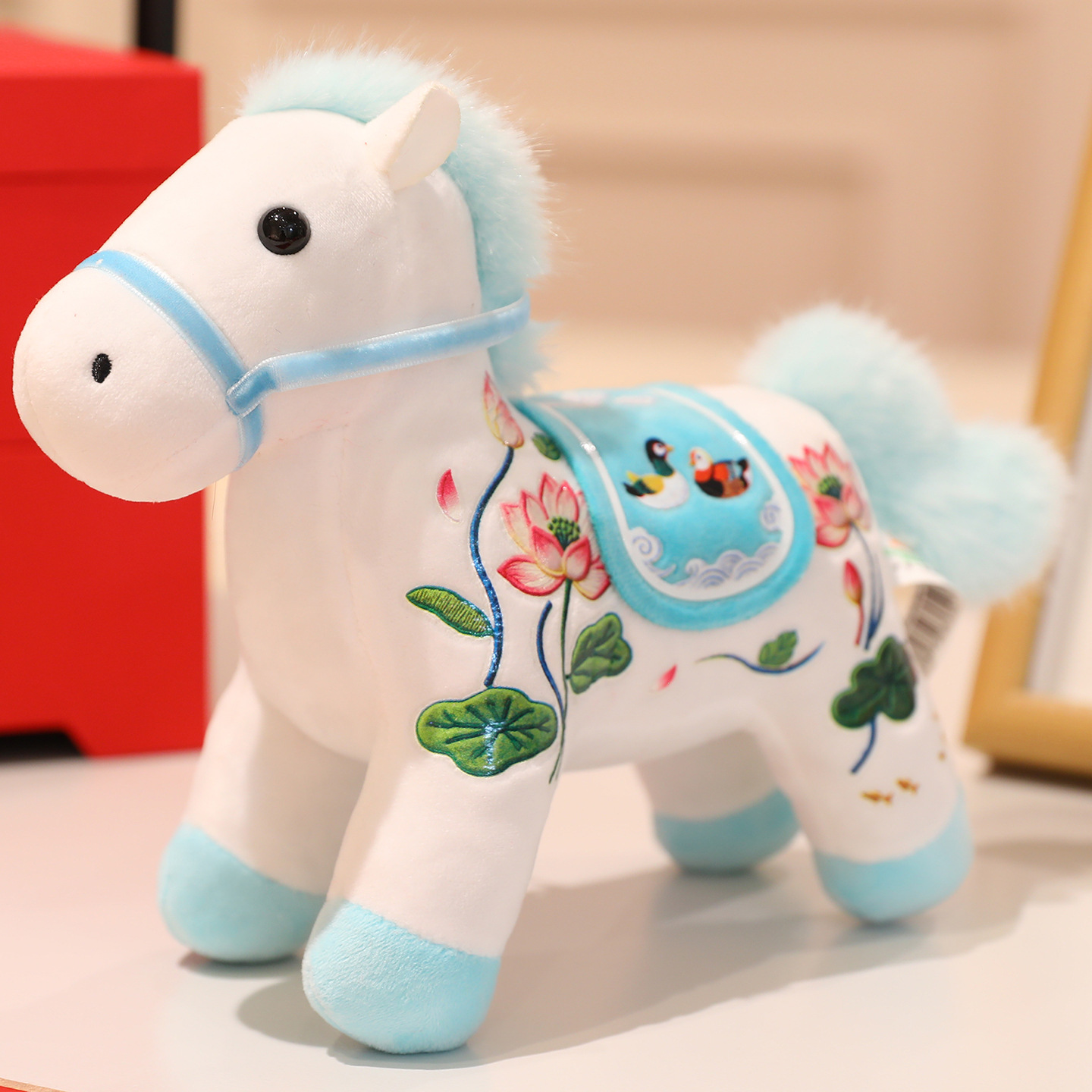 2026马年吉祥物公仔毛绒玩具青花瓷生肖马玩偶中国风民俗小马挂件