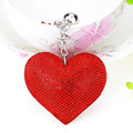 diy饰品配件桃心烫钻皮革钥匙扣 时尚流苏钥匙圈 包包挂件批发