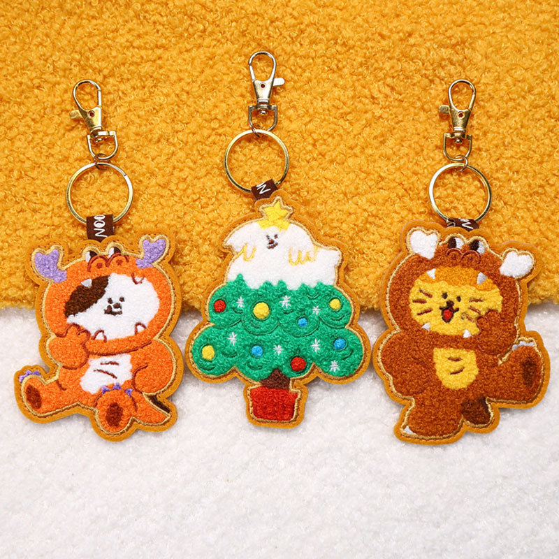 定制布艺毛毡刺绣钥匙扣卡包挂件双面绣花织带包挂皮革异形小饰品