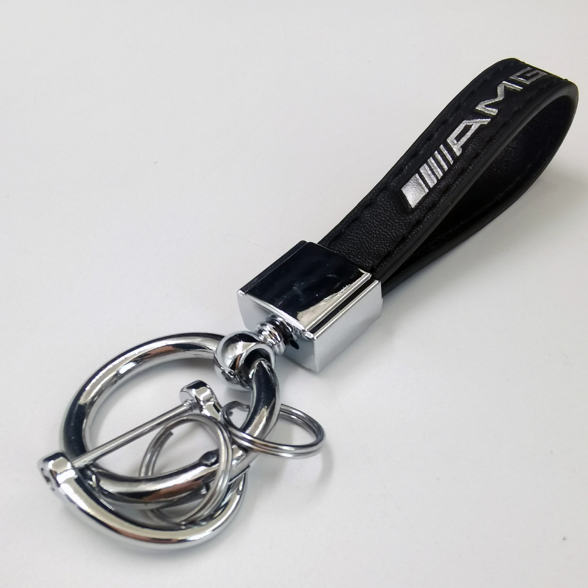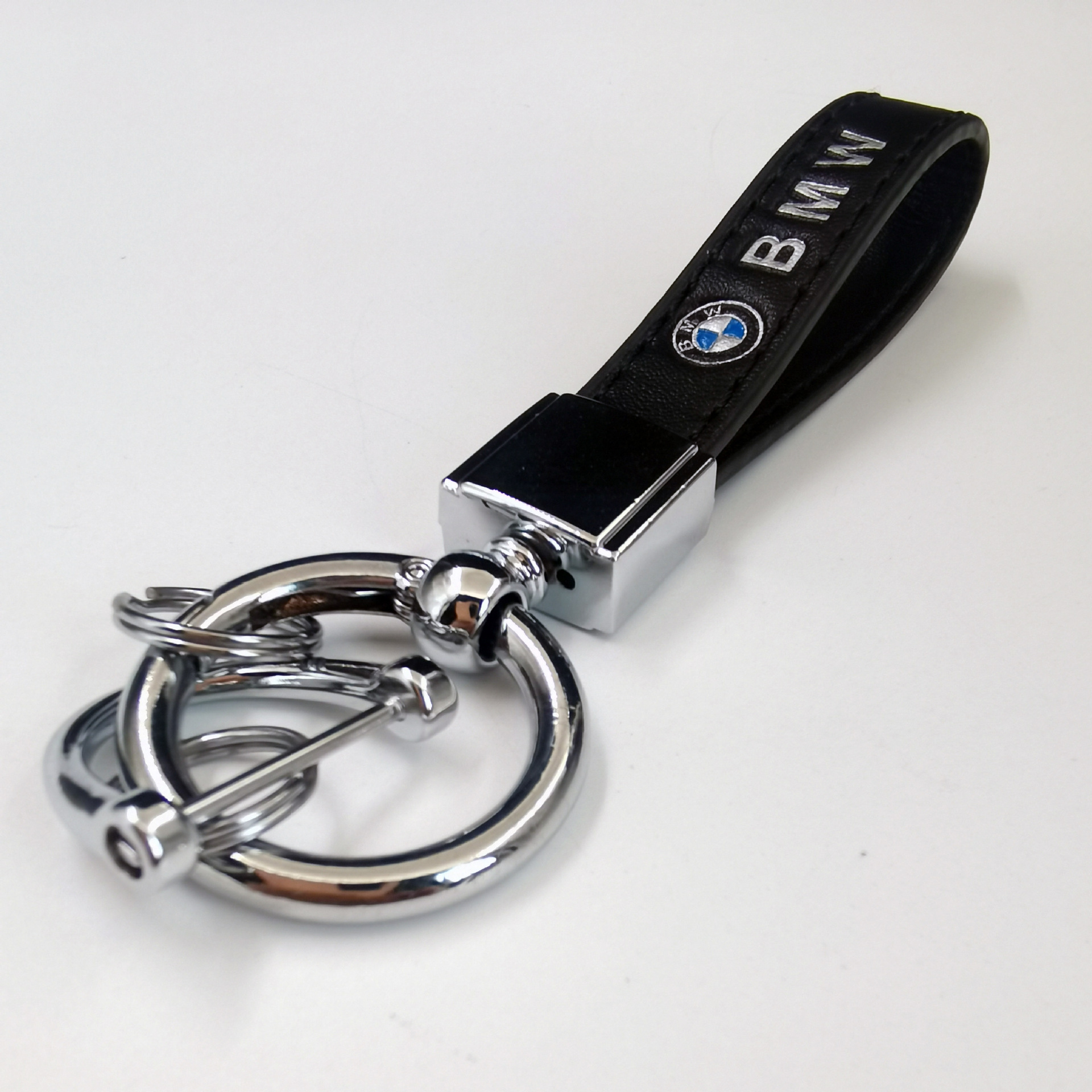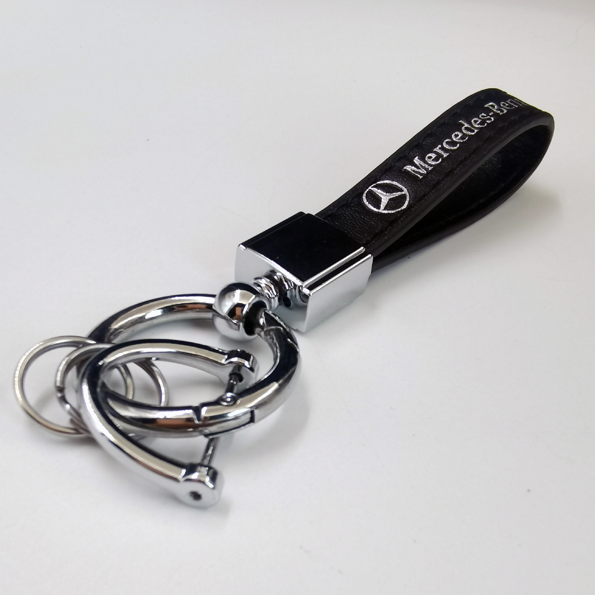 新款汽车钥匙扣金属创意时尚宝马奔驰logo车标皮质钥匙链挂件批发