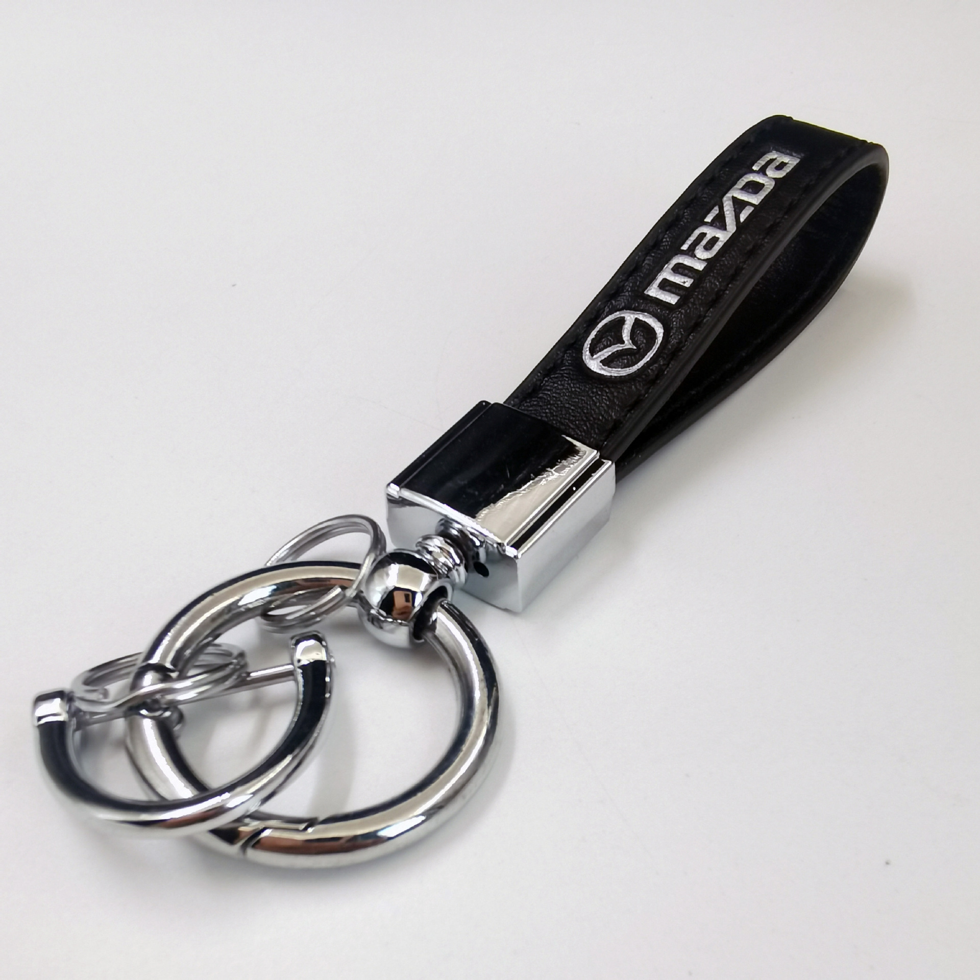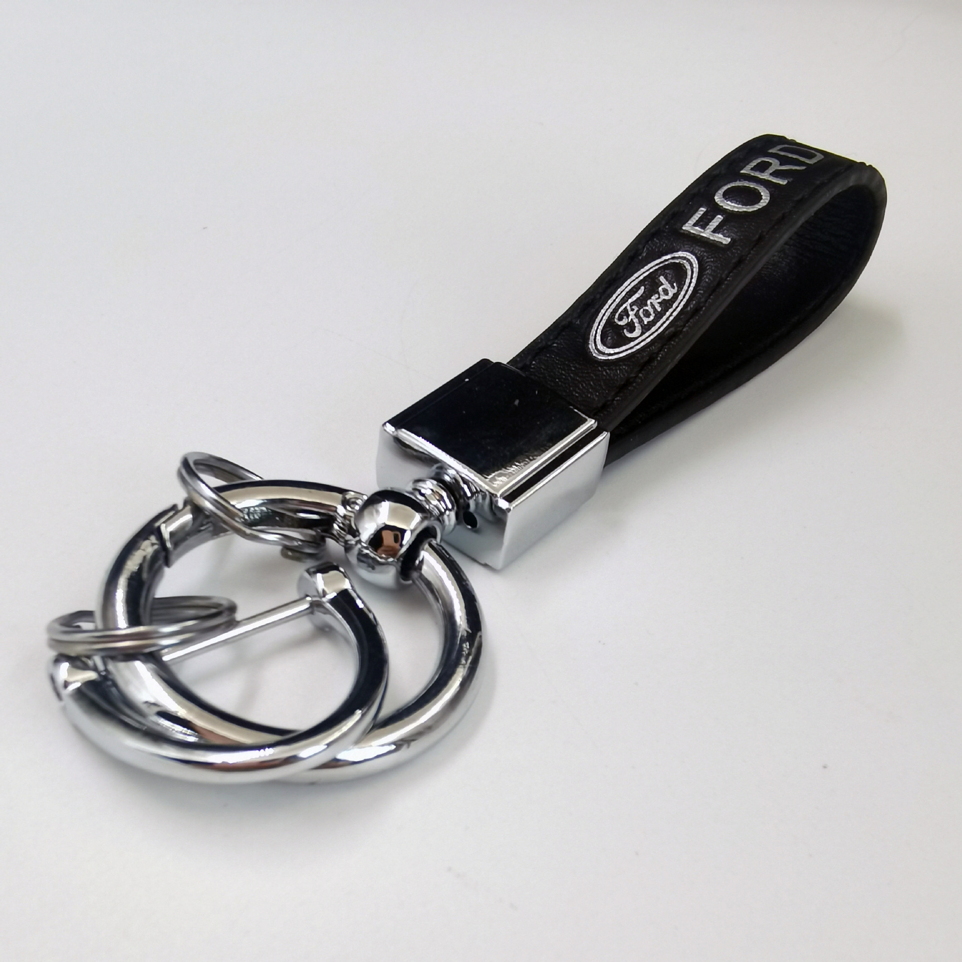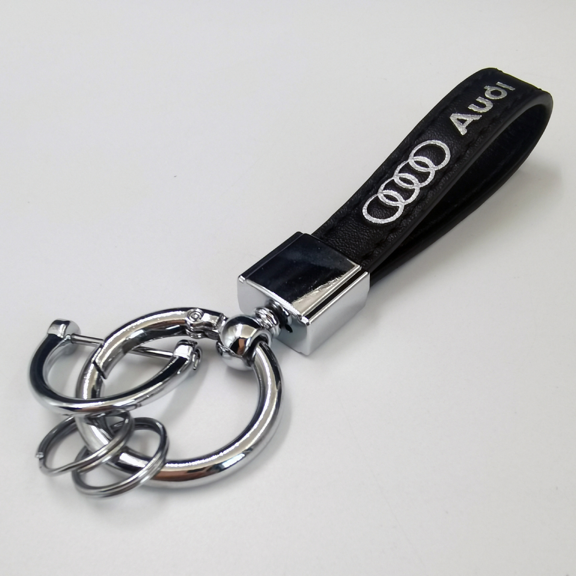 新款汽车钥匙扣金属创意时尚宝马奔驰logo车标皮质钥匙链挂件批发