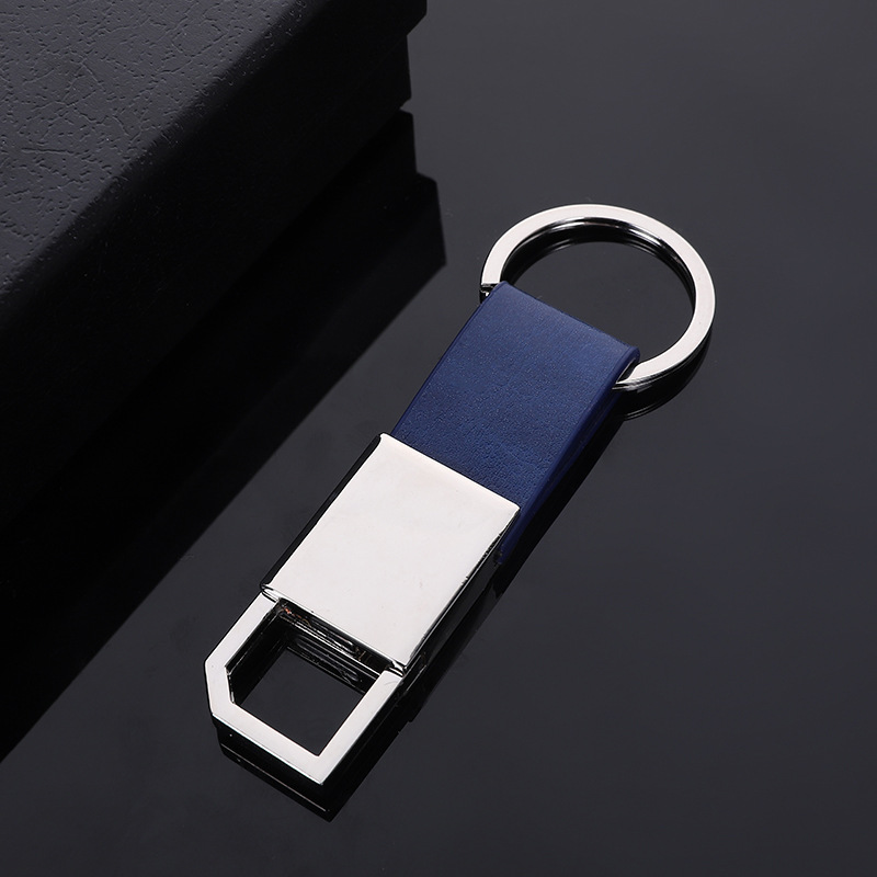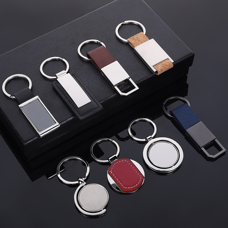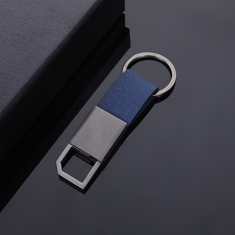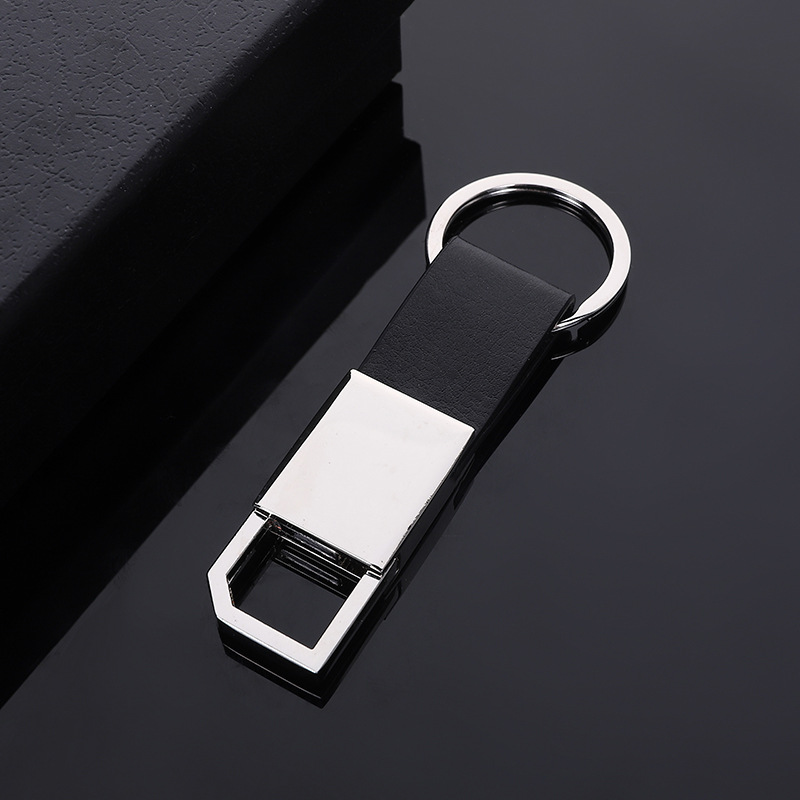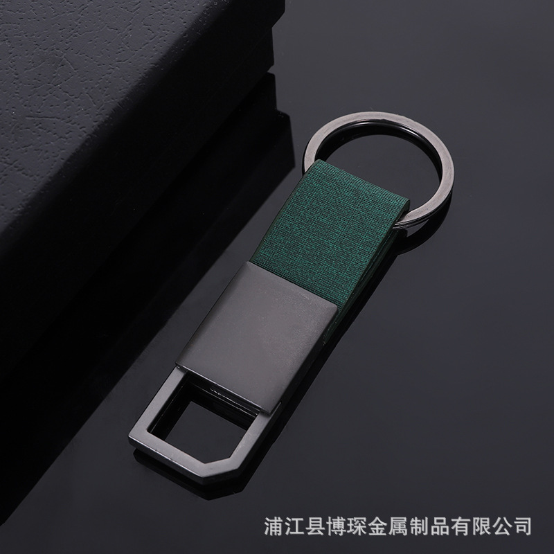 商务pu皮质钥匙扣激光刻字印logo高级感金属皮扣汽车皮革挂扣配件