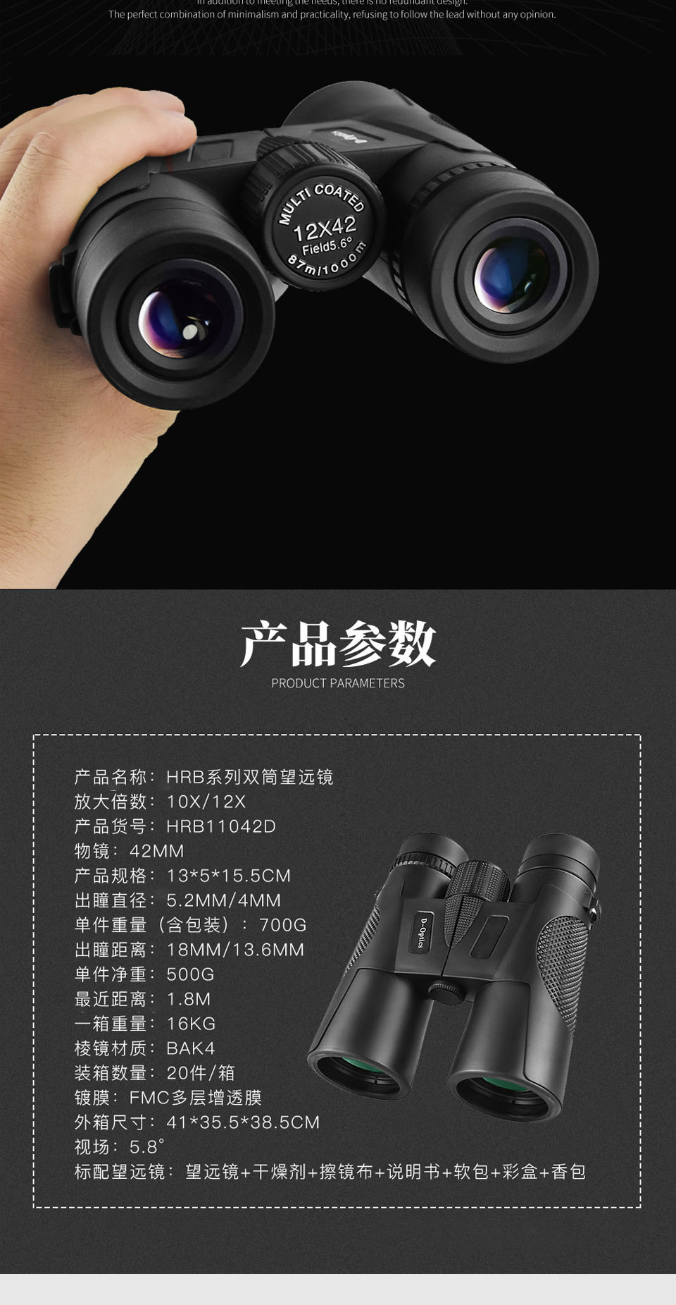 厂家批发12x42双筒望远镜成人户外夜视高清高倍外贸直供望远镜