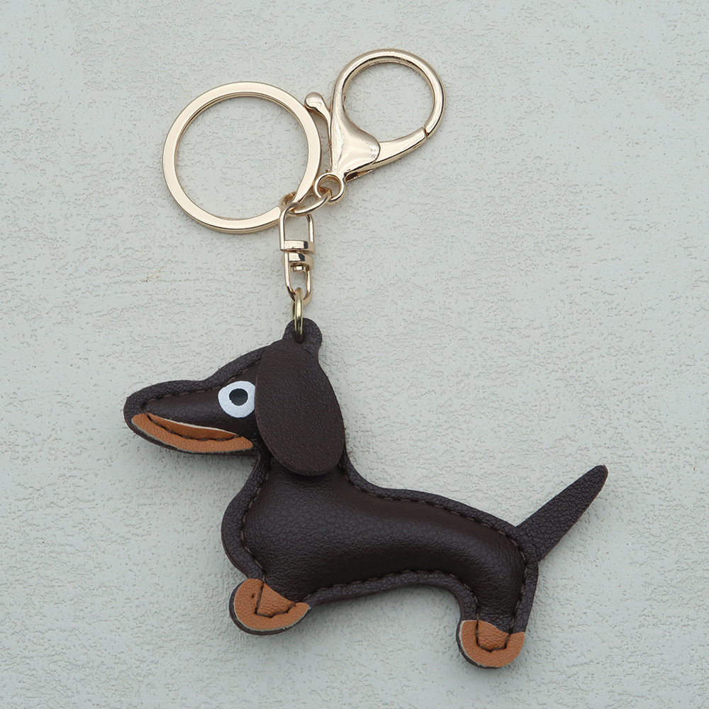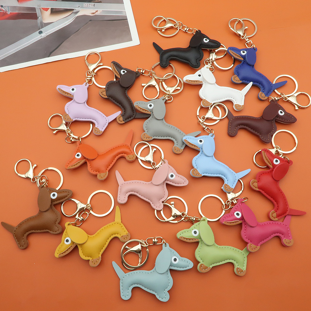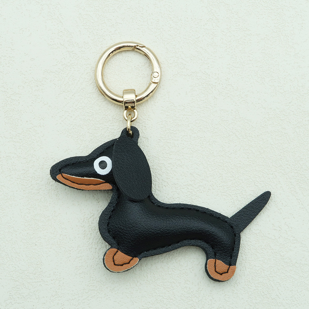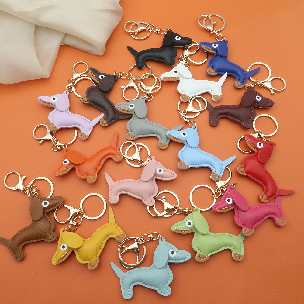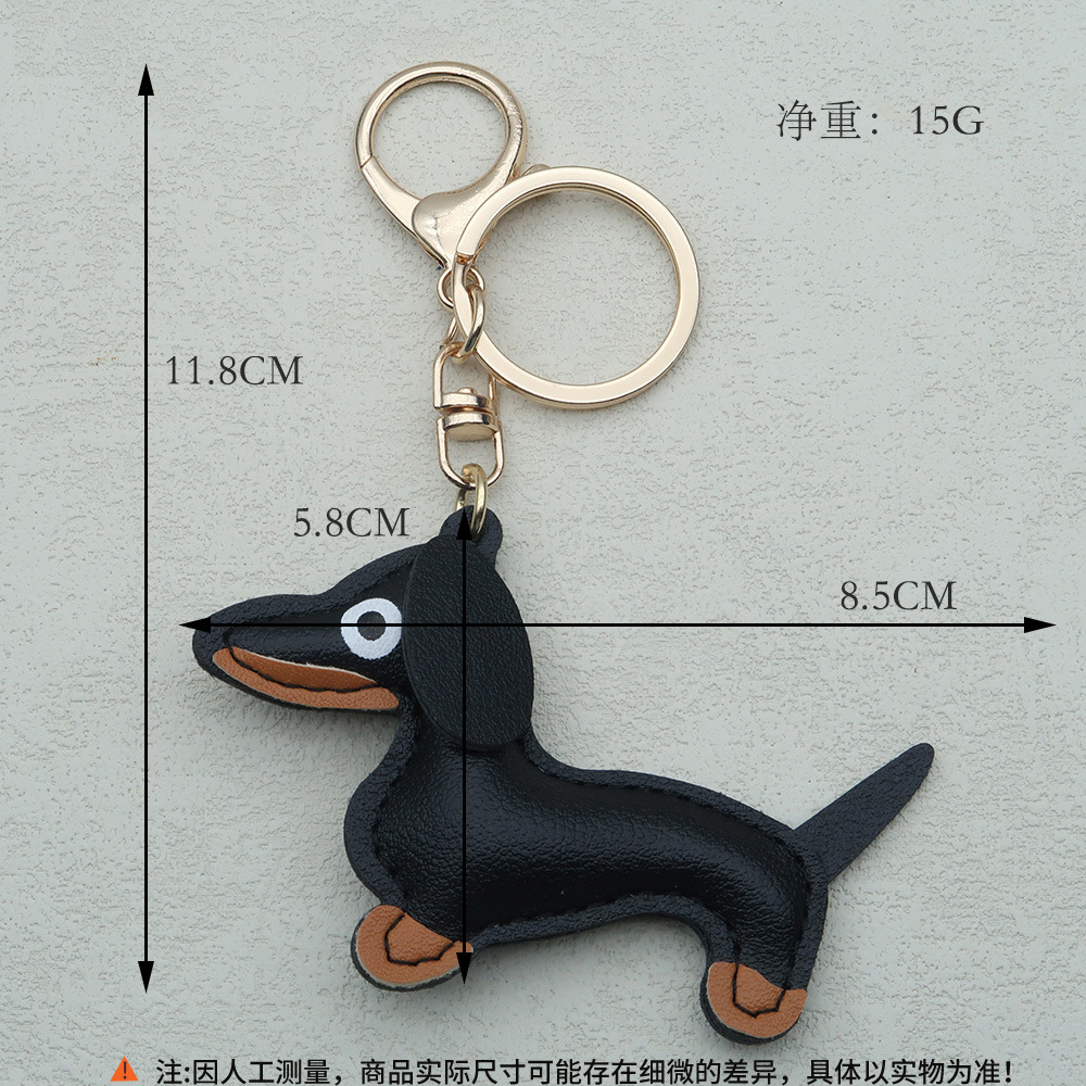 现货迷你腊肠狗钥匙扣挂件女生包包皮革小狗汽车钥匙链萌宠萌趣