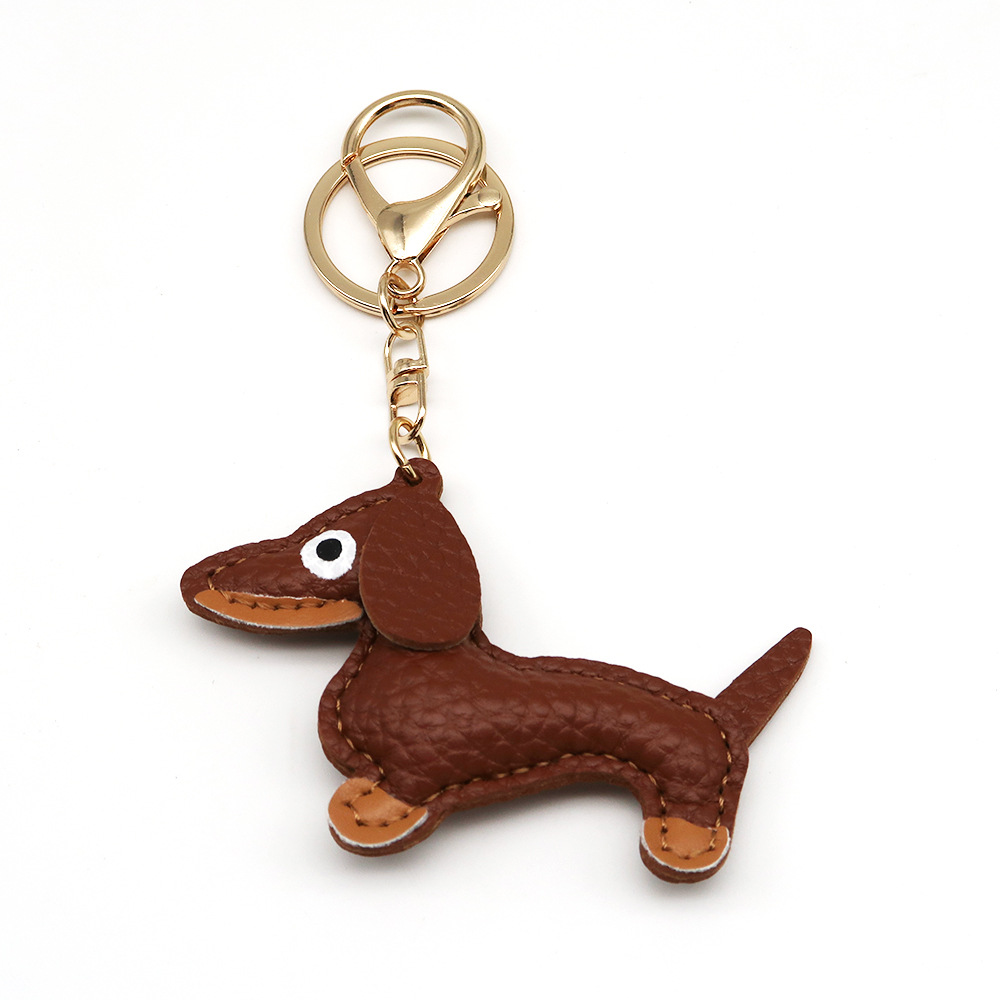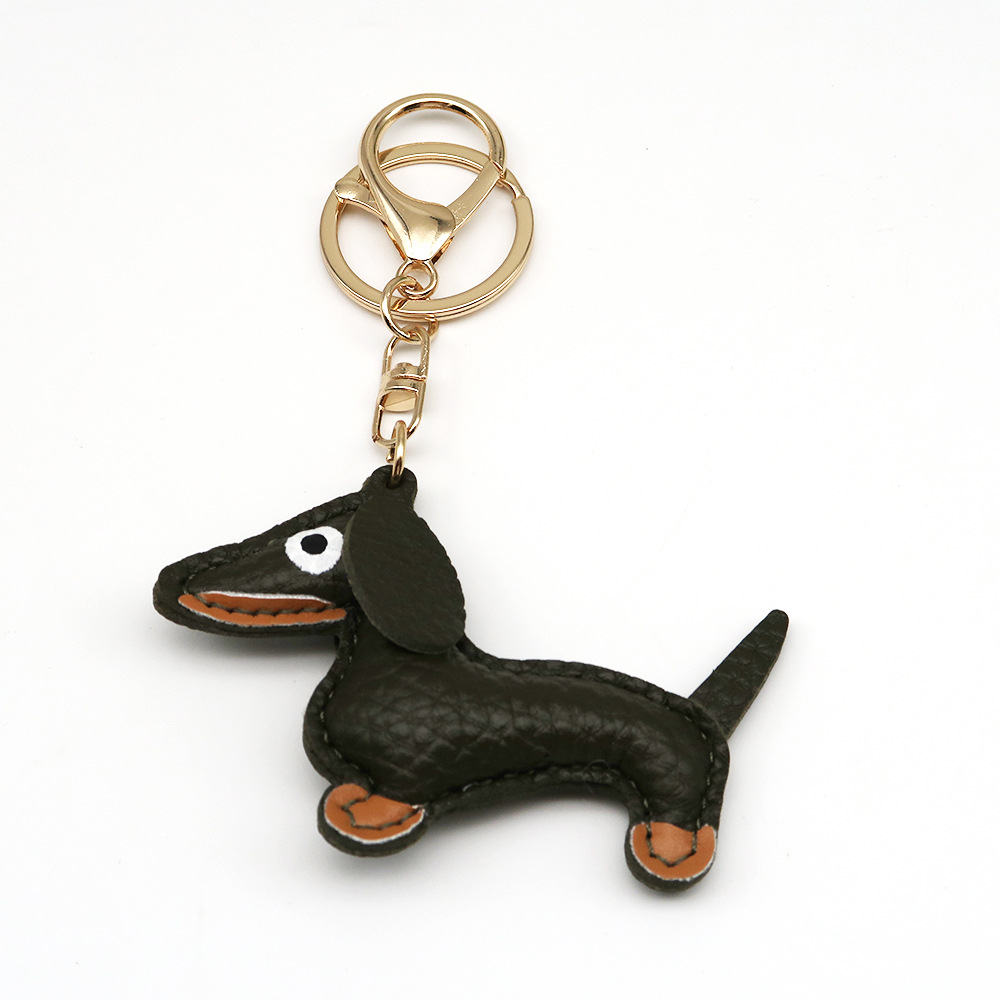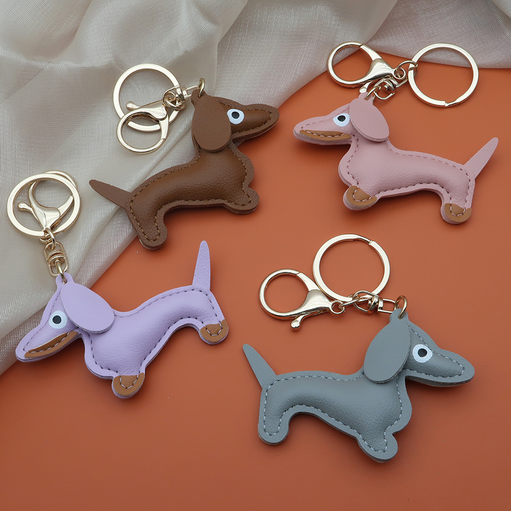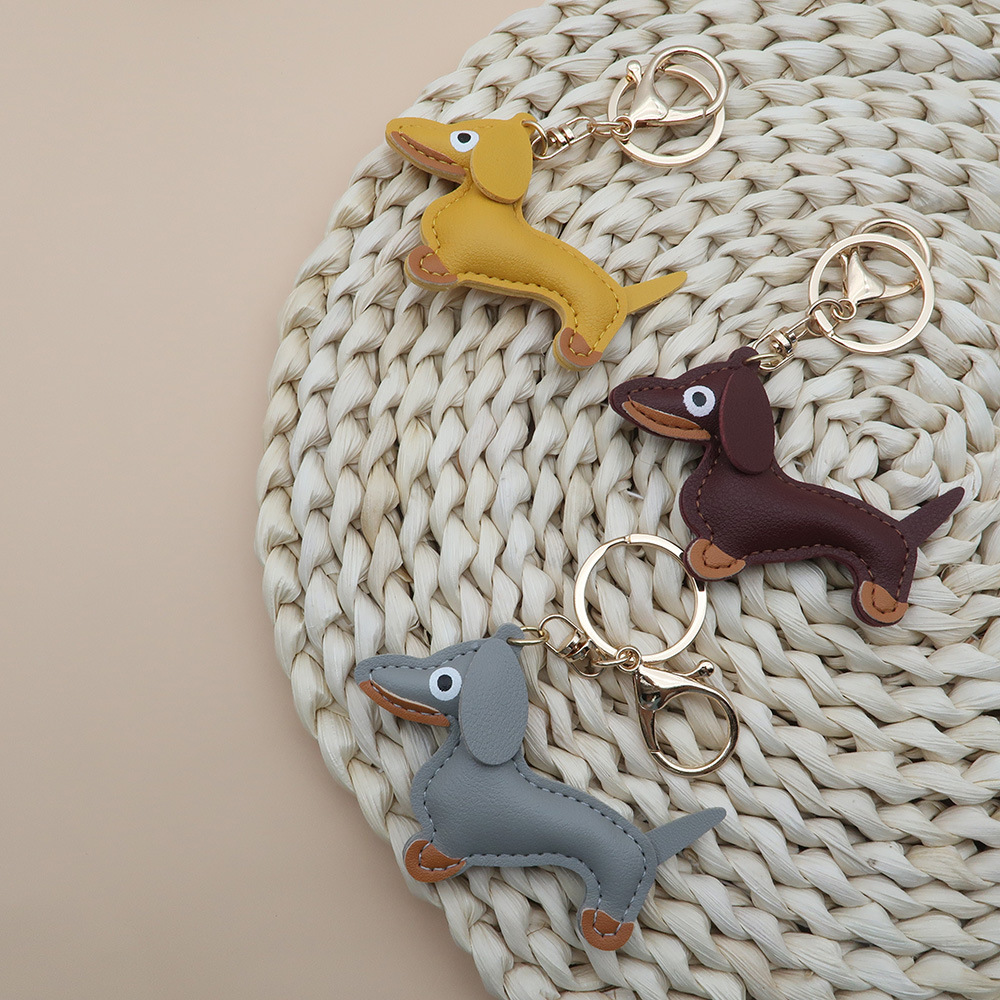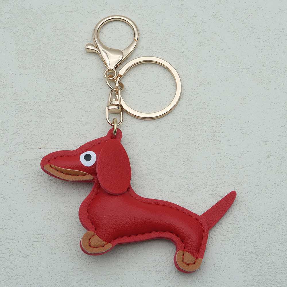 现货迷你腊肠狗钥匙扣挂件女生包包皮革小狗汽车钥匙链萌宠萌趣
