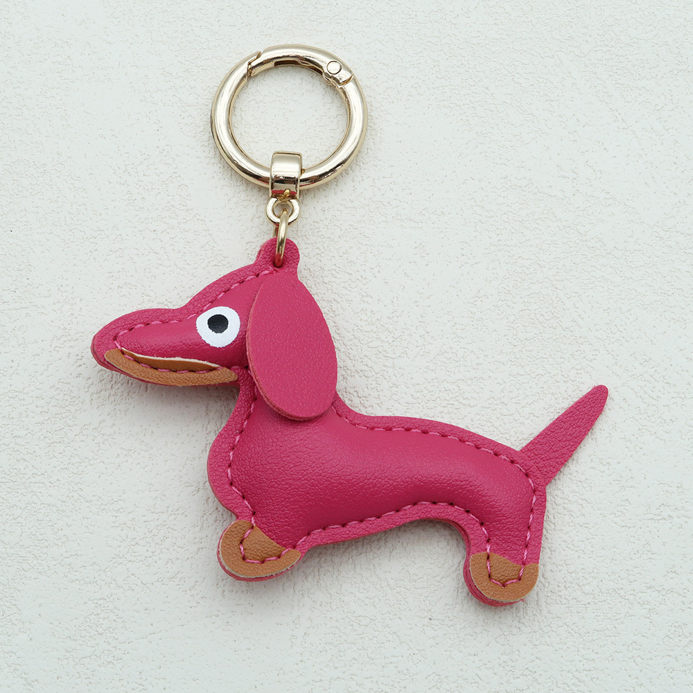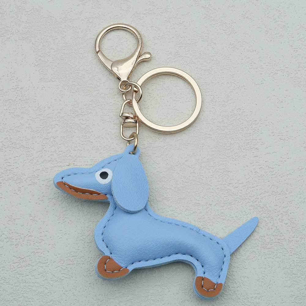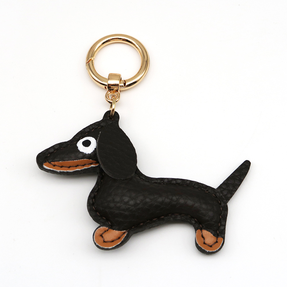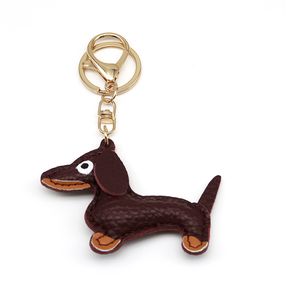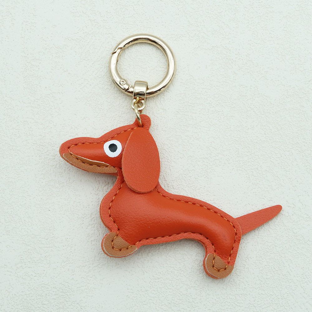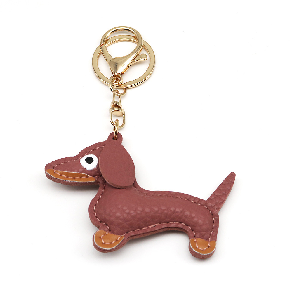 现货迷你腊肠狗钥匙扣挂件女生包包皮革小狗汽车钥匙链萌宠萌趣