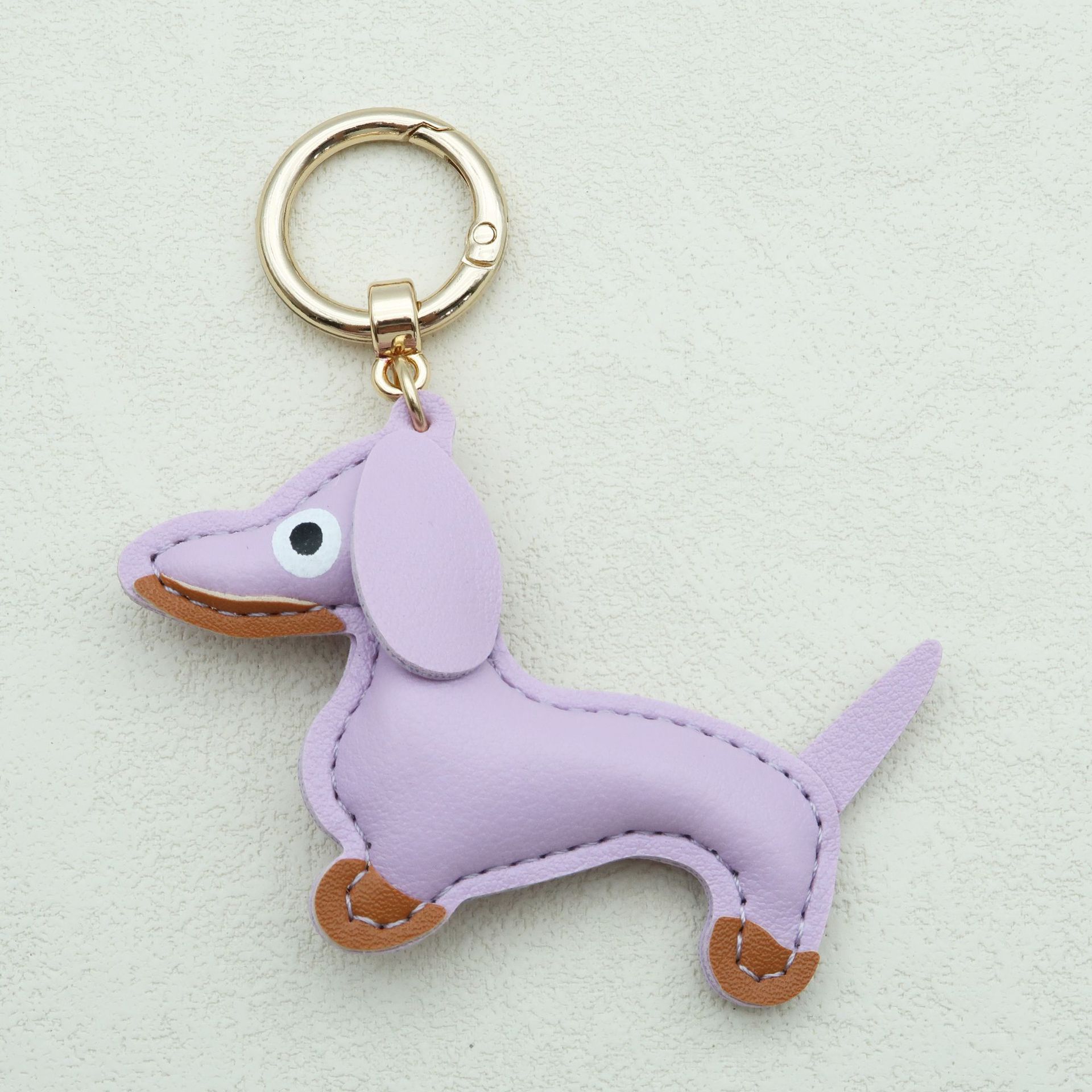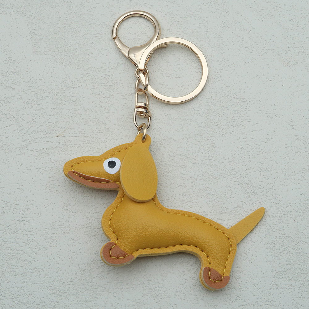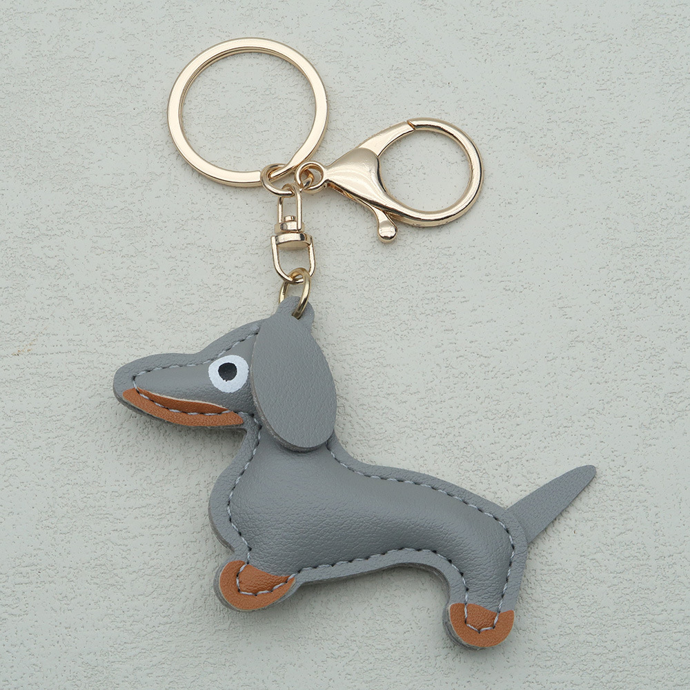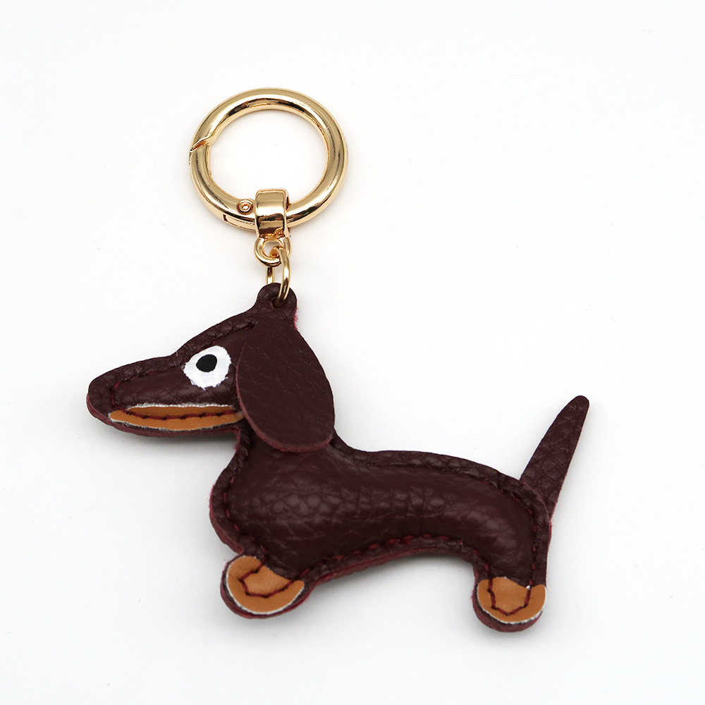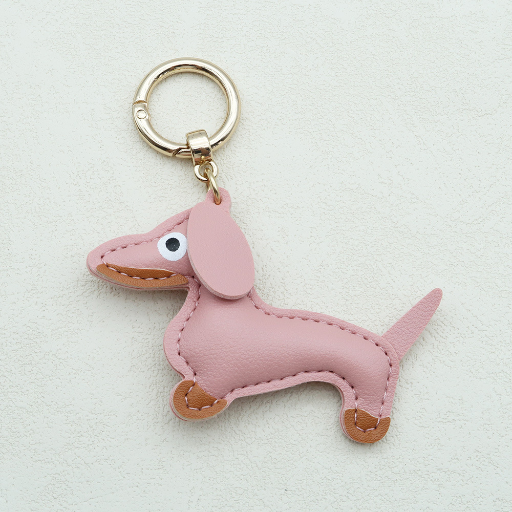 现货迷你腊肠狗钥匙扣挂件女生包包皮革小狗汽车钥匙链萌宠萌趣