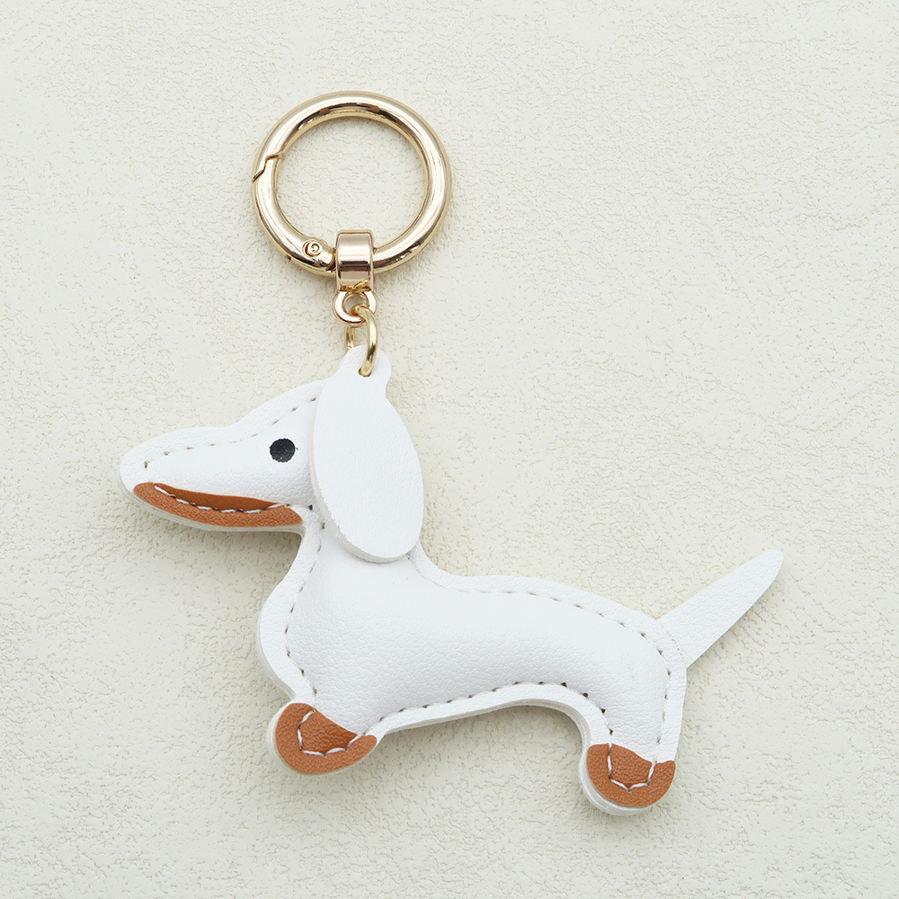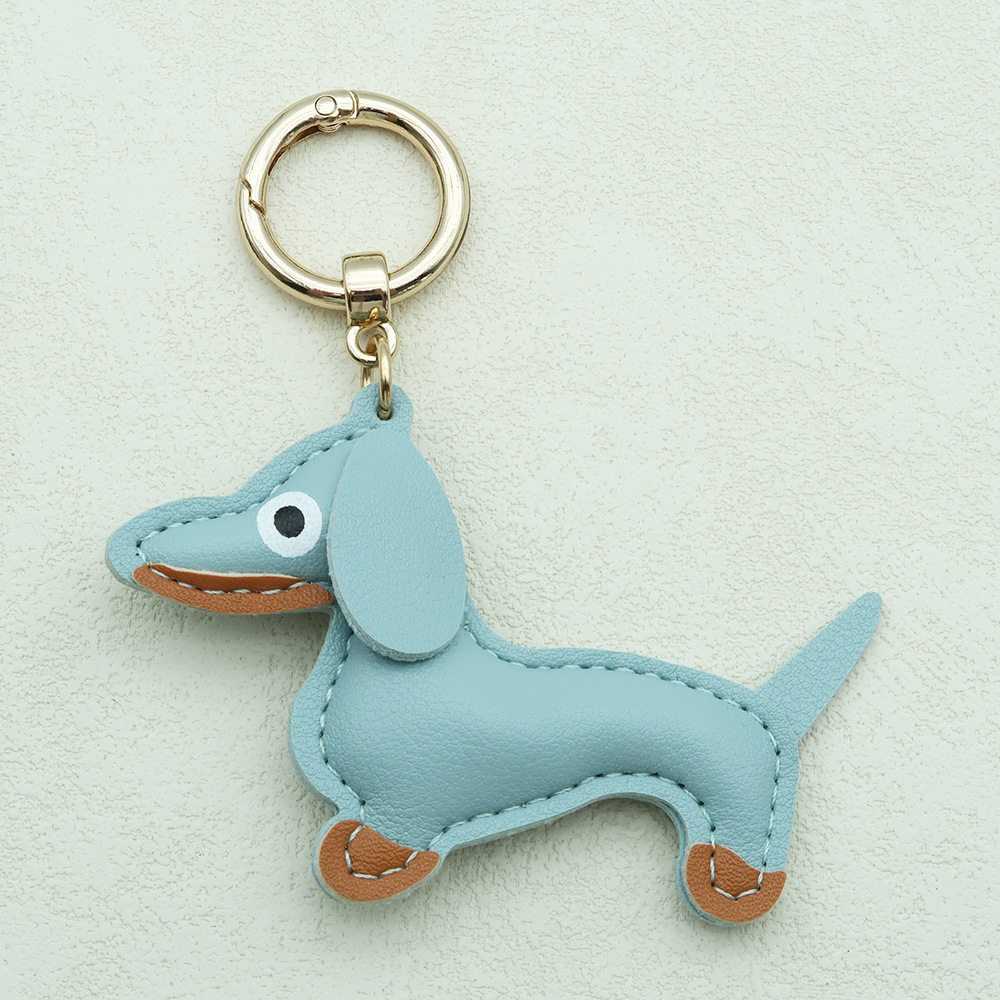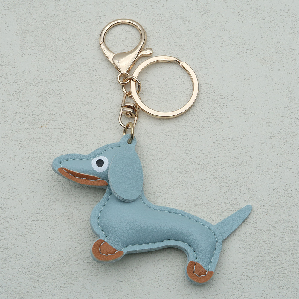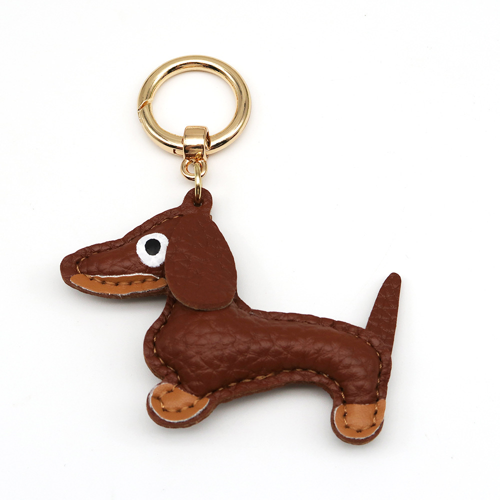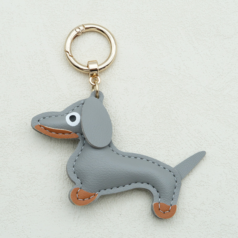 现货迷你腊肠狗钥匙扣挂件女生包包皮革小狗汽车钥匙链萌宠萌趣