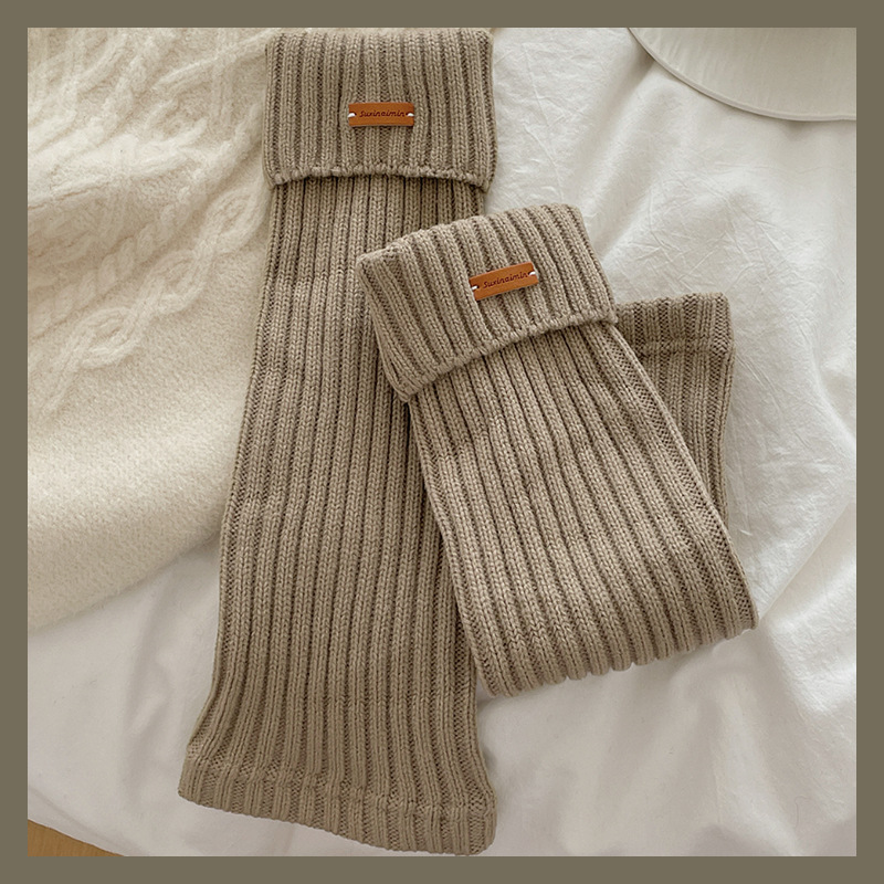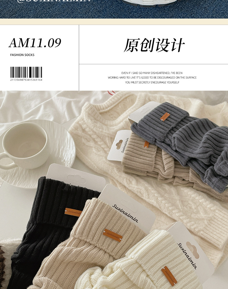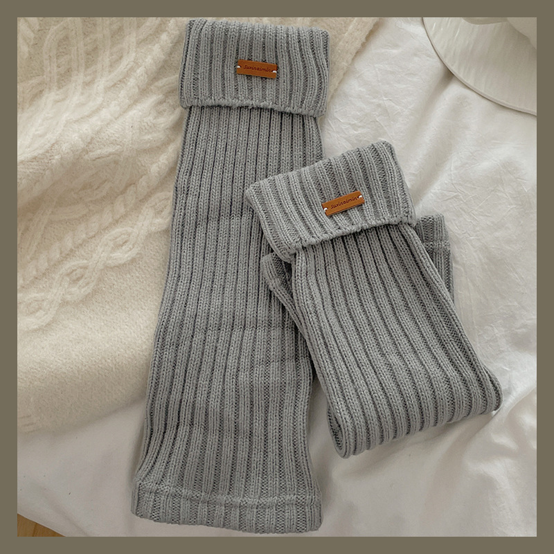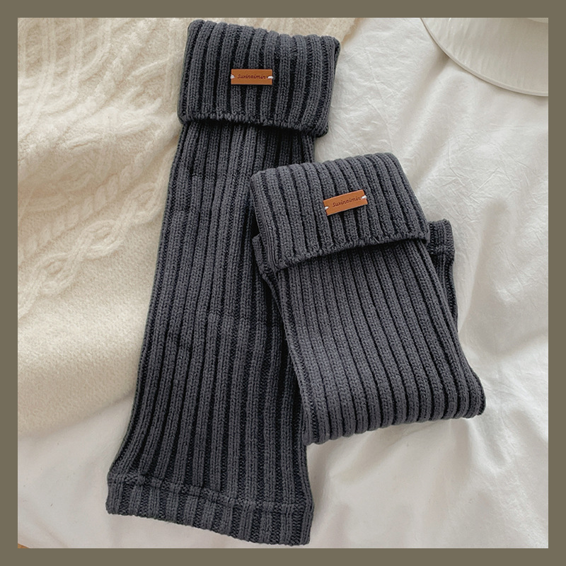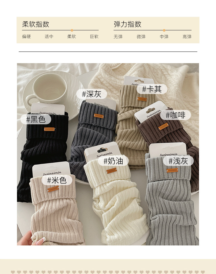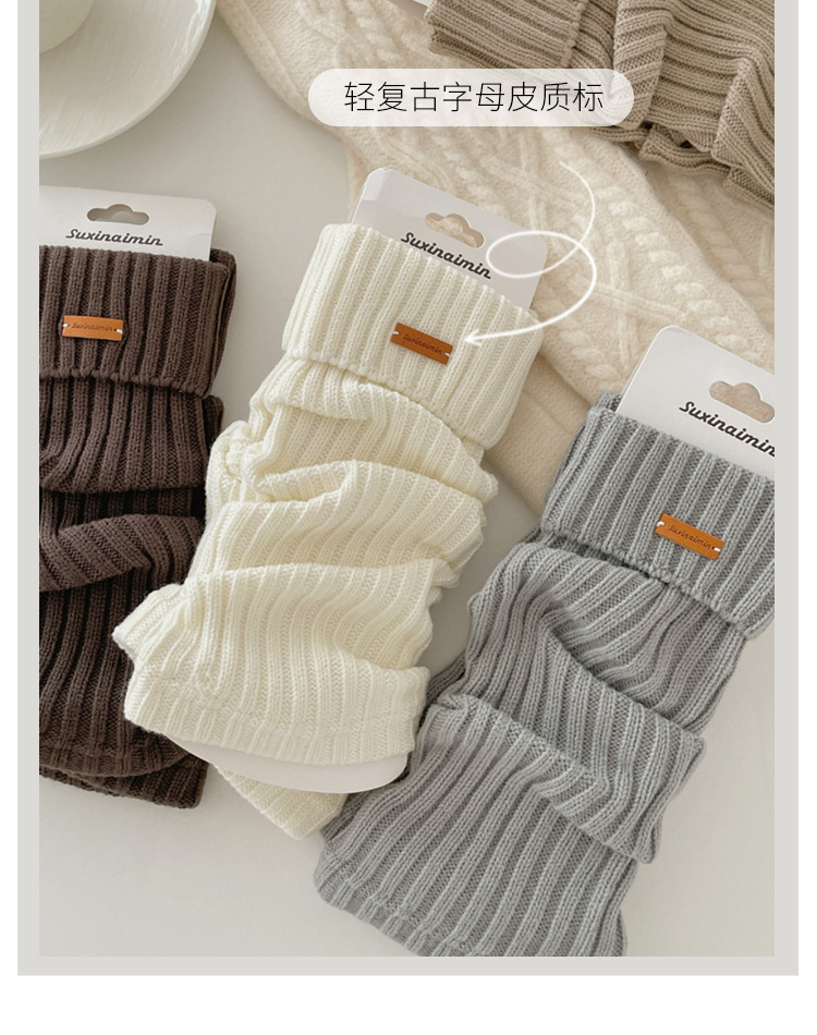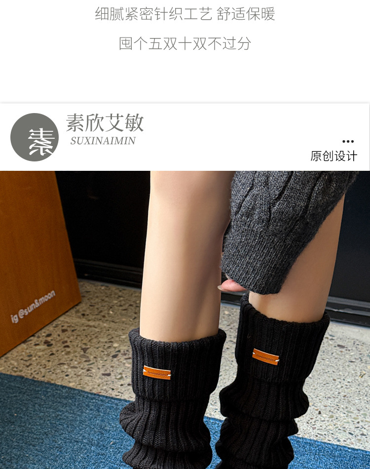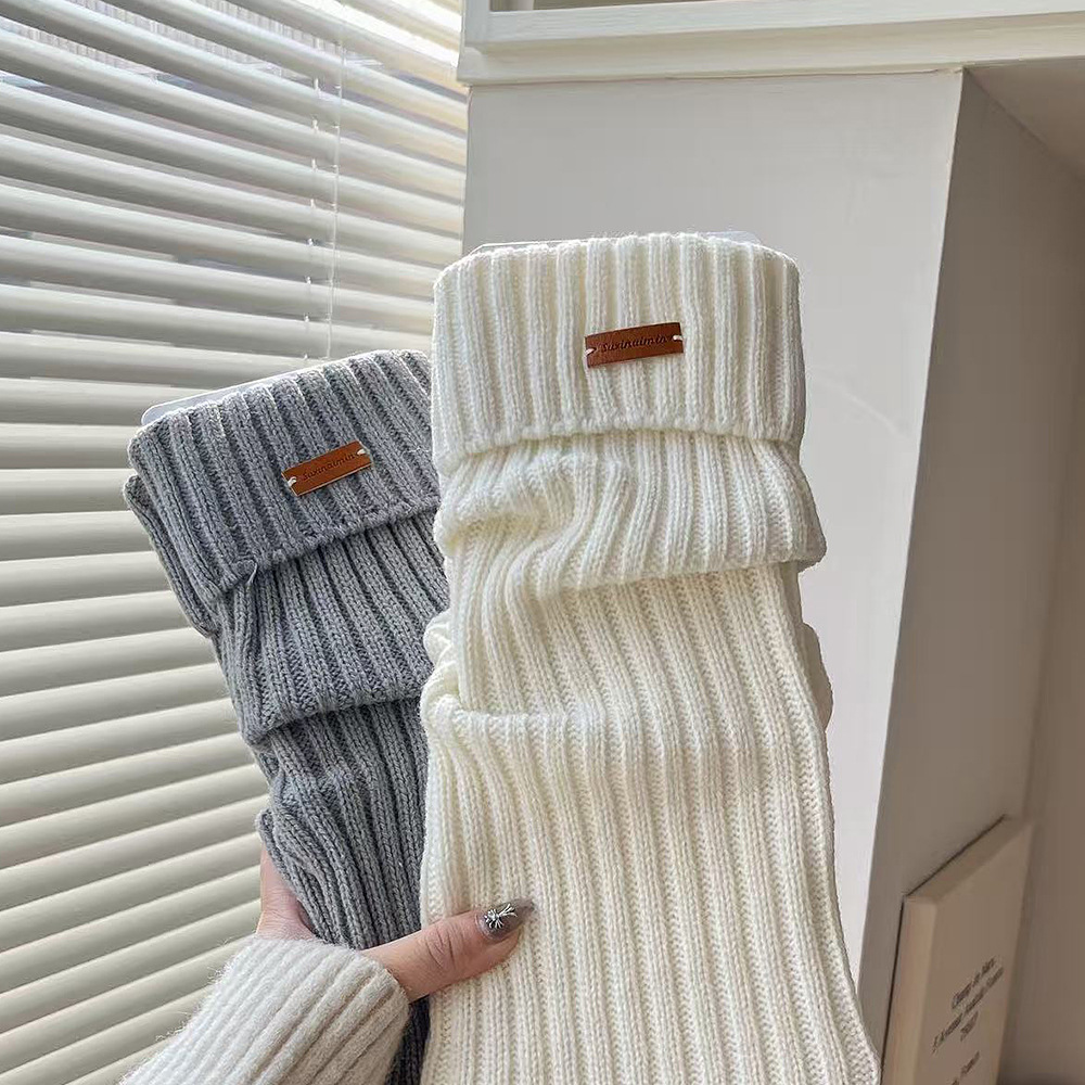 suxinaimin灰色堆堆袜宽松袜套秋冬季保暖复古皮标毛线小腿袜套潮