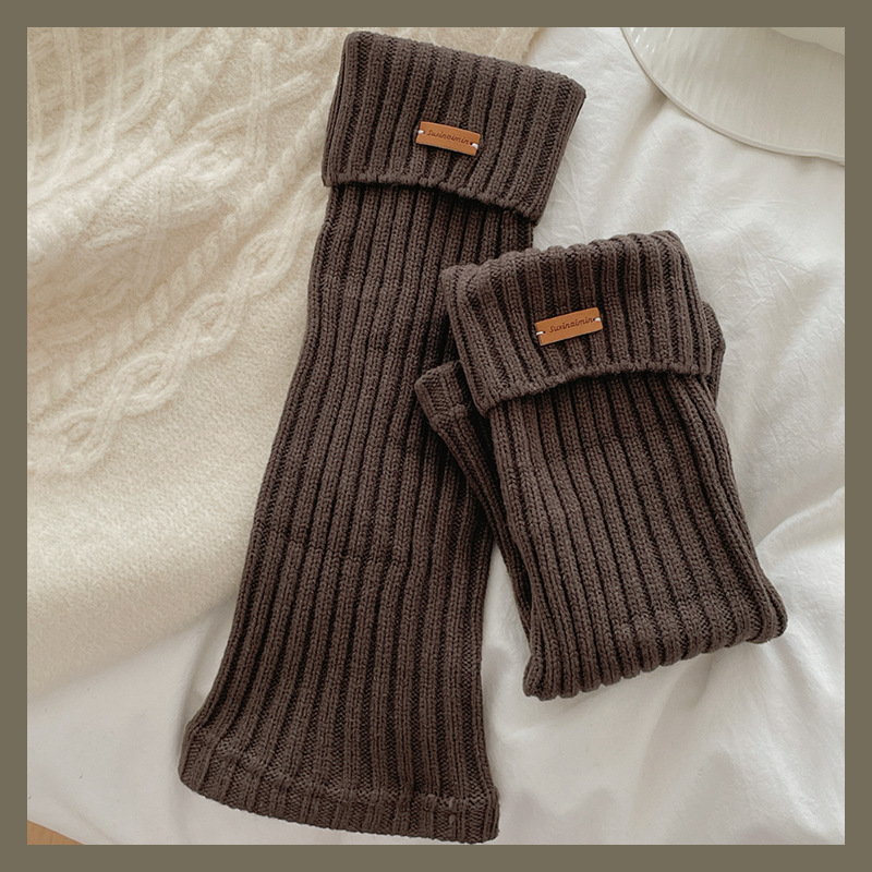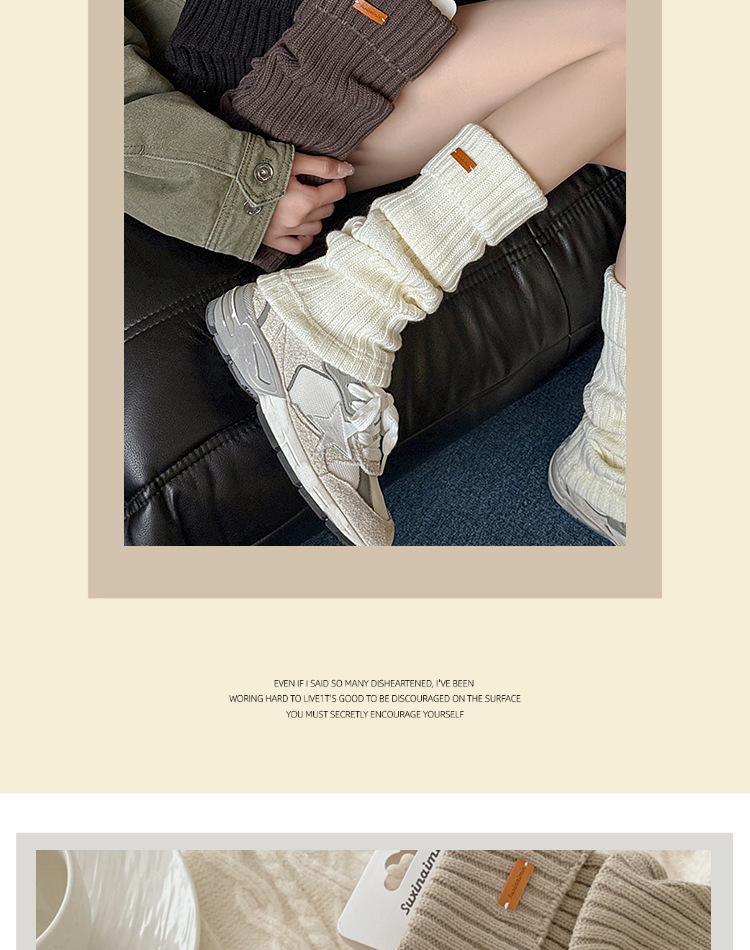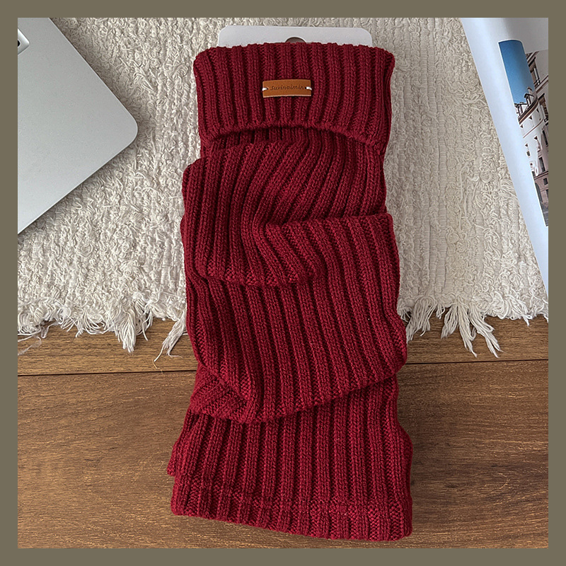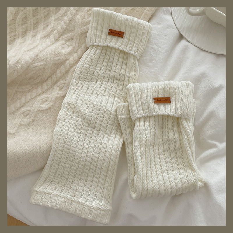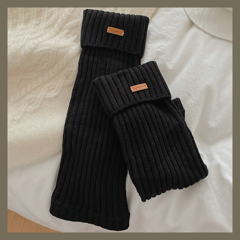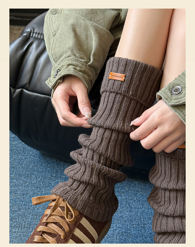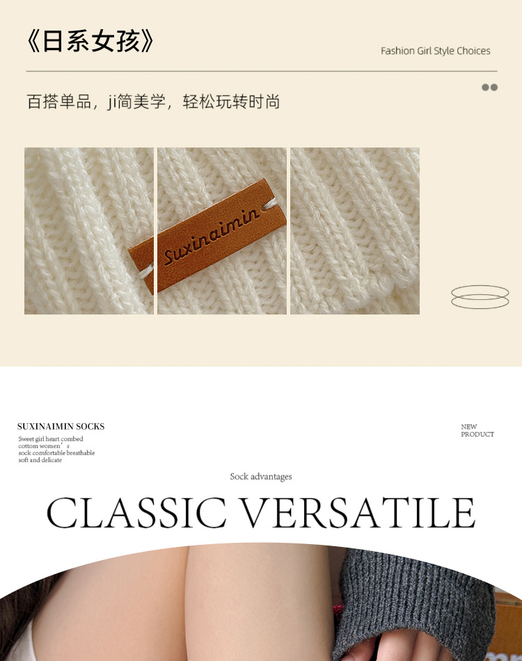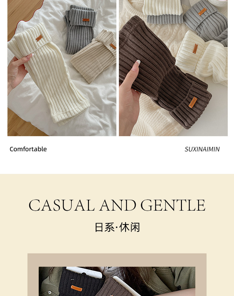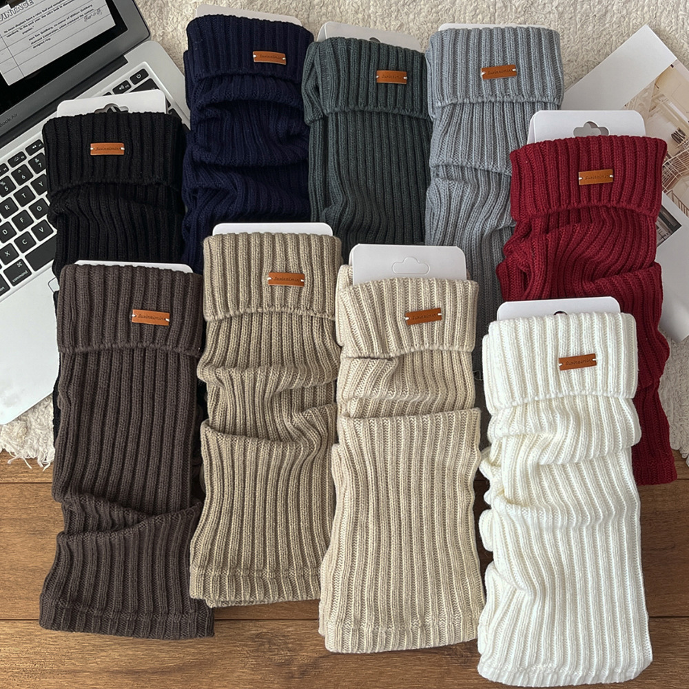 suxinaimin灰色堆堆袜宽松袜套秋冬季保暖复古皮标毛线小腿袜套潮
