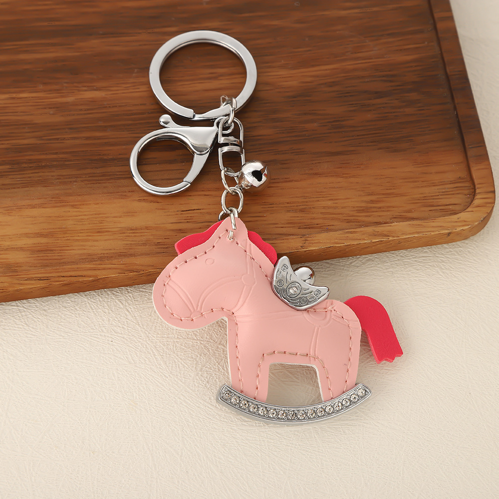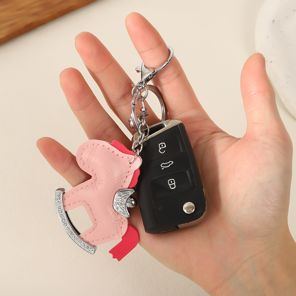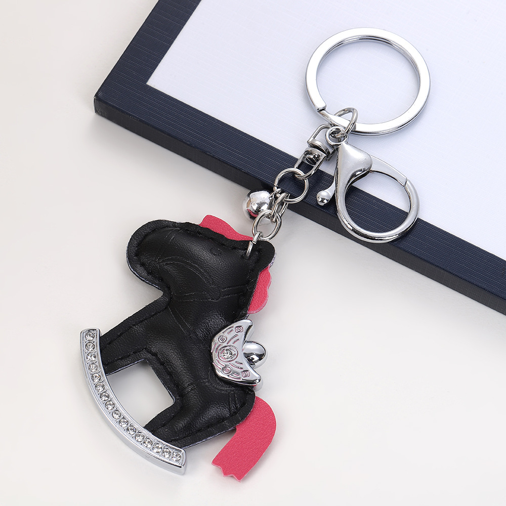 马上有钱镶钻钥匙扣卡通pu小马包包挂件创意ins摇摇马汽车钥匙链