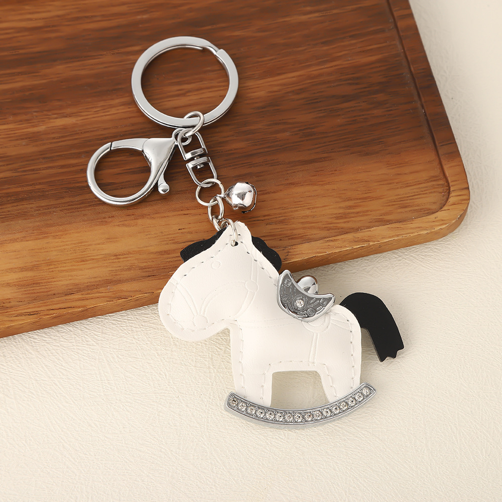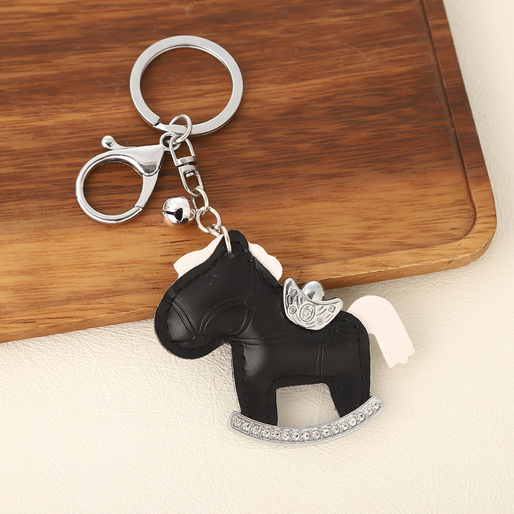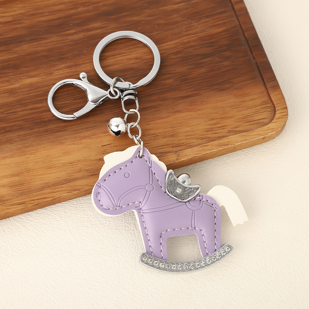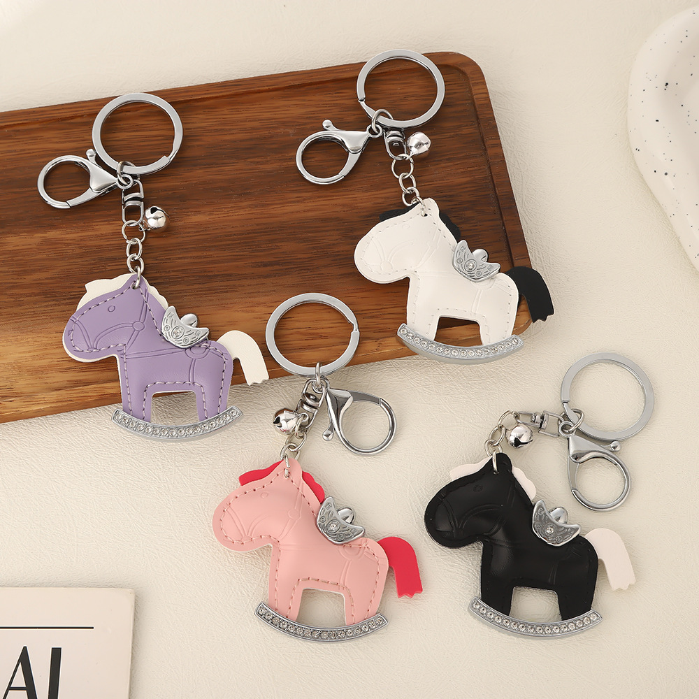 马上有钱镶钻钥匙扣卡通pu小马包包挂件创意ins摇摇马汽车钥匙链