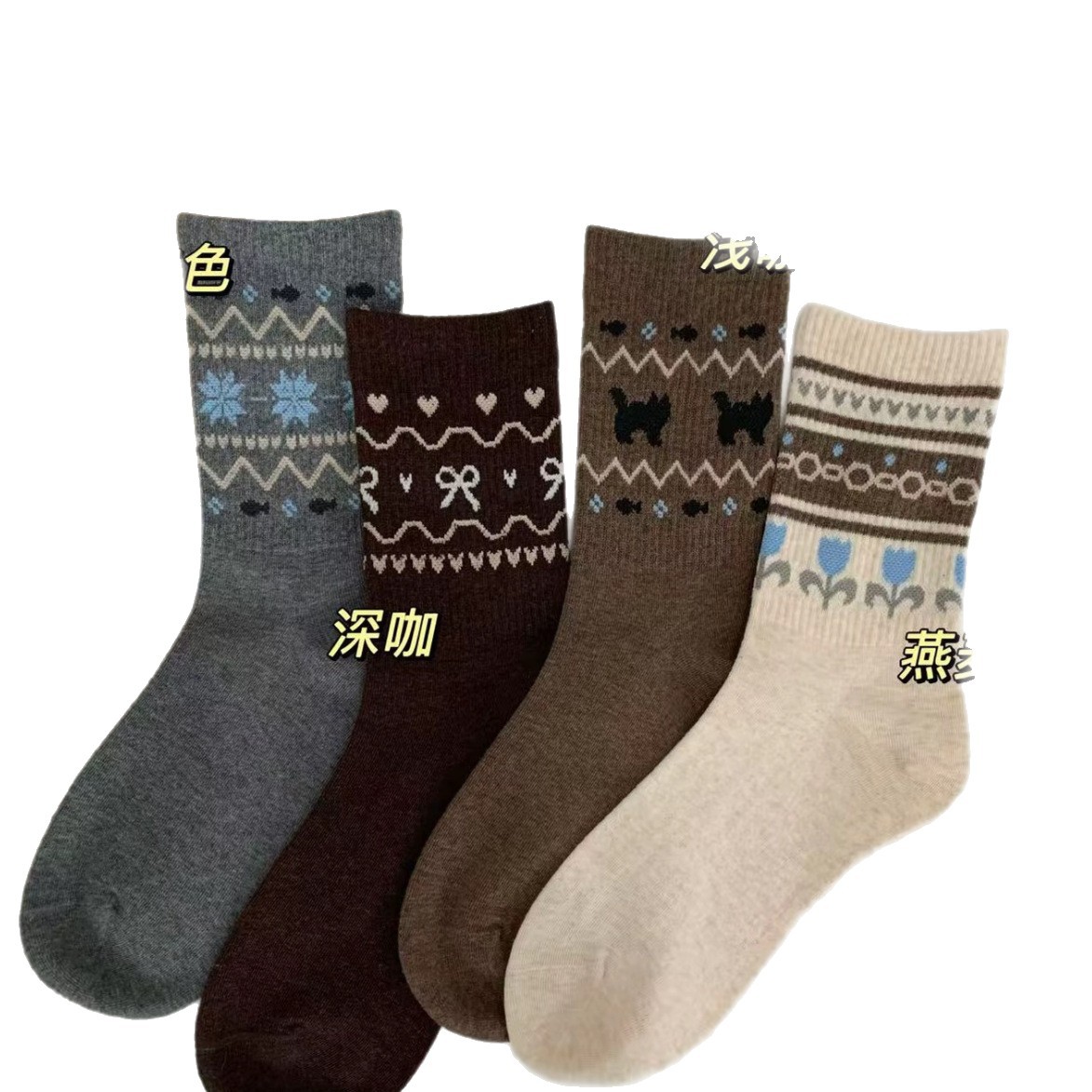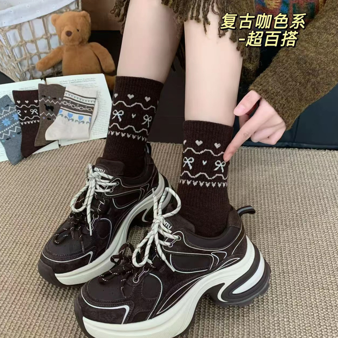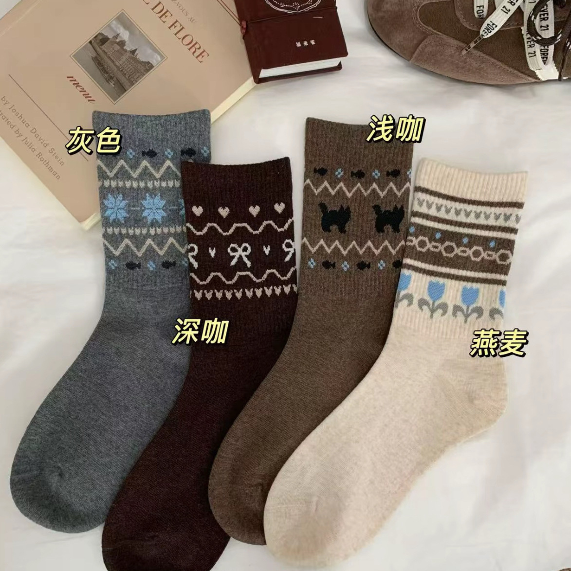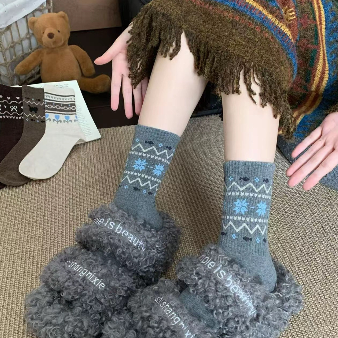 秋冬保暖加厚民族风费尔岛袜子女新款堆堆袜ins风百搭复古中筒袜