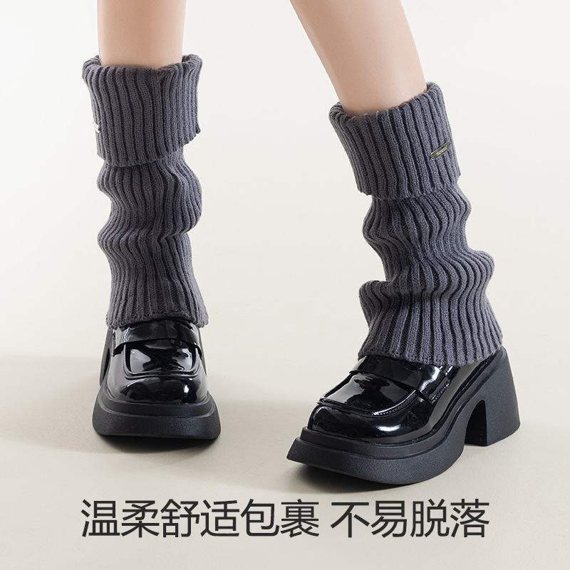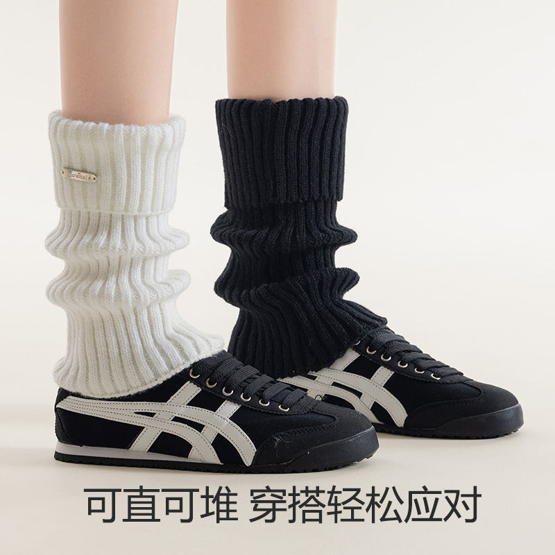 金属标袜套女秋冬款竖条显瘦堆堆袜复古Y2K辣妹潮流弹力中筒腿套