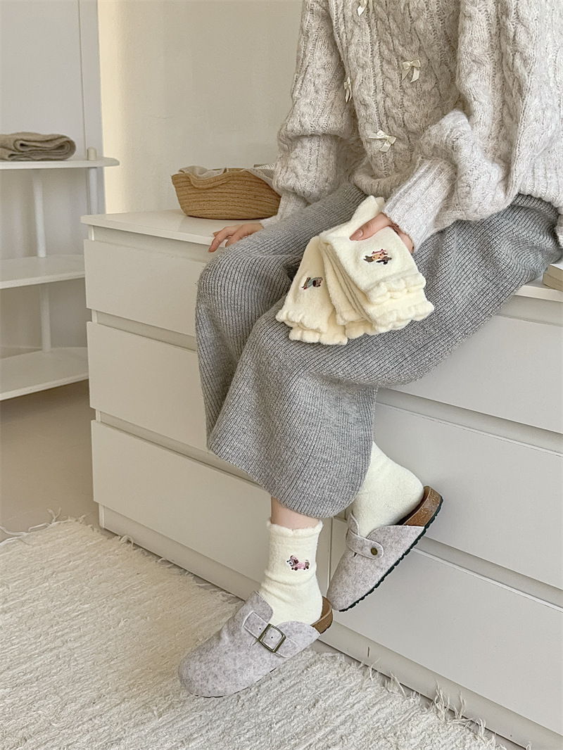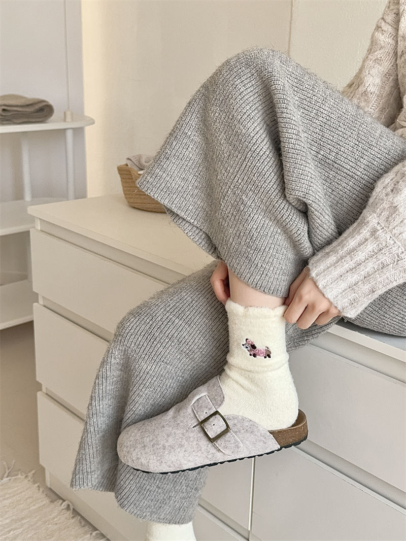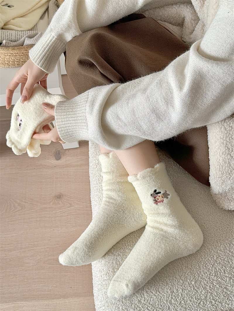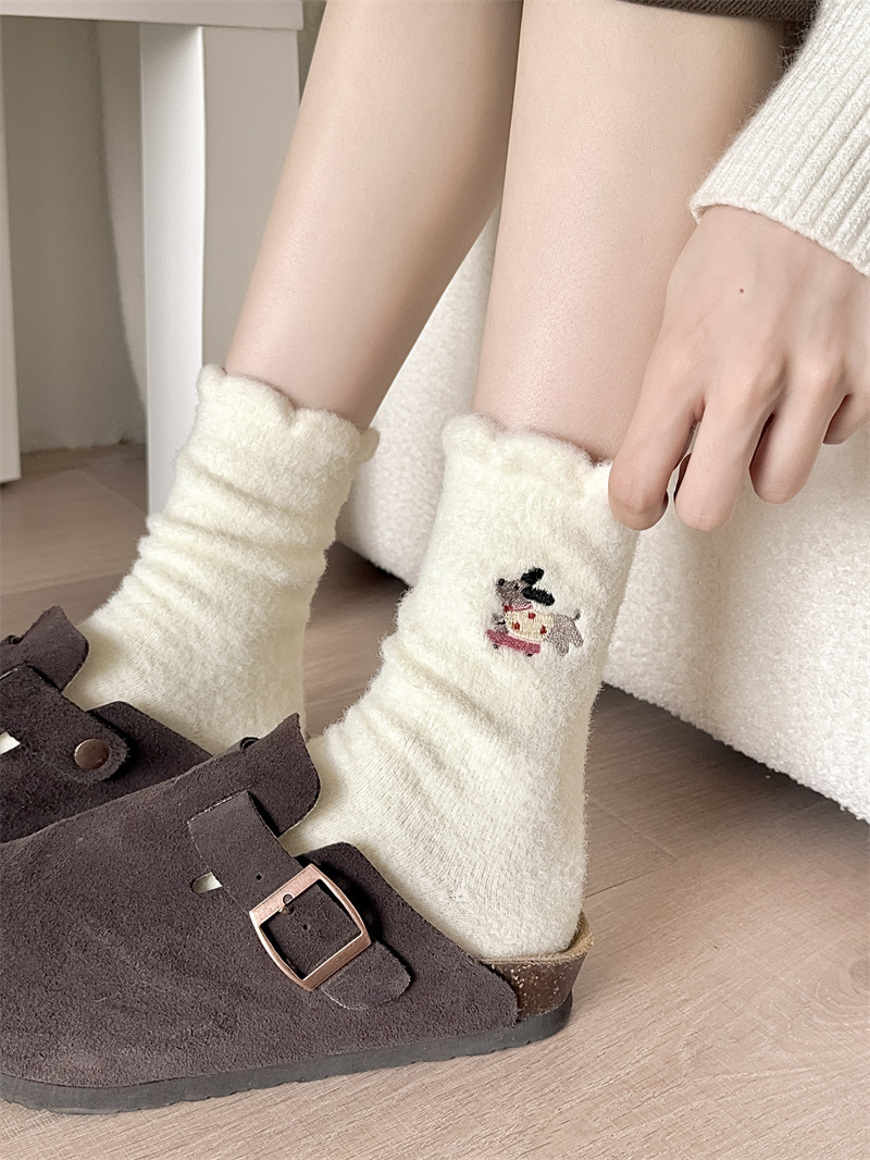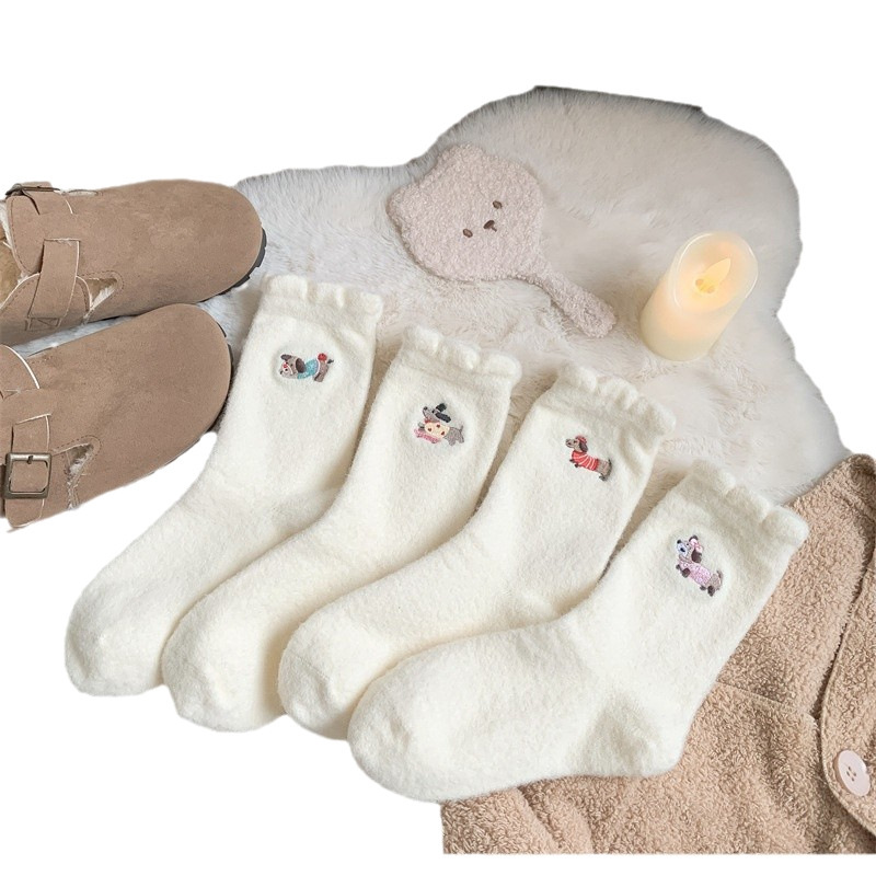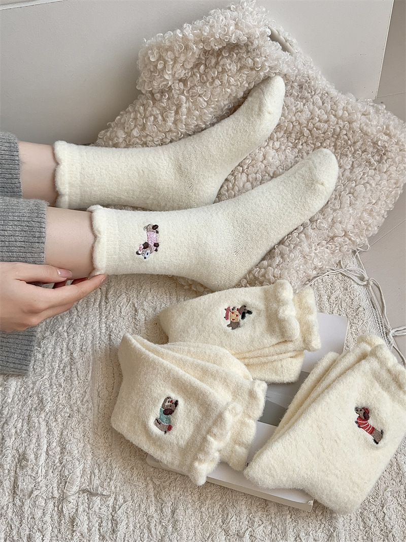可爱俏皮袜子女中筒袜秋冬加绒加厚保暖袜日系卡通毛绒腊肠狗长袜