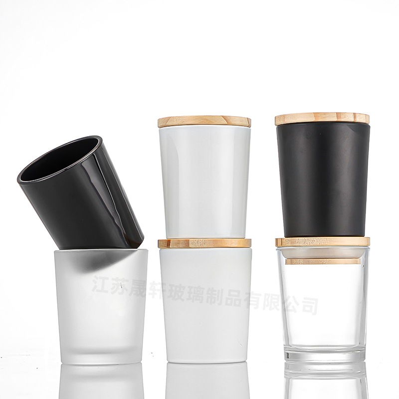 现货直供103磨砂蜡烛杯DIY香薰喷色烛台彩色玻璃容器黑色玻璃蜡杯