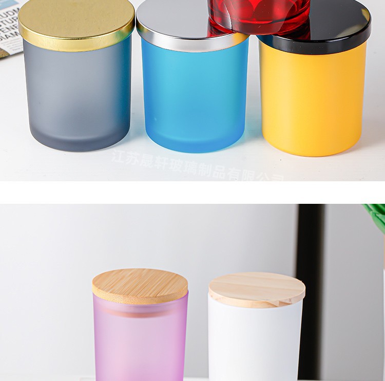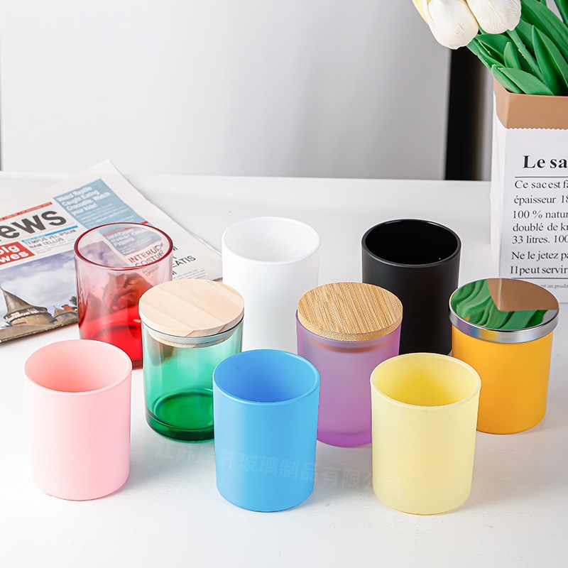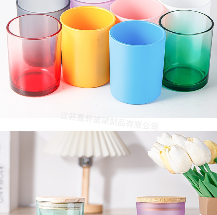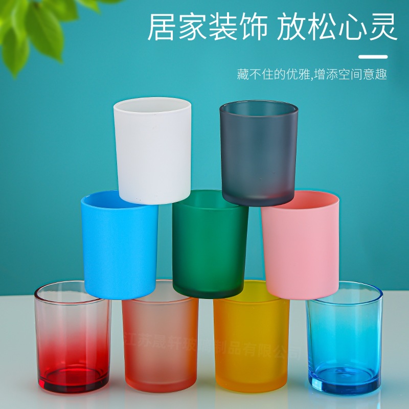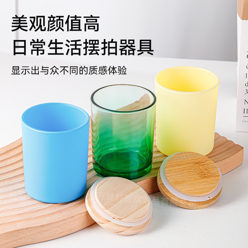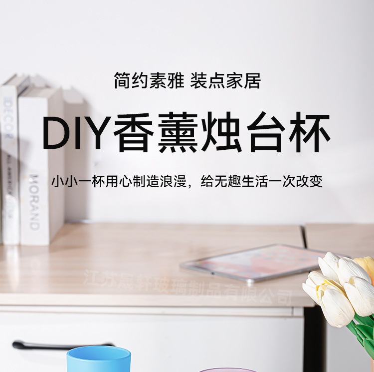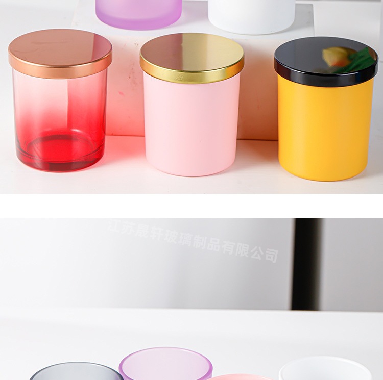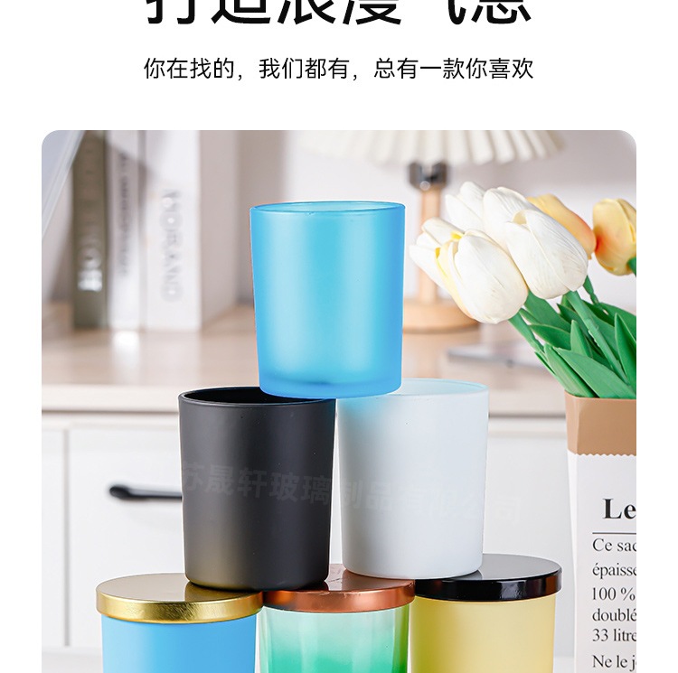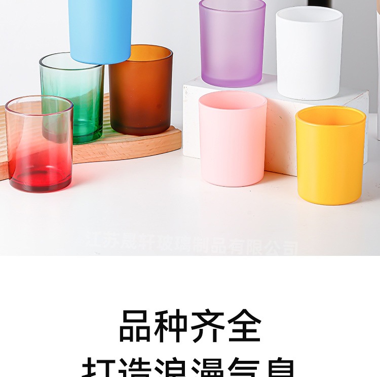 DIY香薰彩色蜡烛杯简约家用玻璃烛台酒店香氛蜡烛空杯带盖印logo