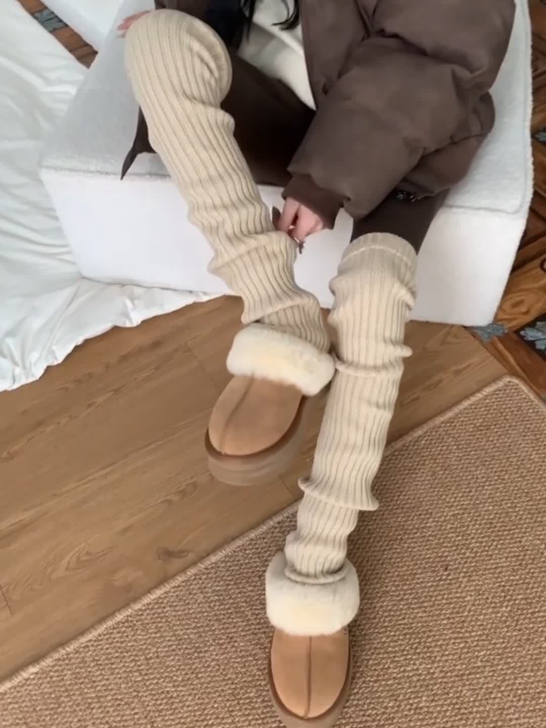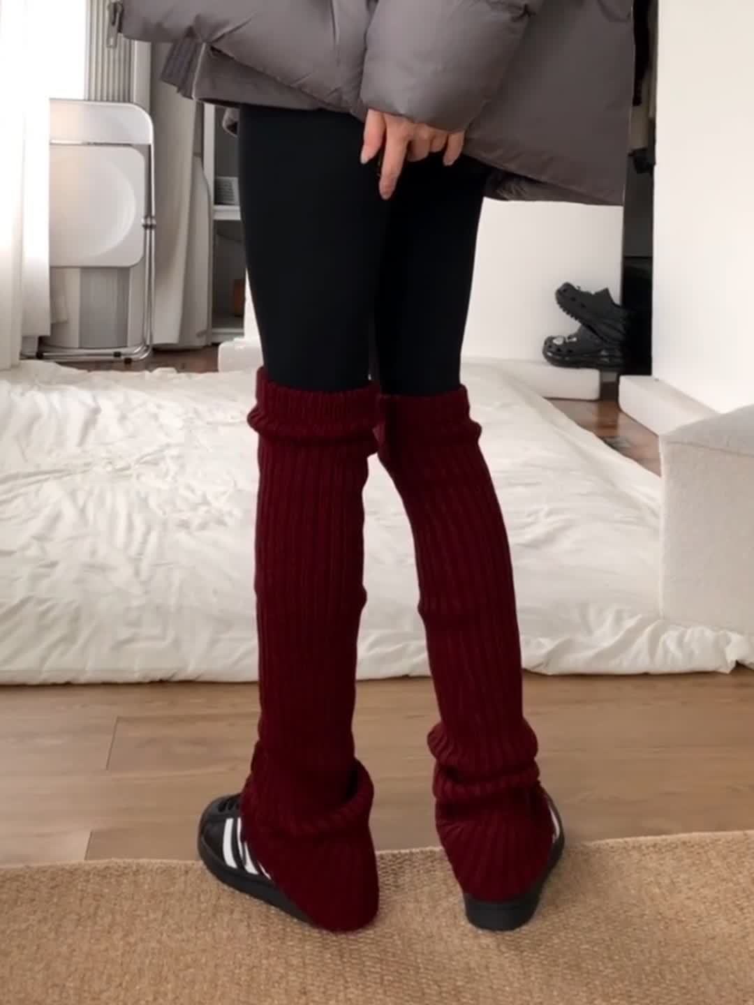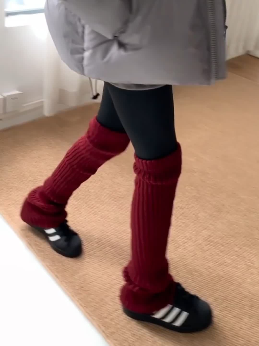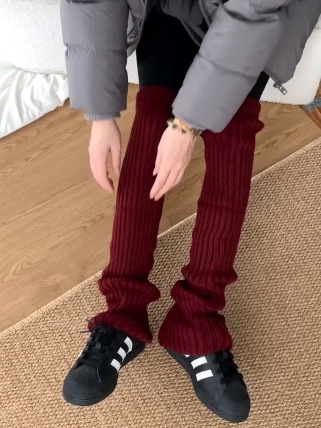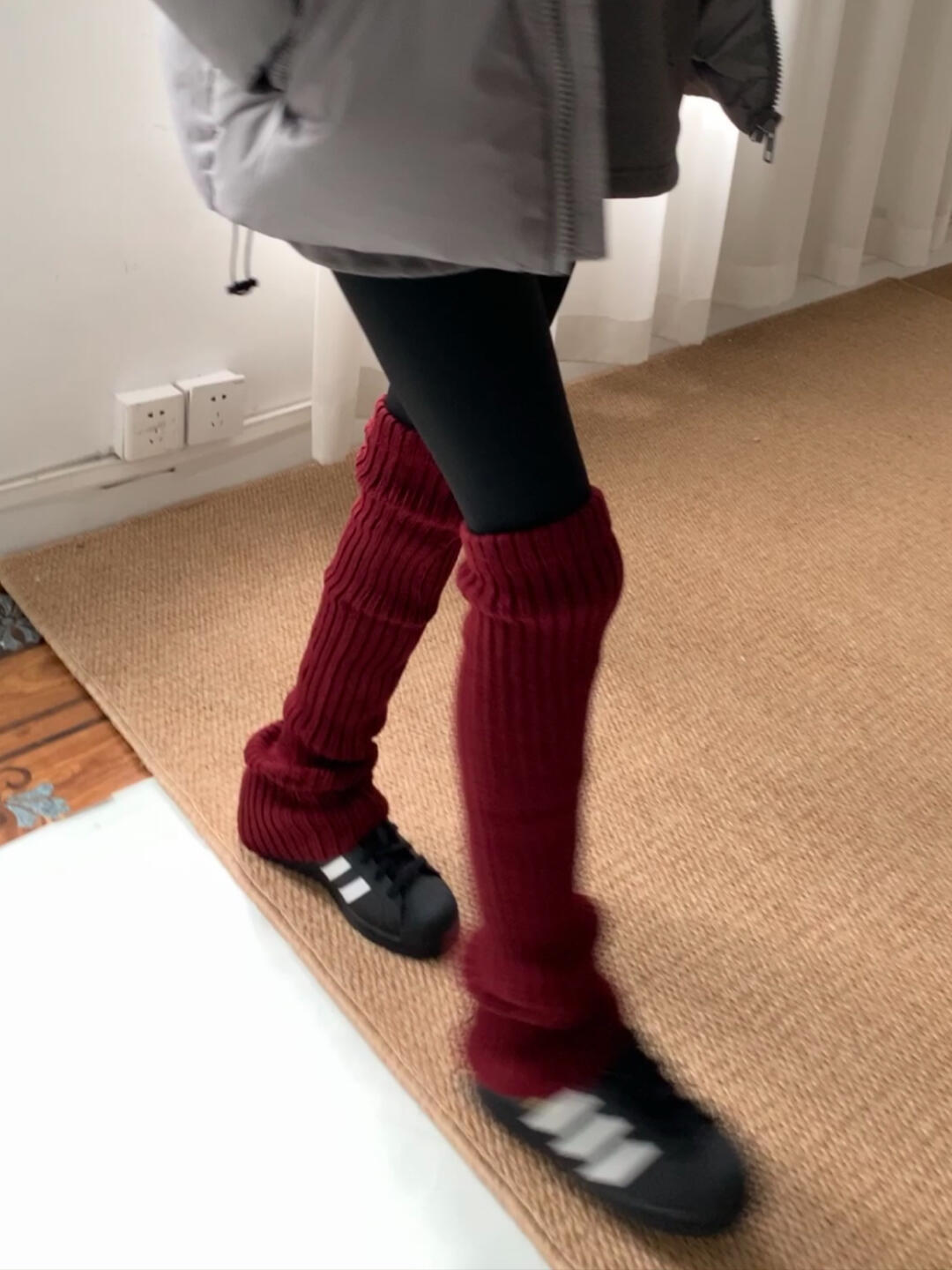 辣妹复古红色腿套y2k长款加厚小腿堆堆袜秋冬针织袜套芭蕾风袜子