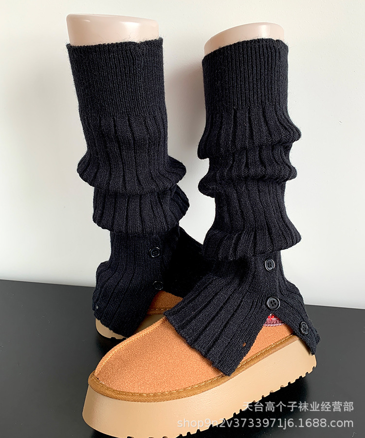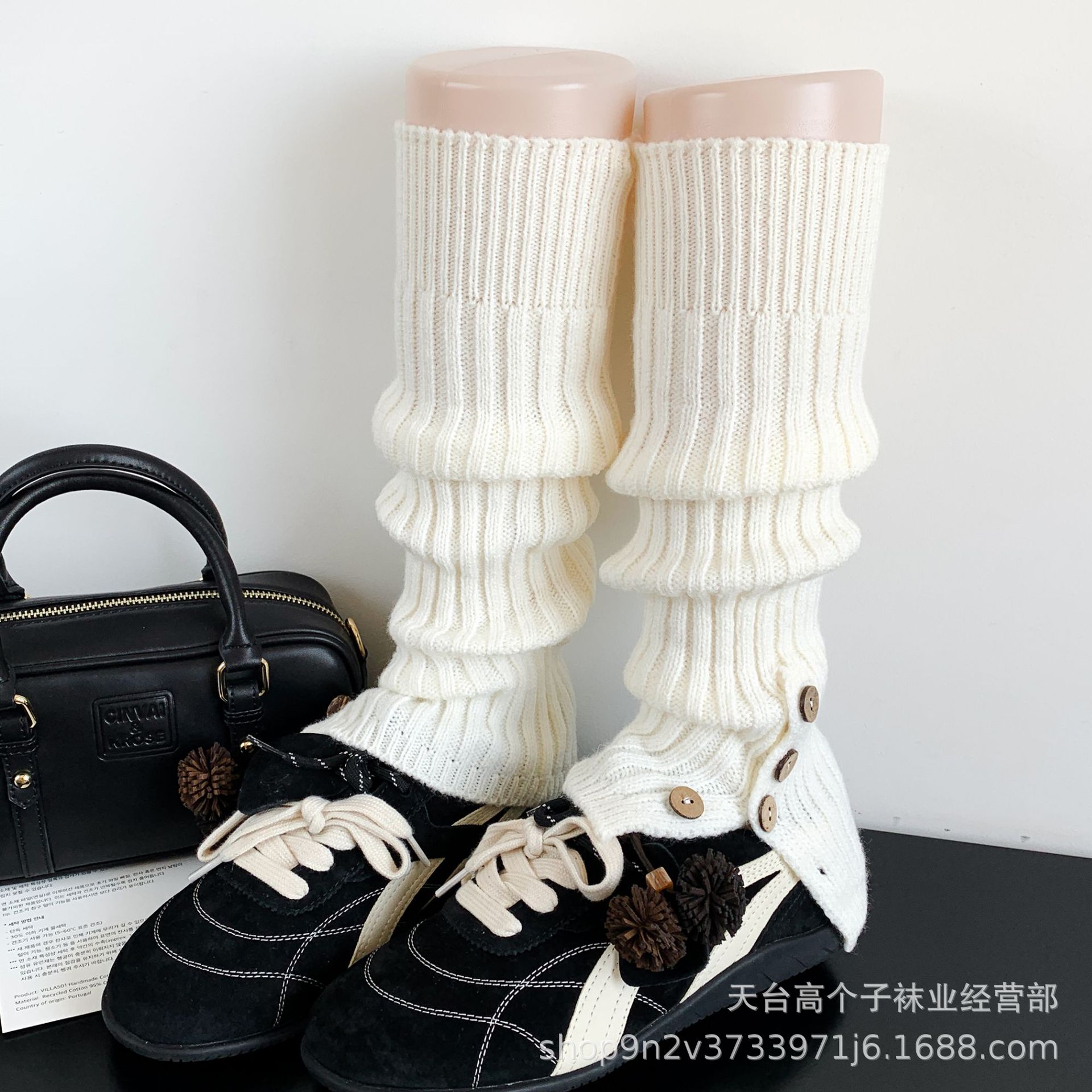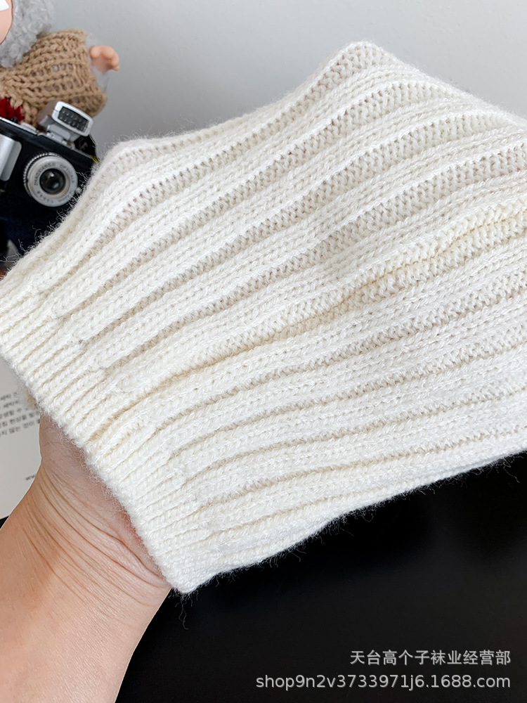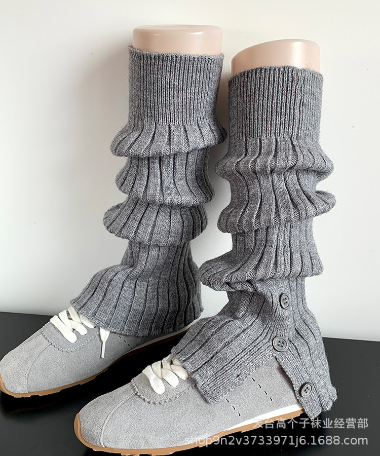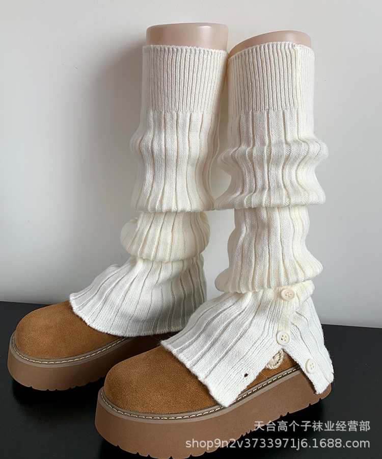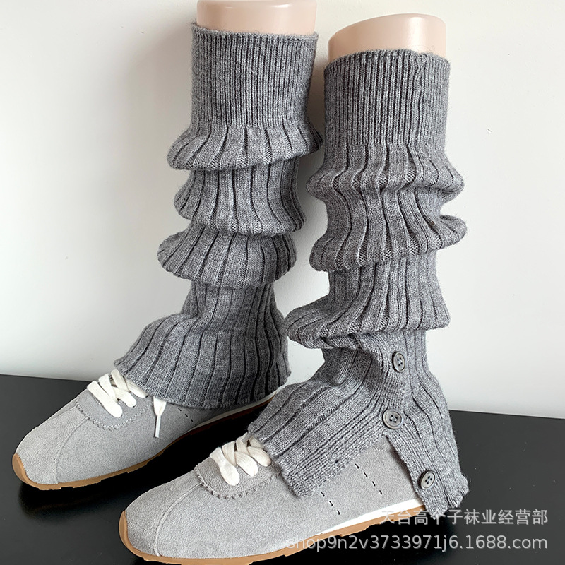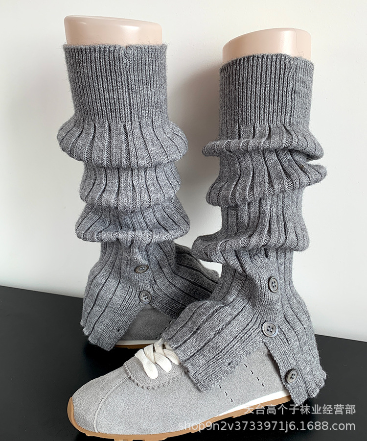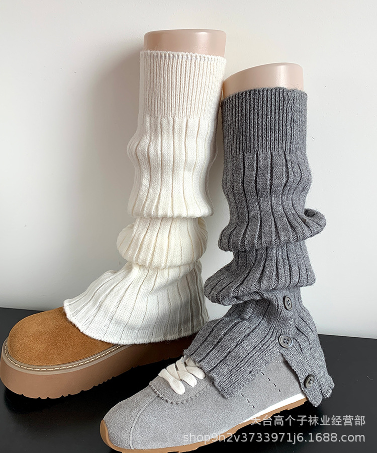 秋冬灰色堆堆袜套jk奶白色保暖腿套女中筒黑色针织竖条开叉小腿袜