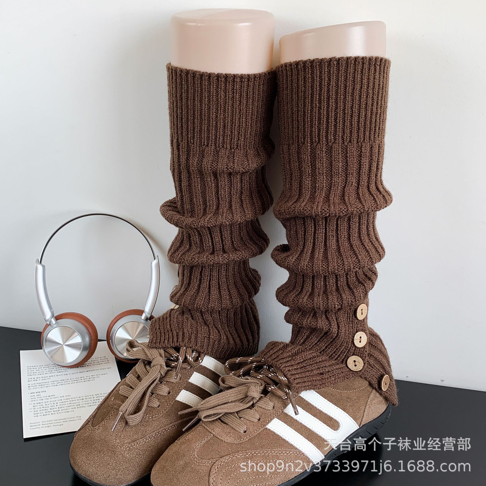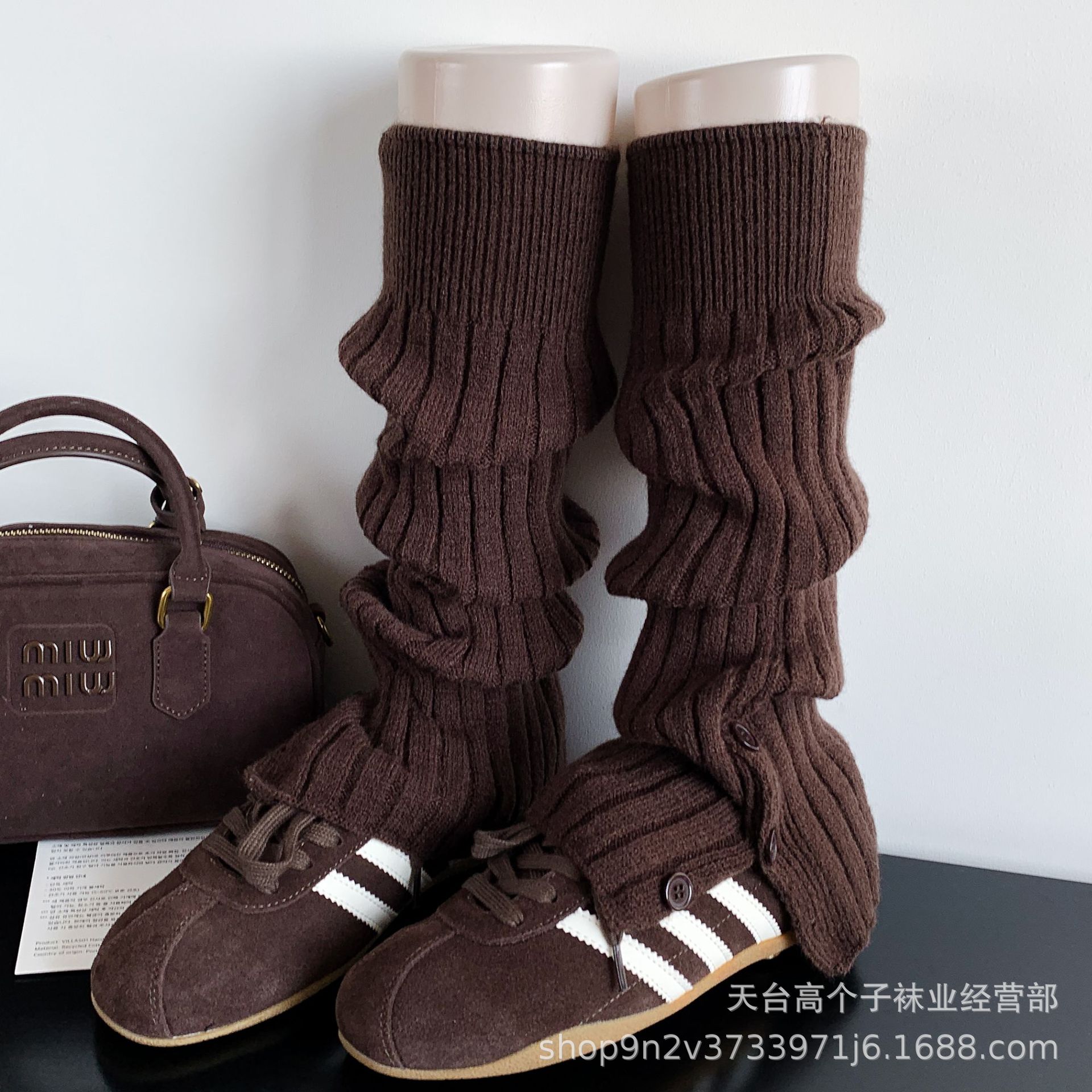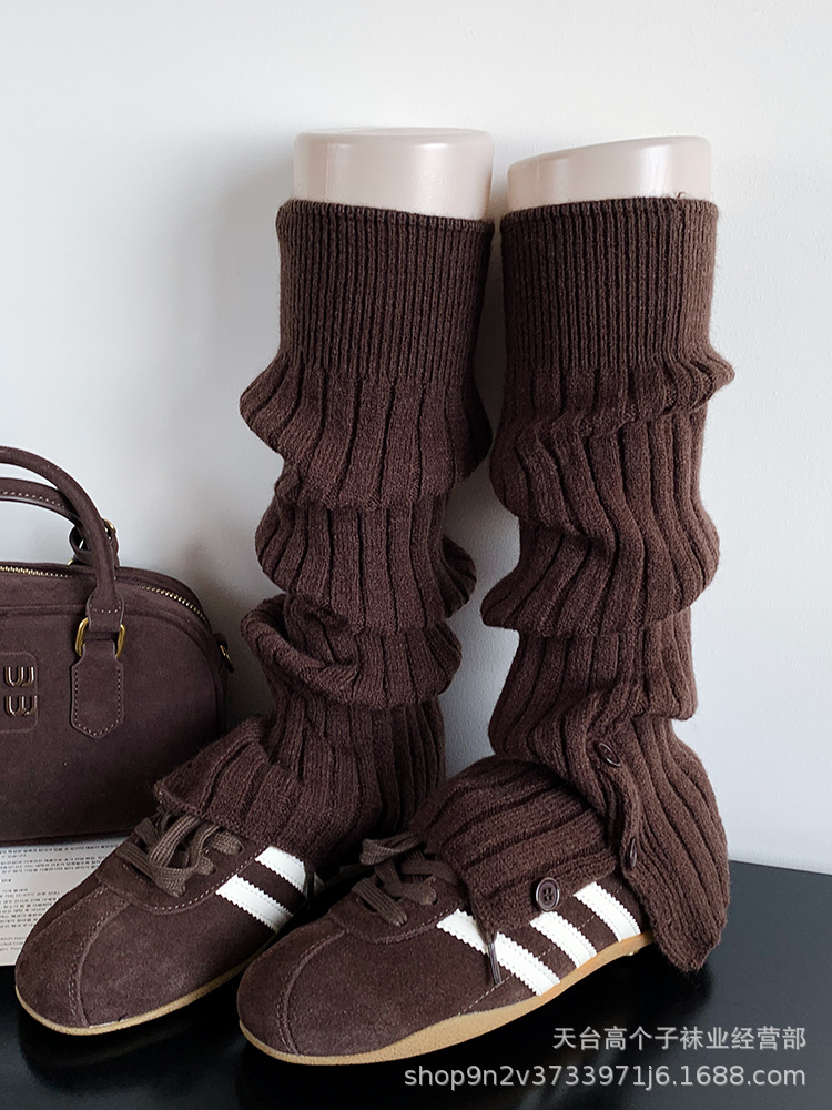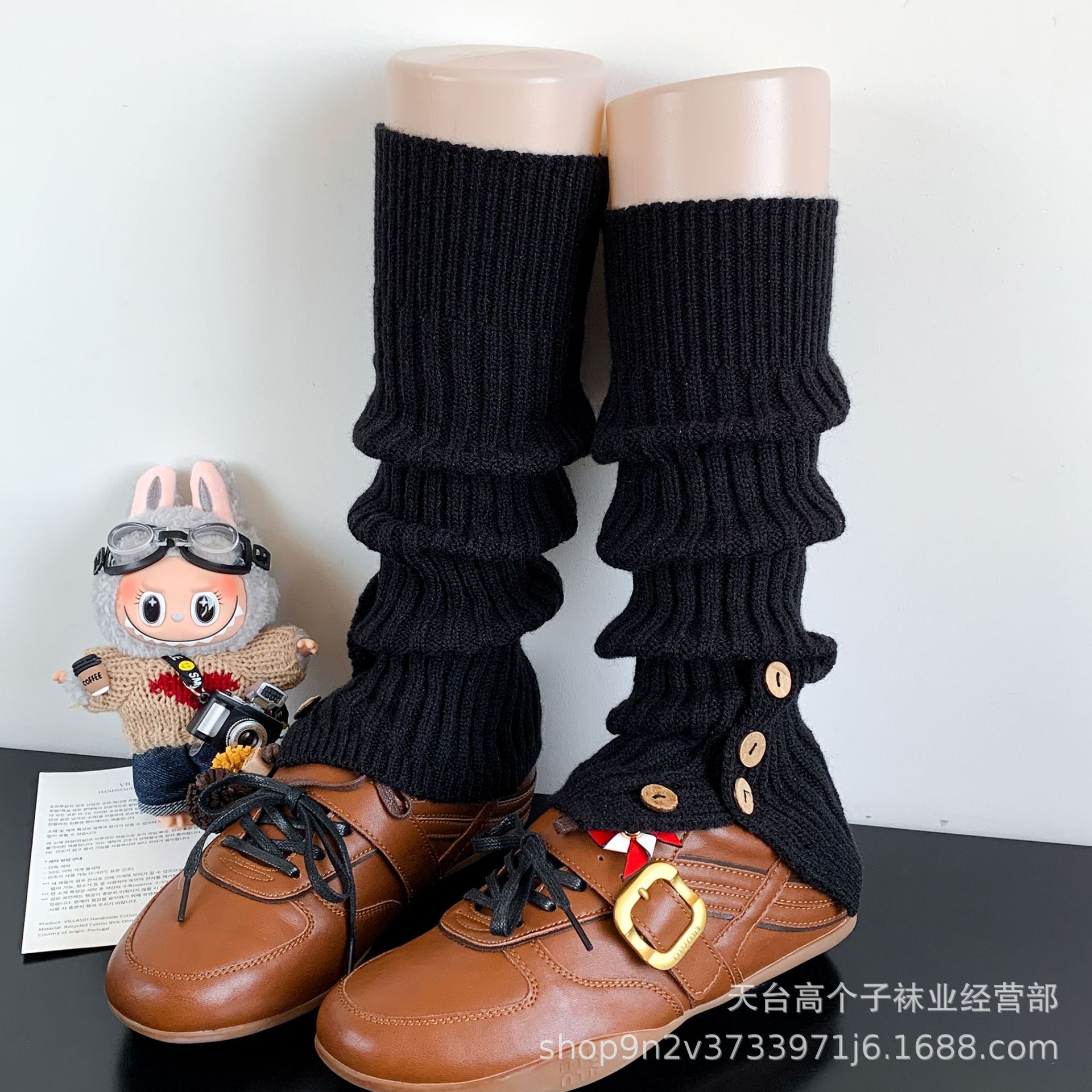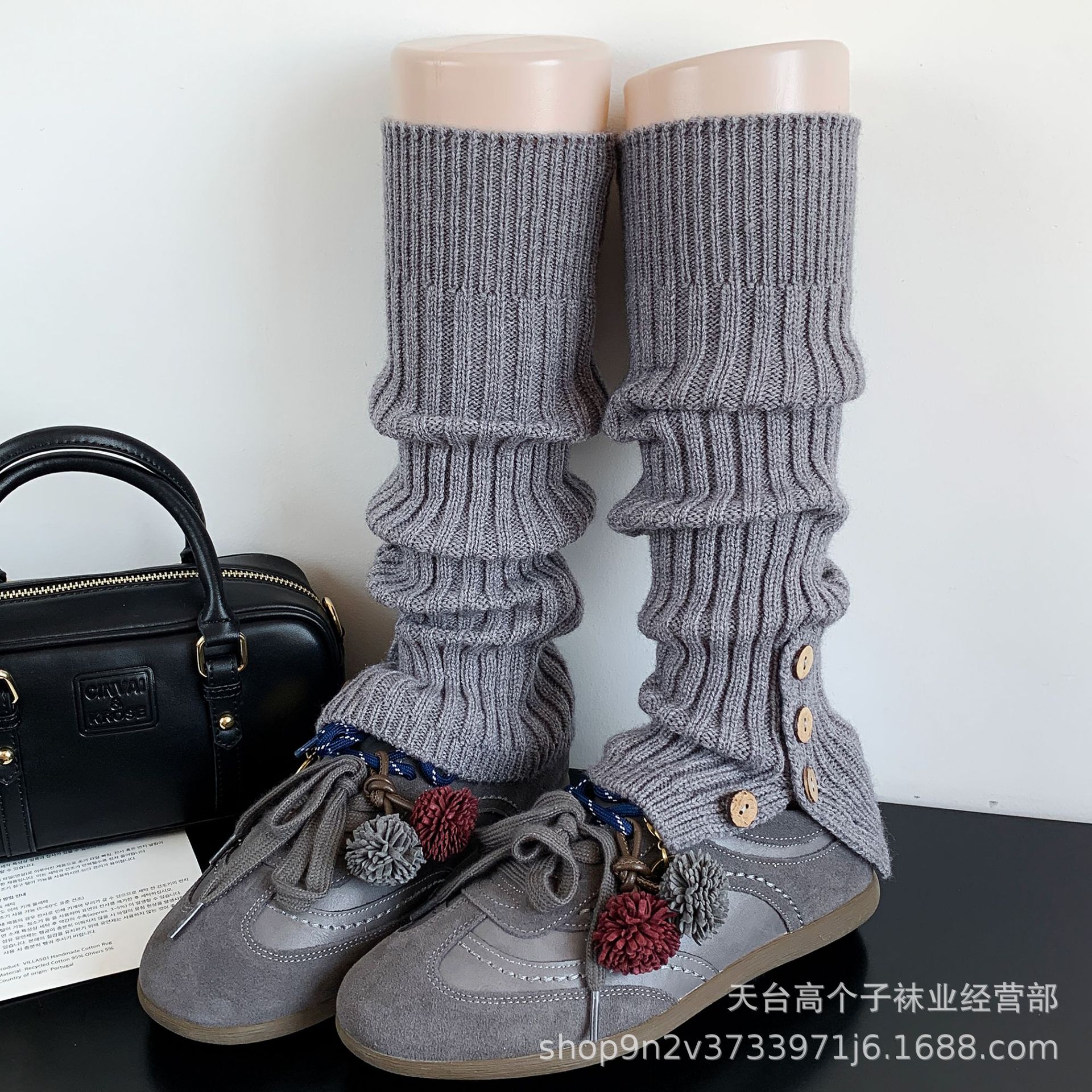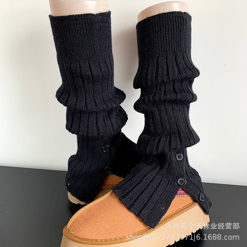 秋冬灰色堆堆袜套jk奶白色保暖腿套女中筒黑色针织竖条开叉小腿袜