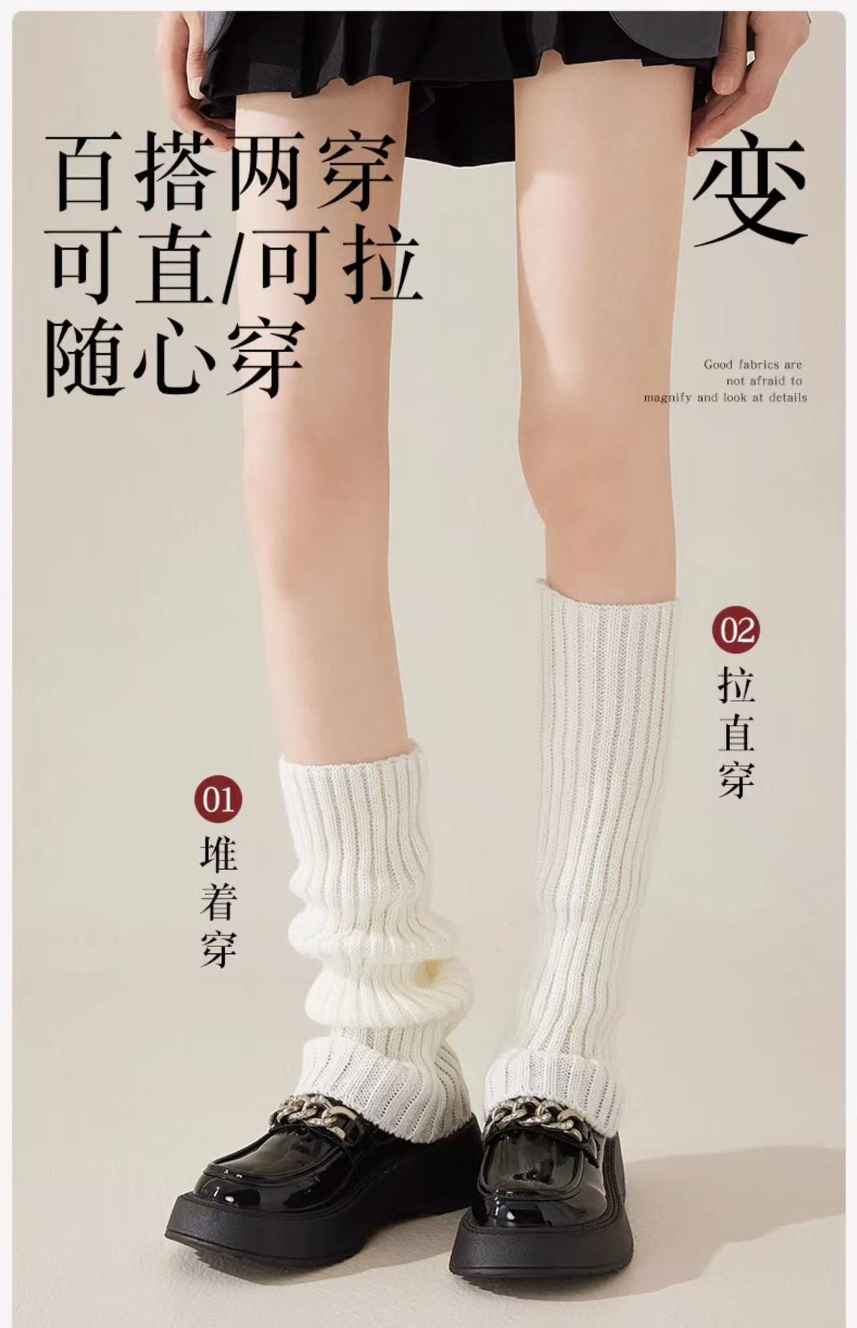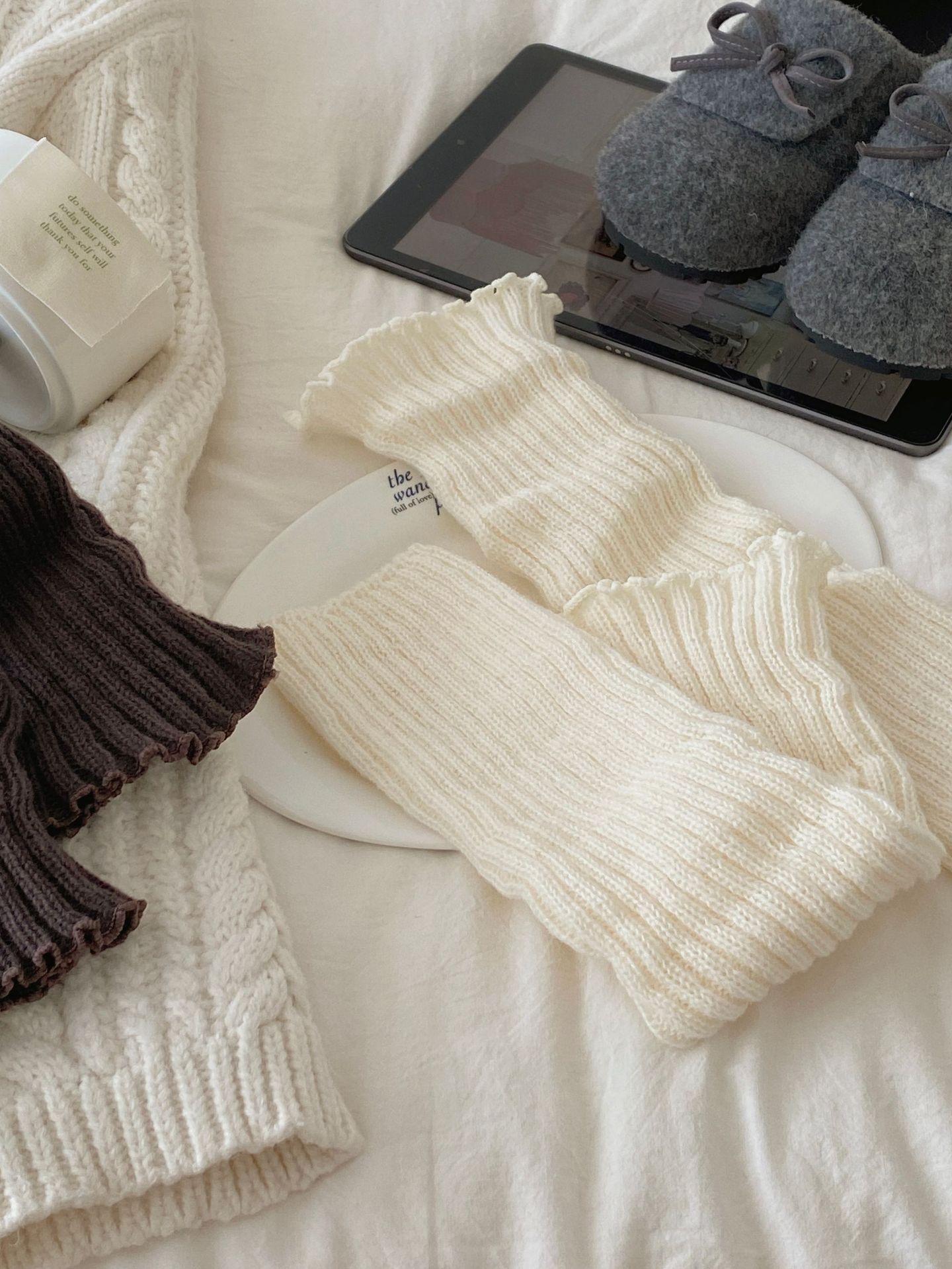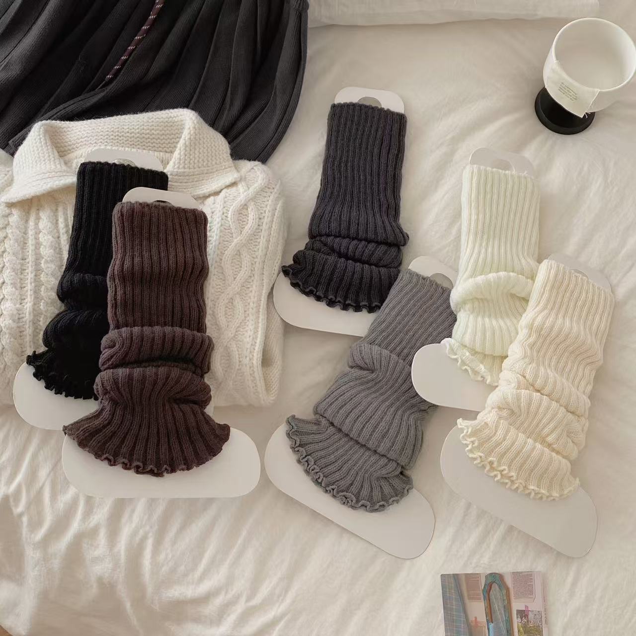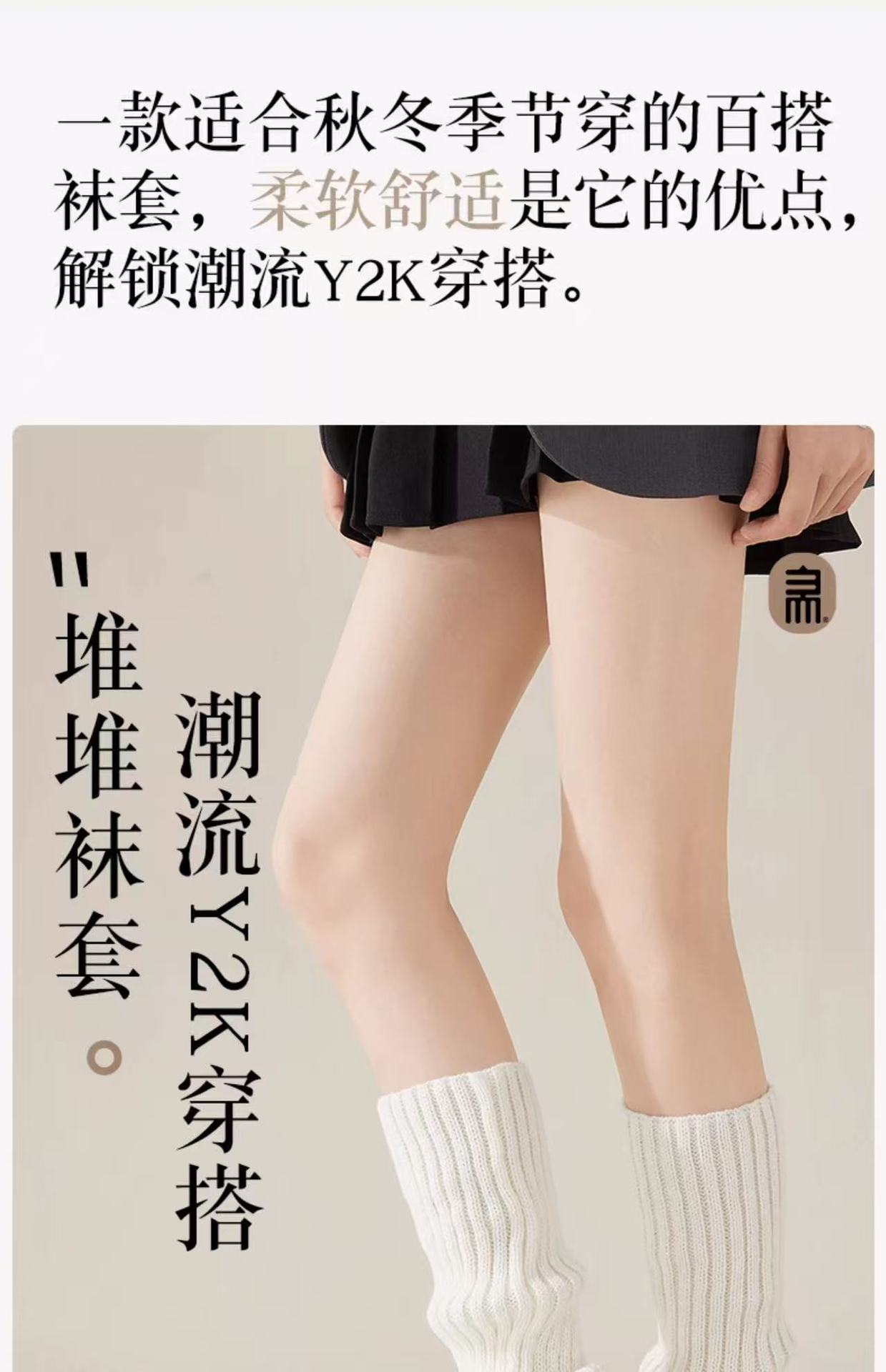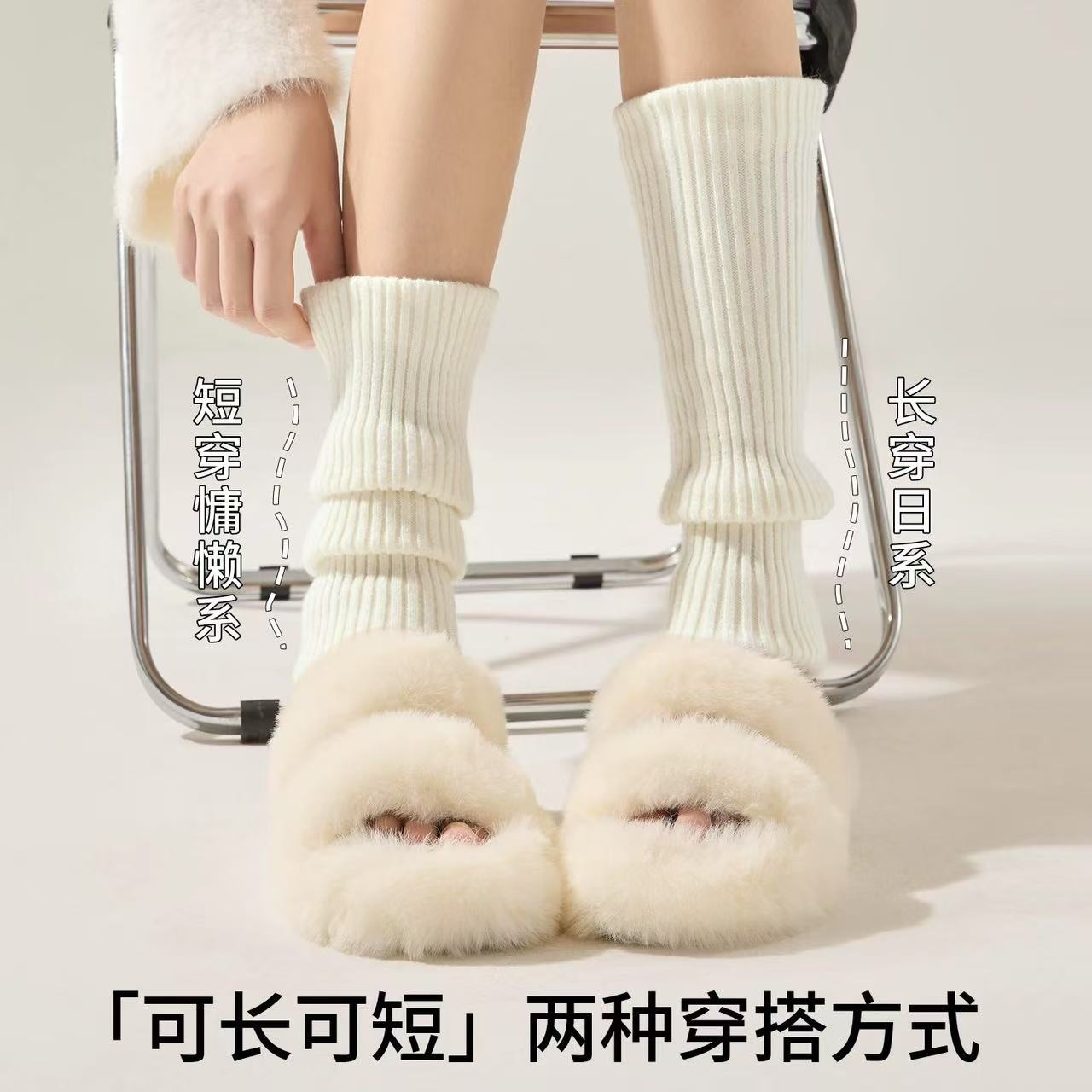 针织袜套女白色y2k辣妹堆堆袜jk腿套亚文化秋冬纯色日系长筒袜子