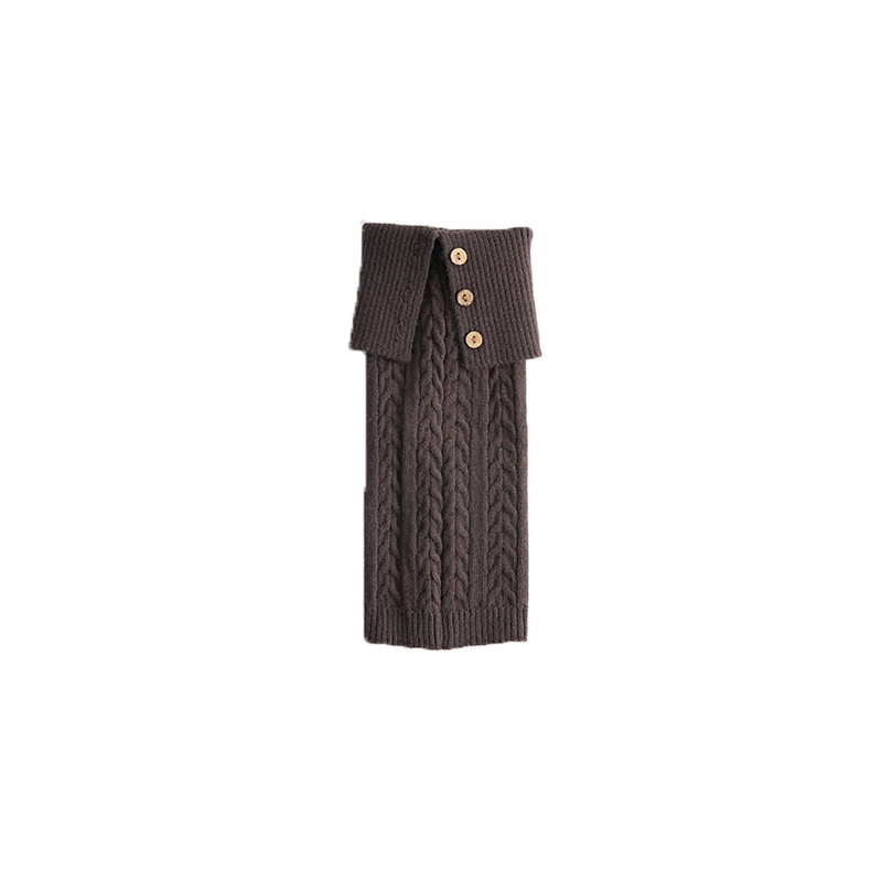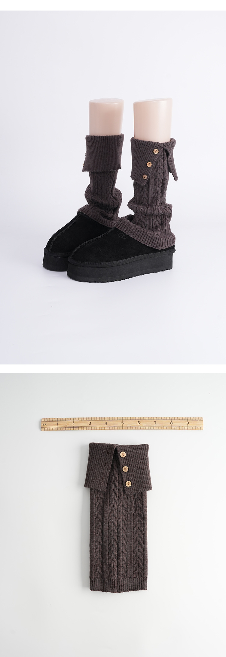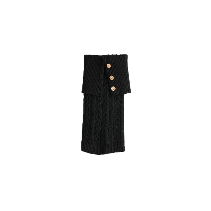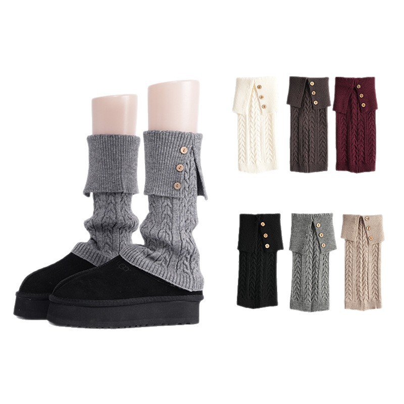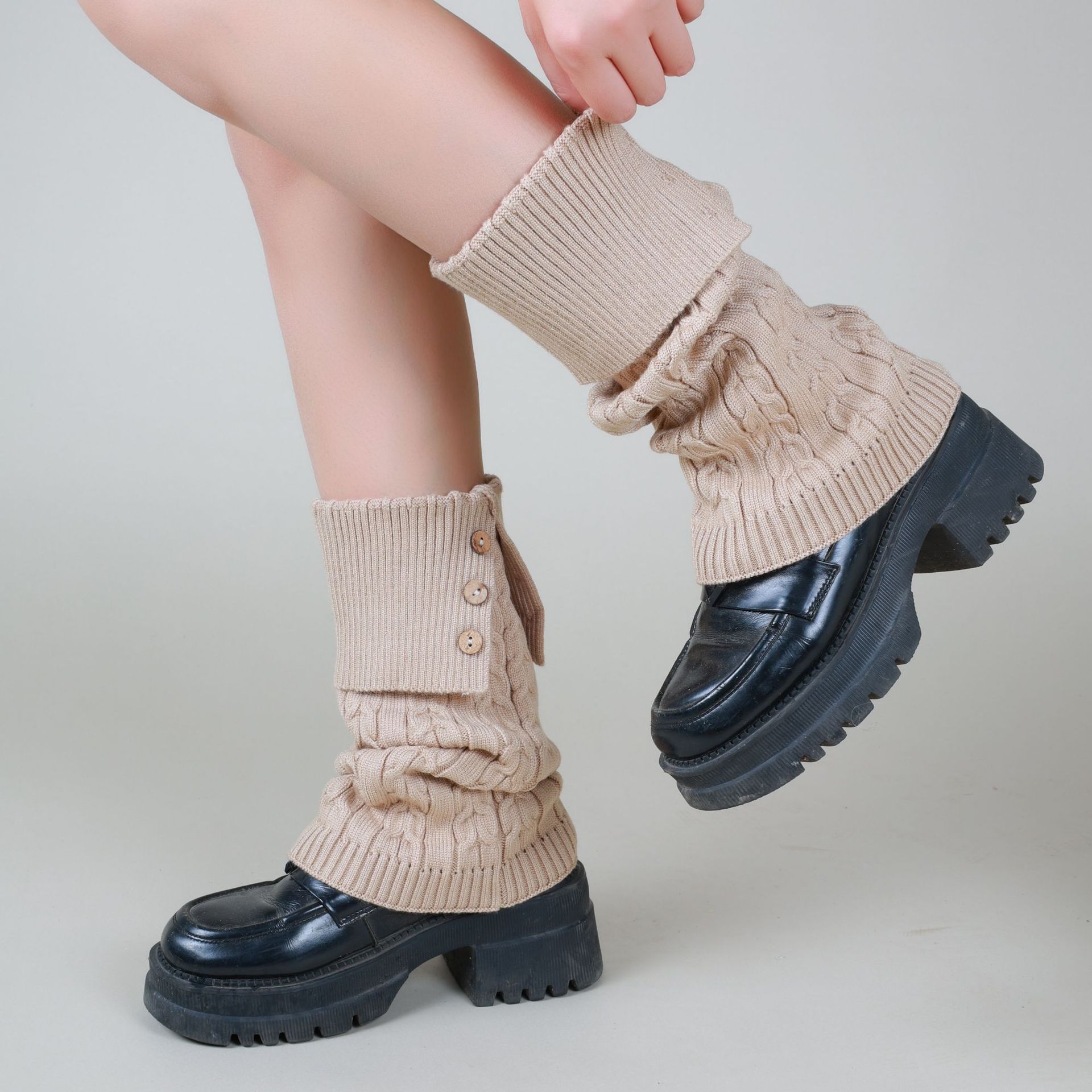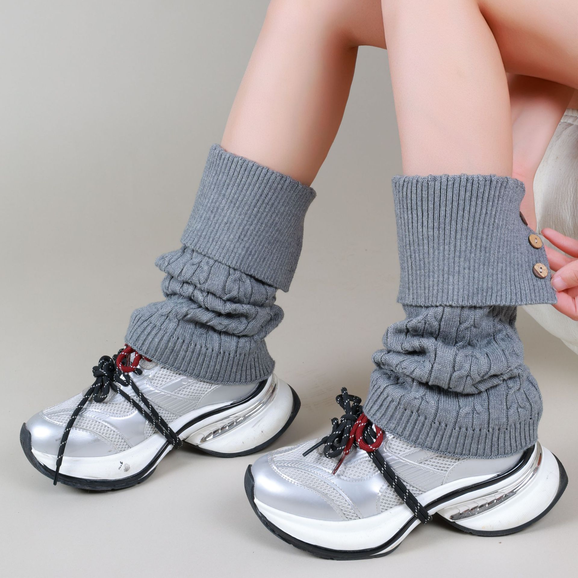 秋冬百搭加厚翻边麻花纹复古y2k堆堆袜套车厘子纽扣点缀针织