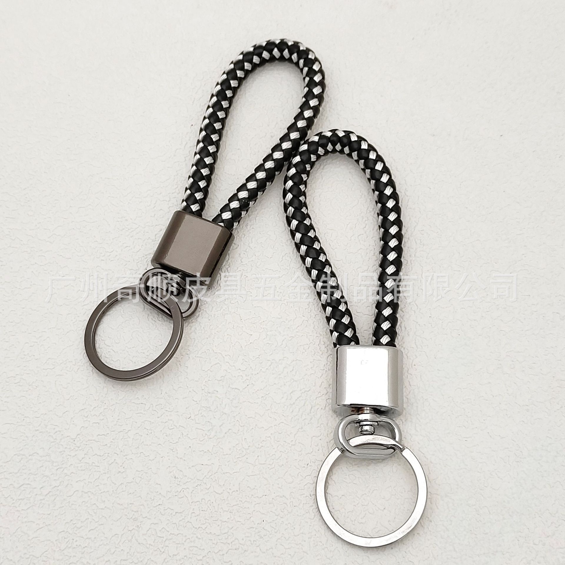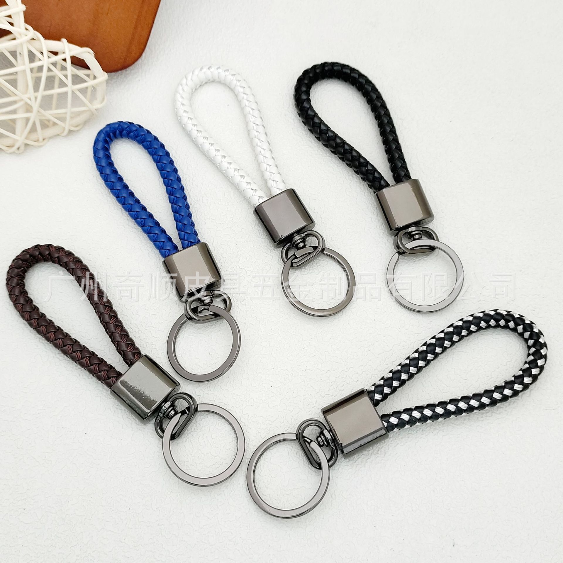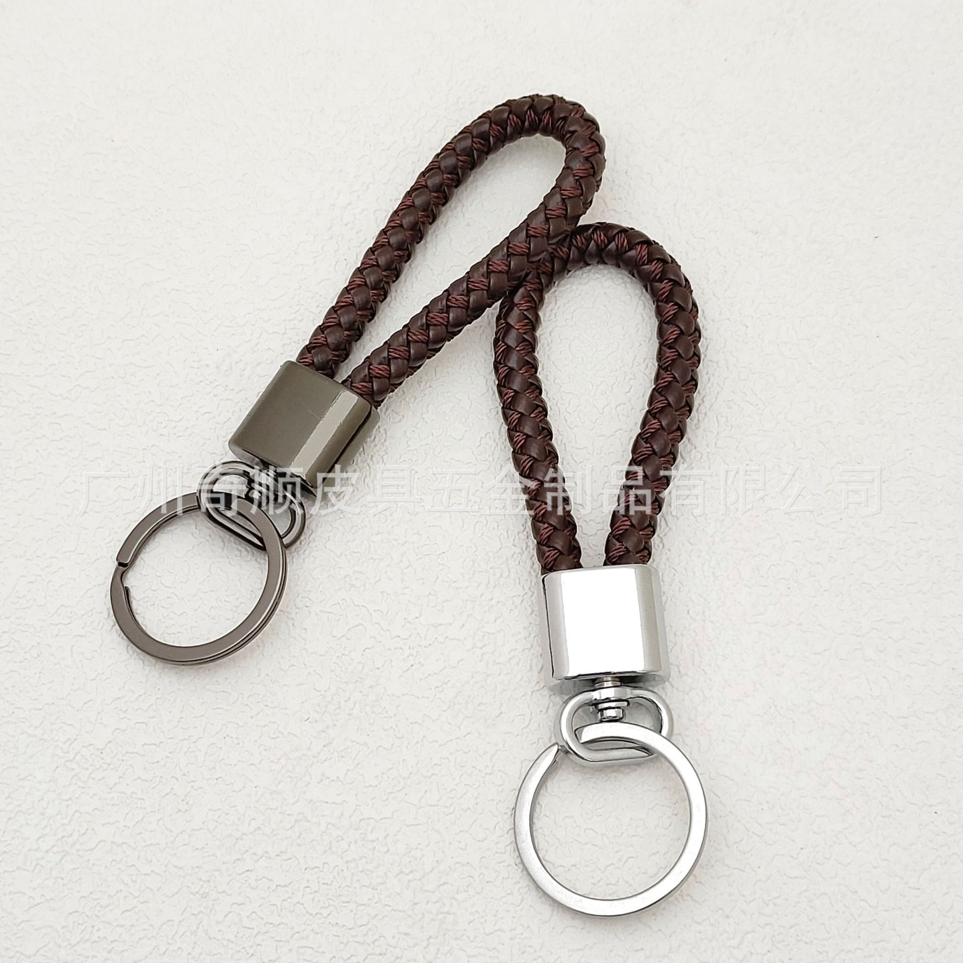 简约高档皮质编织绳汽车钥匙扣logo刻字可旋转钥匙链圈情侣锁匙扣
