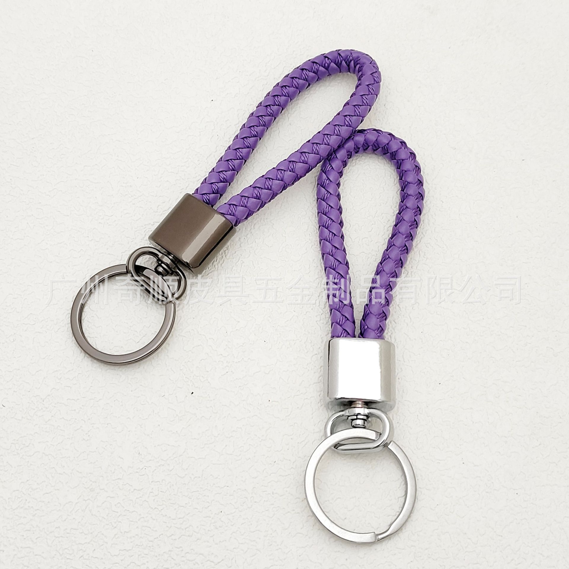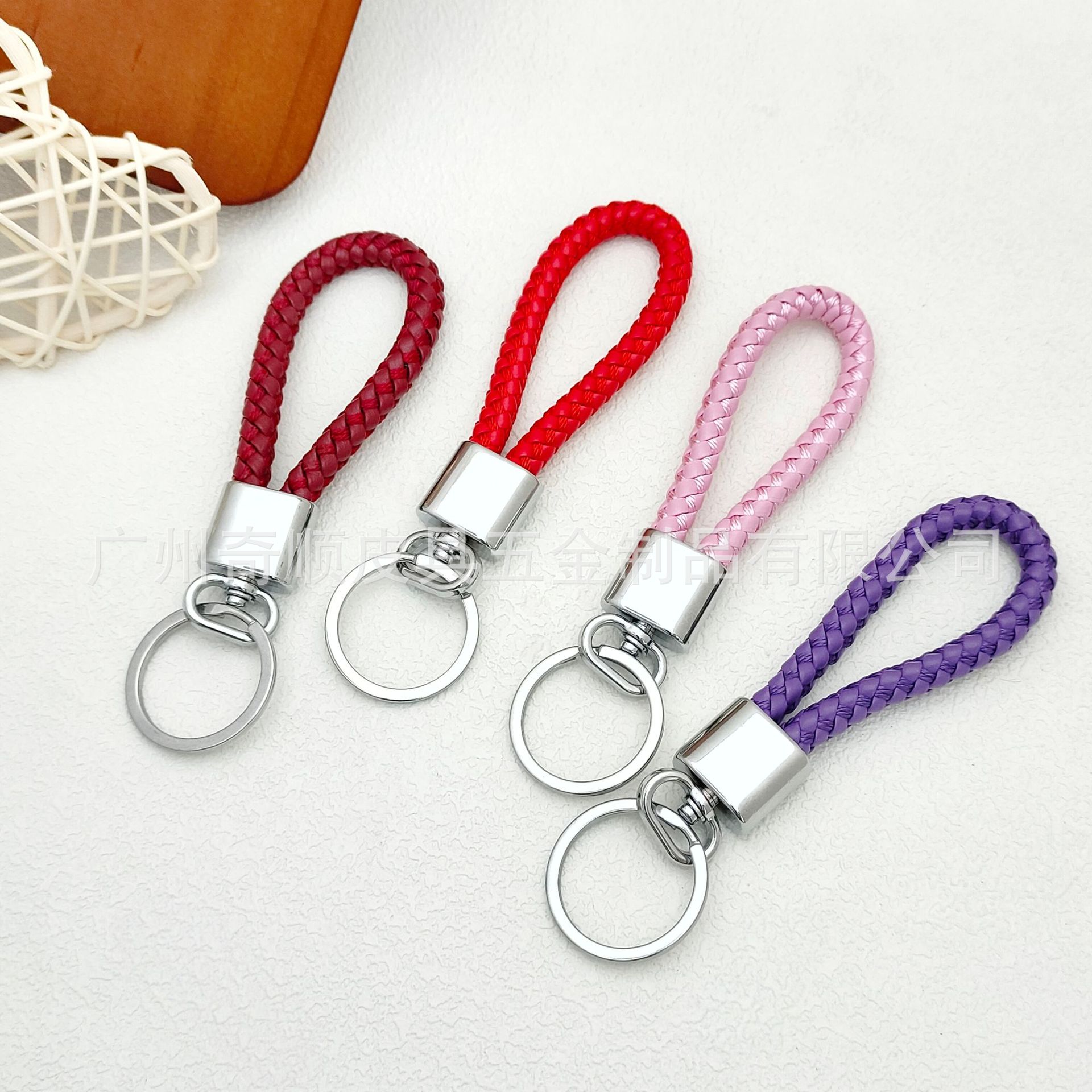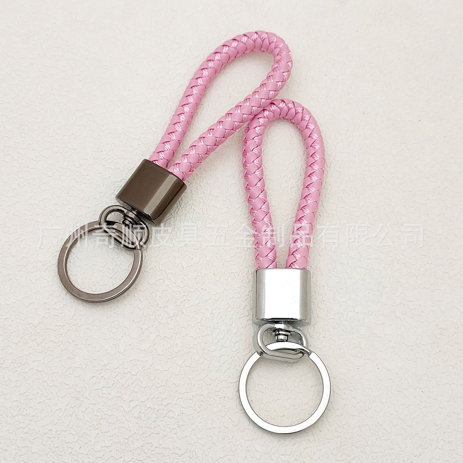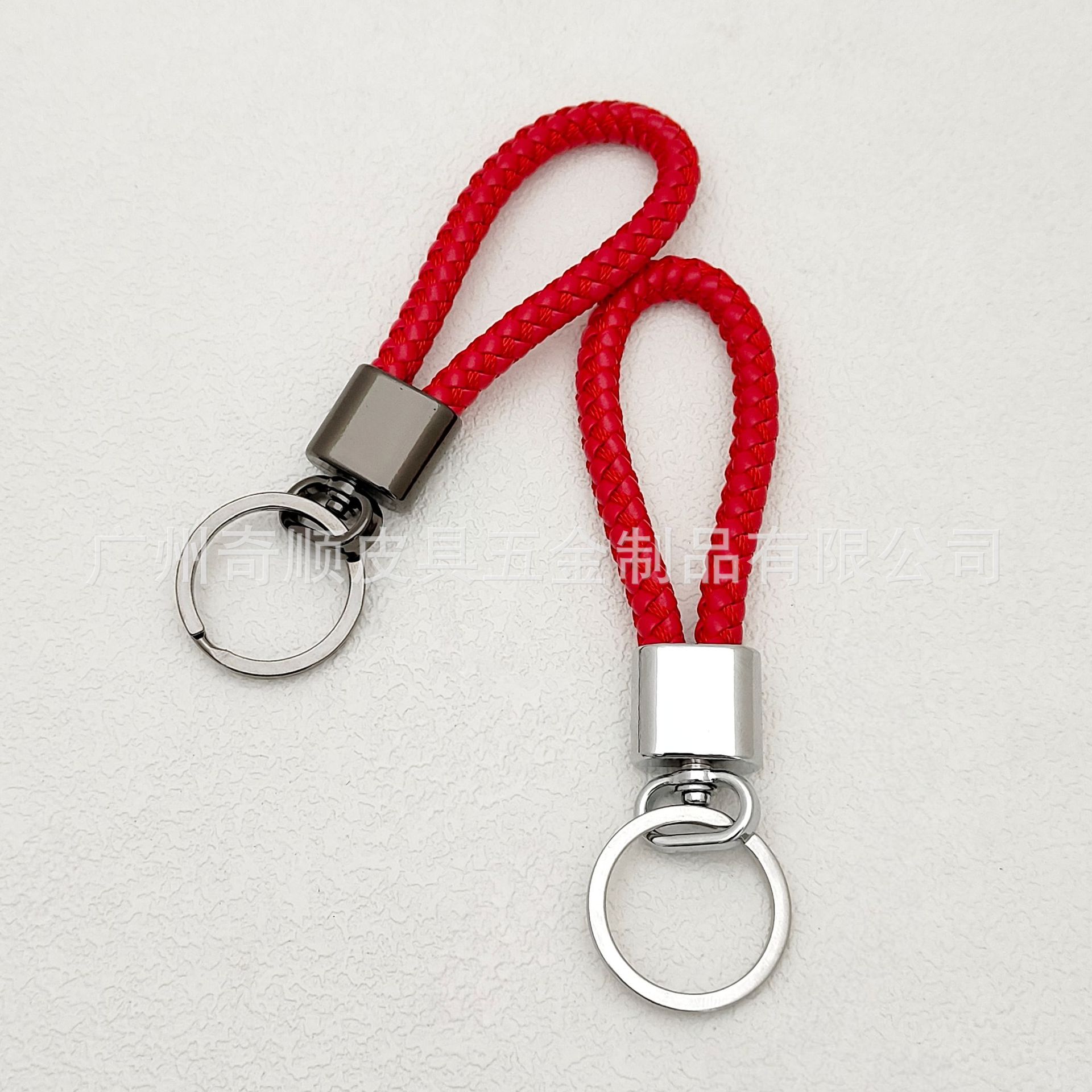 简约高档皮质编织绳汽车钥匙扣logo刻字可旋转钥匙链圈情侣锁匙扣