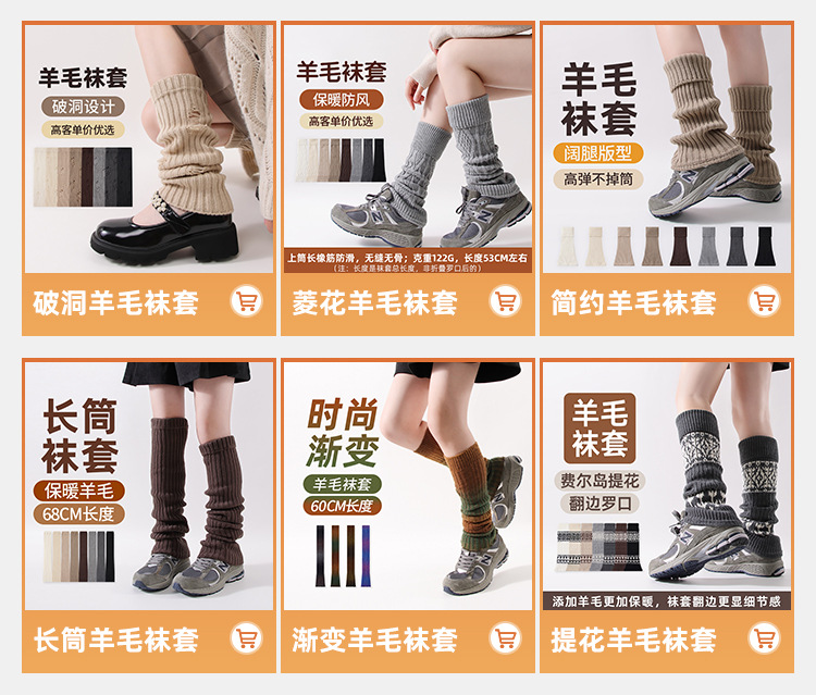 羊毛针织袜套秋冬保暖中筒袜y2k原宿风辣妹日系学院风堆堆袜女袜