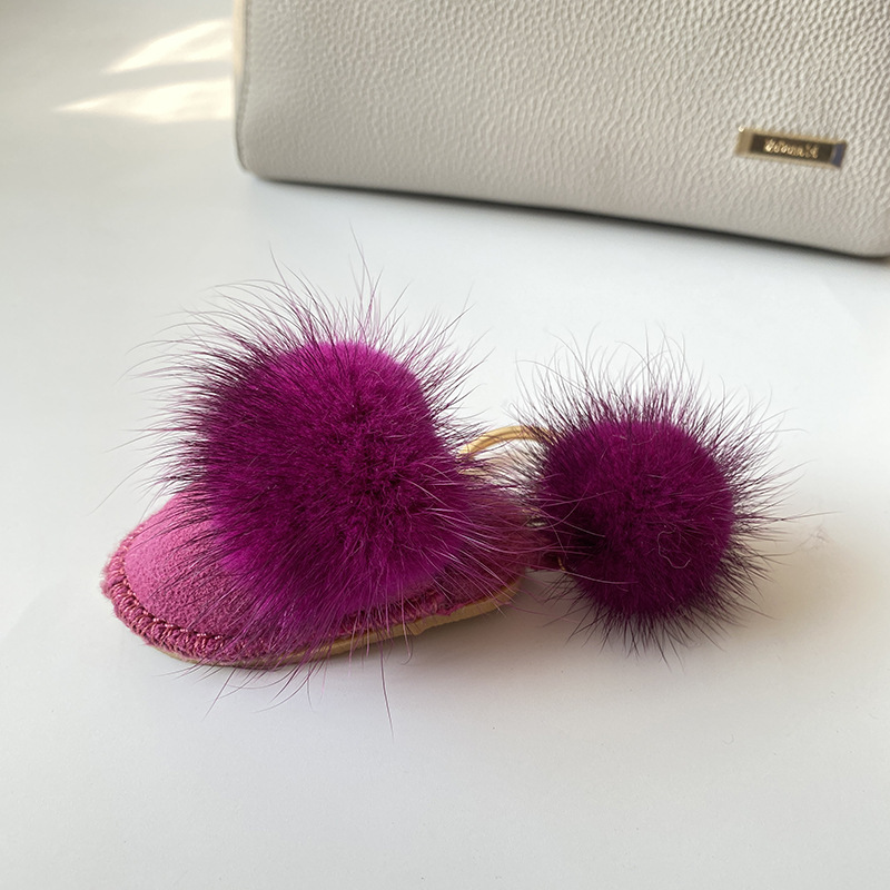 真皮水貂毛原创设计挂件车钥匙包包挂件毛绒钥匙扣貂毛吊坠手套