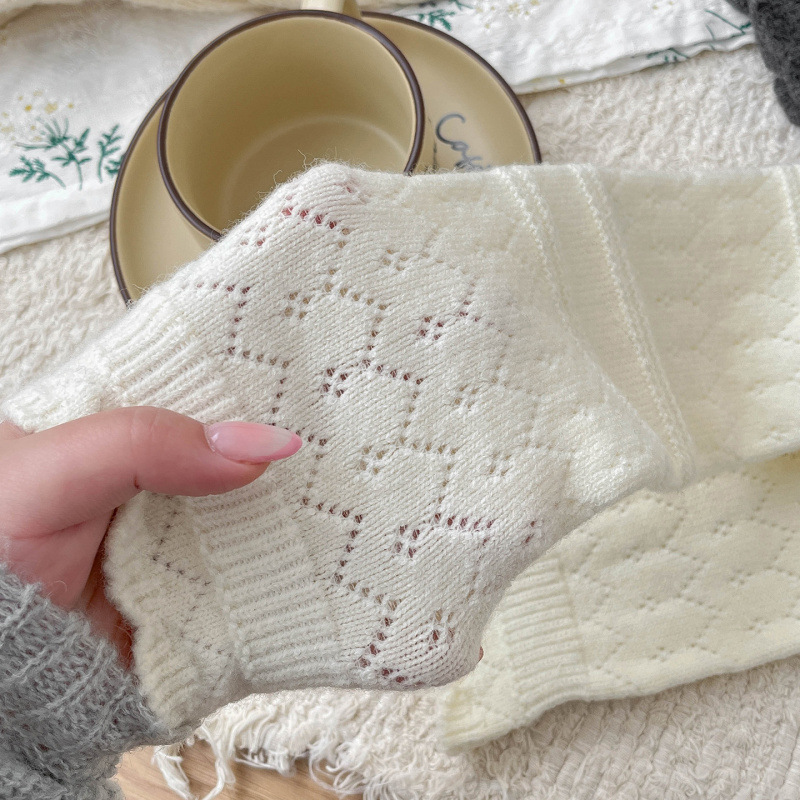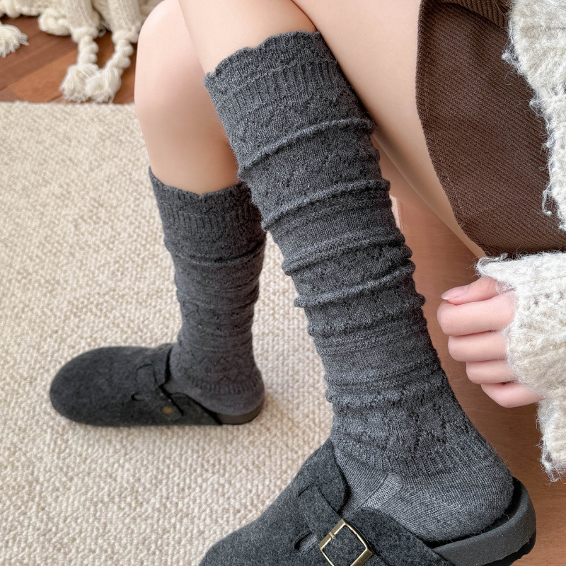 日系复古镂空羊毛小腿袜子女中筒堆堆袜秋冬保暖配靴子长筒袜靴袜