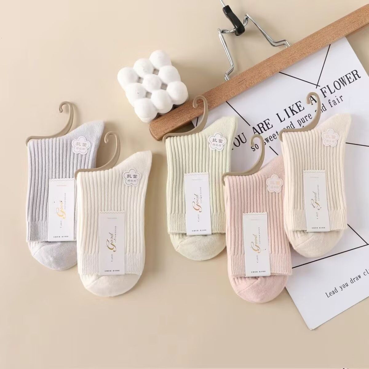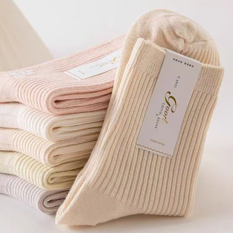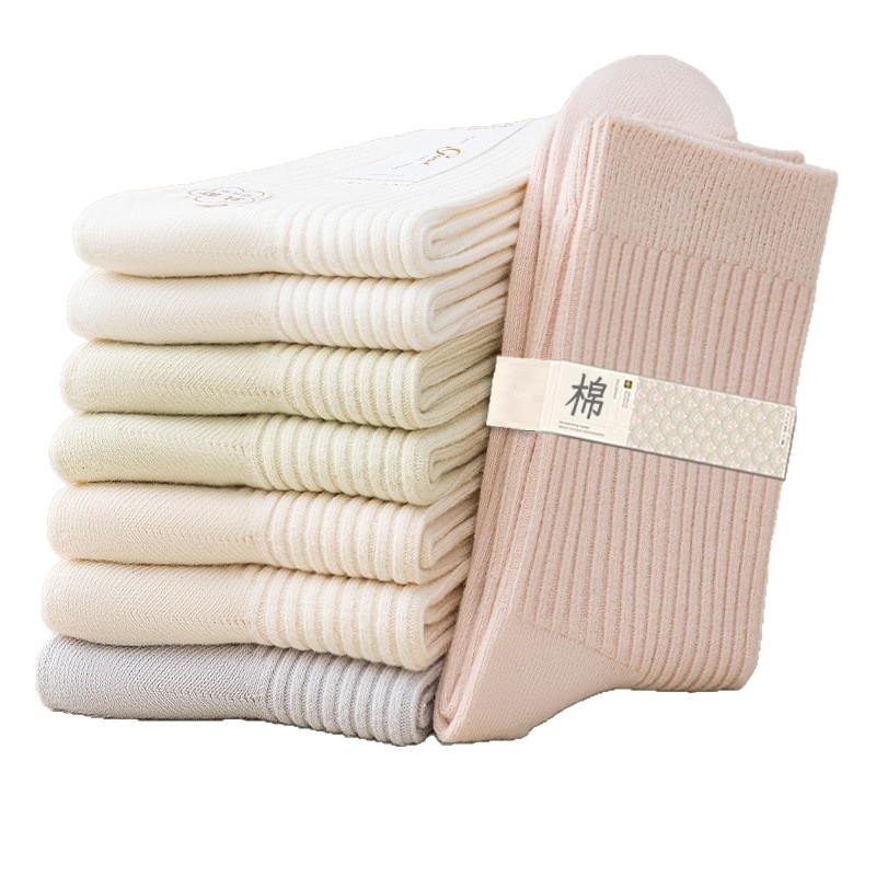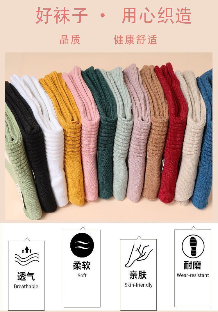 袜子女春夏四季纯色中筒袜竖条休闲女诸暨袜堆堆袜日系长筒袜批发
