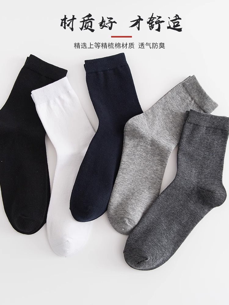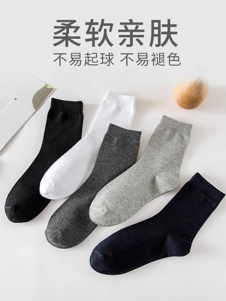 男士四季中筒袜子免洗袜子黑白灰薄款纯色款休闲商务袜一次性袜子