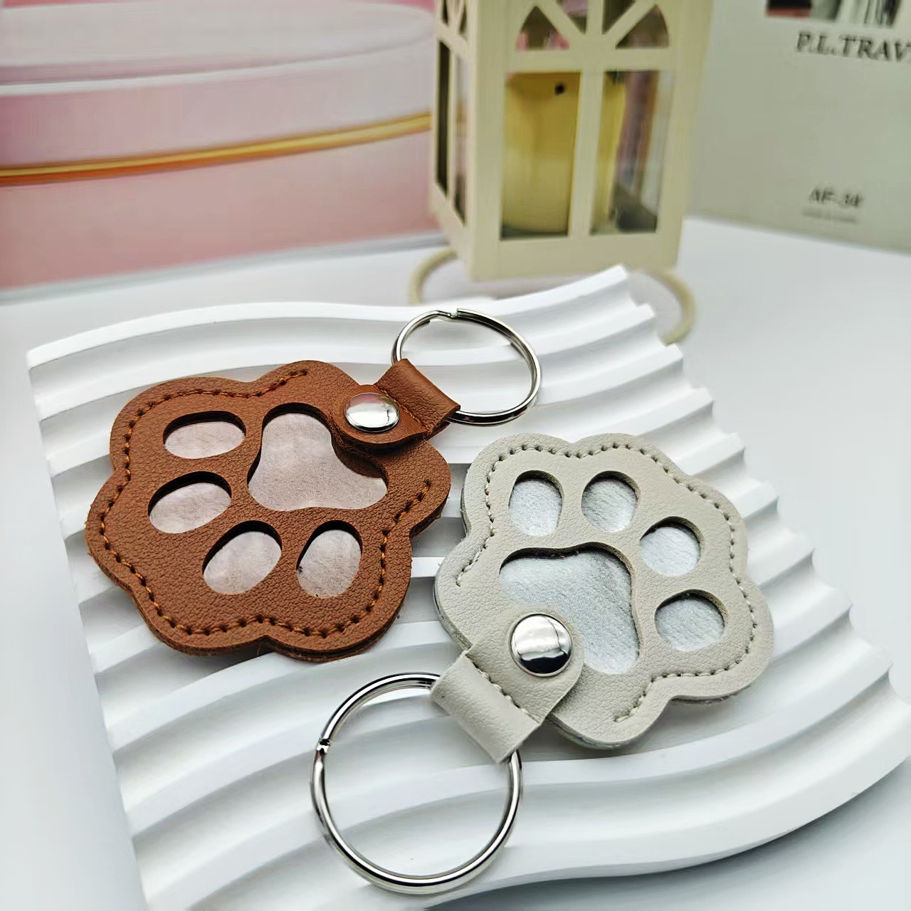 热销宠物毛发PU收纳包便携爪印钥匙扣挂件毛发纪念牌猫狗宠物挂牌