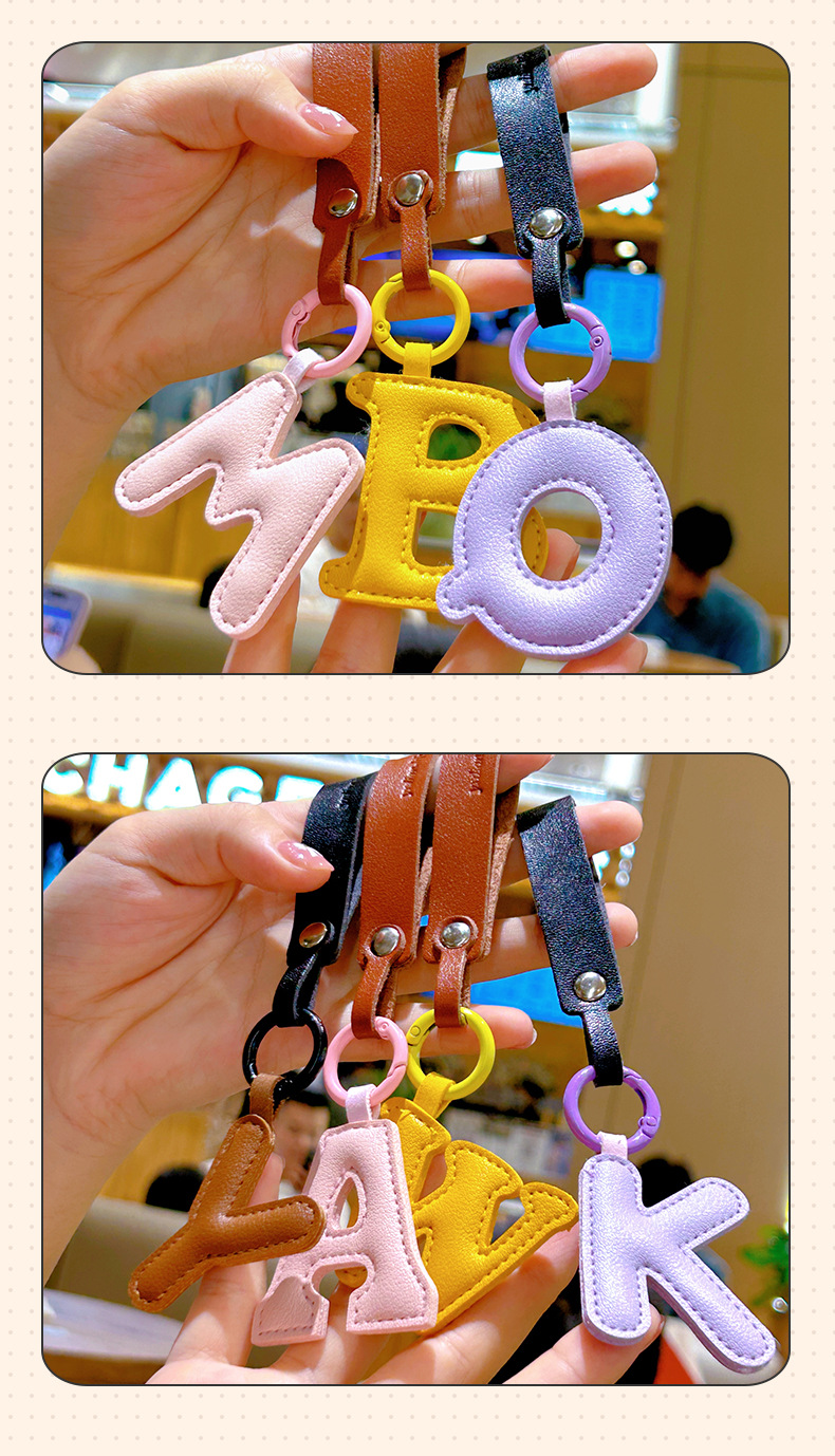 跨境爆款皮革英文字母钥匙扣挂件女生情侣包包小饰品挂件可定制