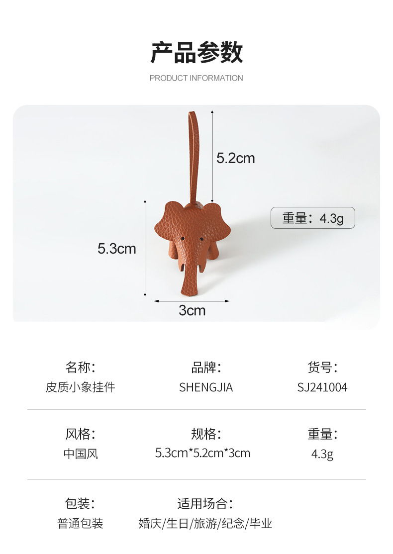 可爱皮质小象挂件钥匙扣车挂饰卡通PU皮革手缝多色可选手工定作