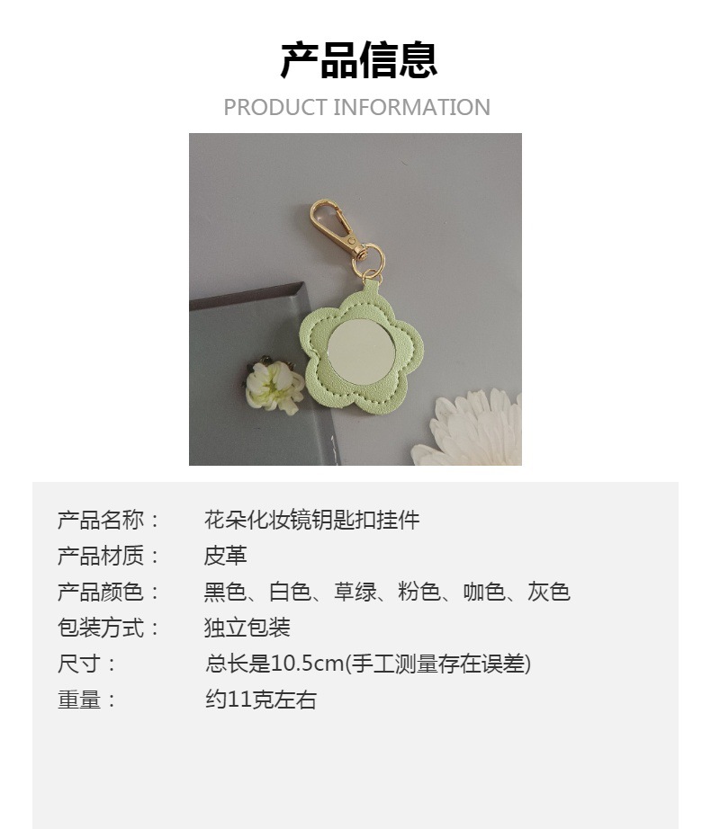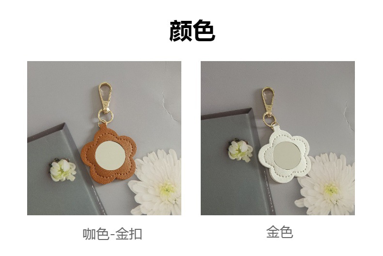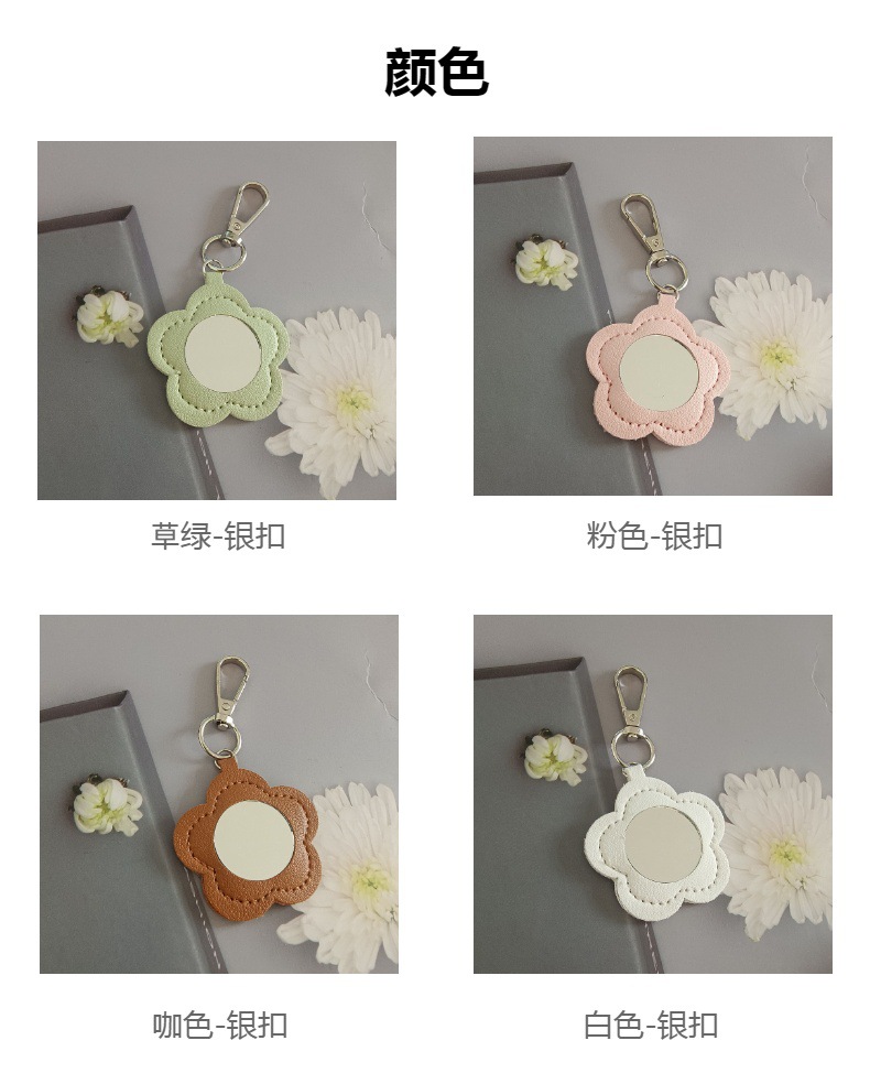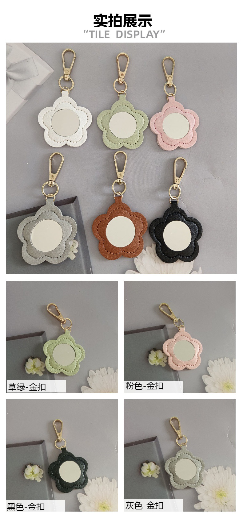 创意跨境花朵镜子钥匙扣挂件PU皮制便携化妆镜钥匙链闺蜜包包挂饰