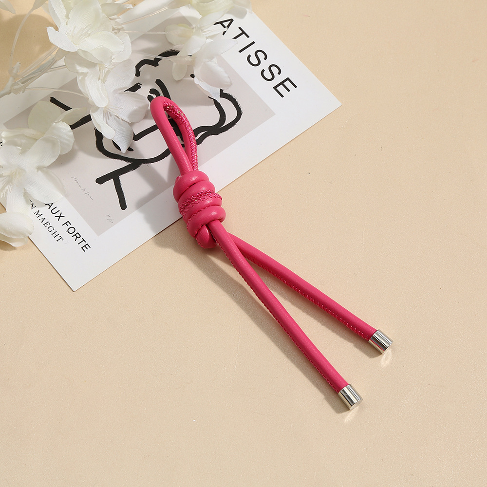 韩版新款手工编织钥匙扣创意纯色PU皮绳挂件简约百搭包包挂饰批发