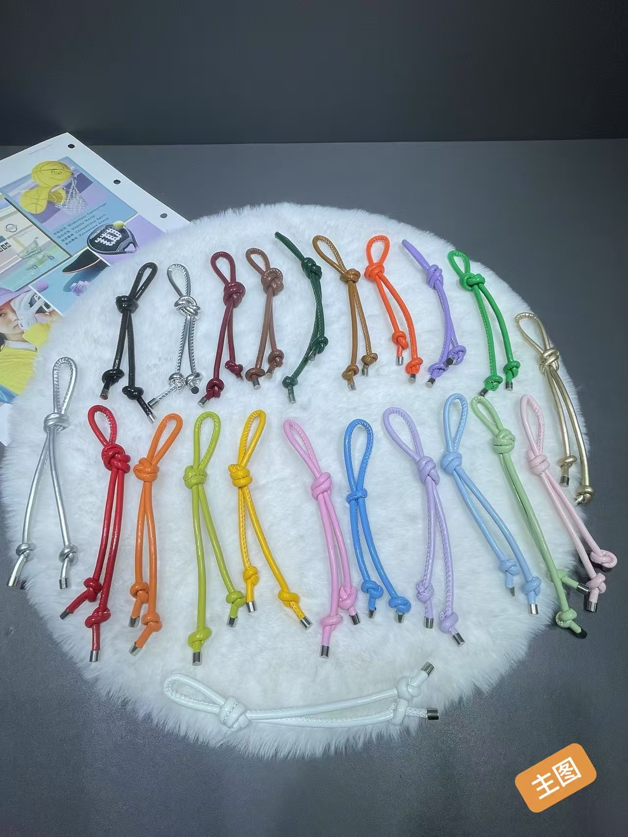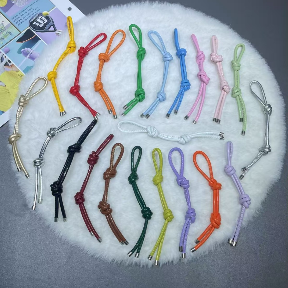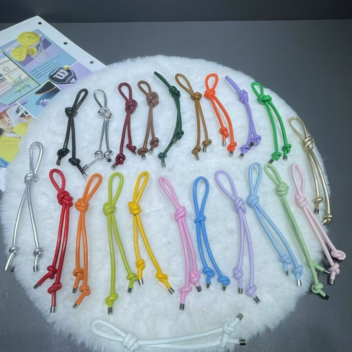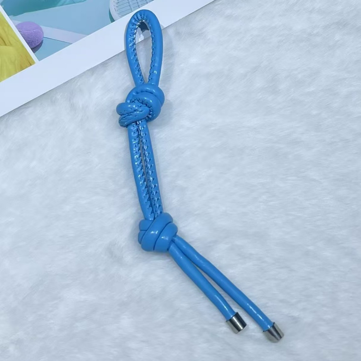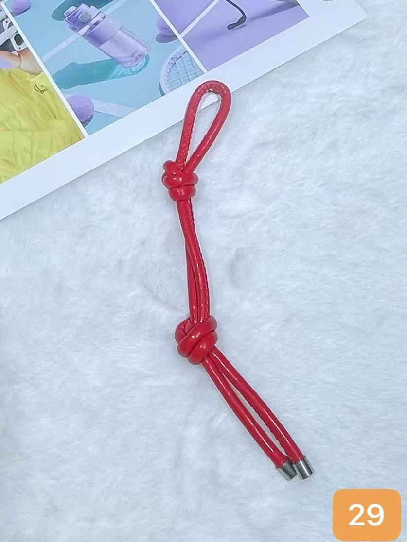 彩色皮革包包挂件创意时尚百搭diy皮绳双绳结挂饰手机钥匙扣挂饰