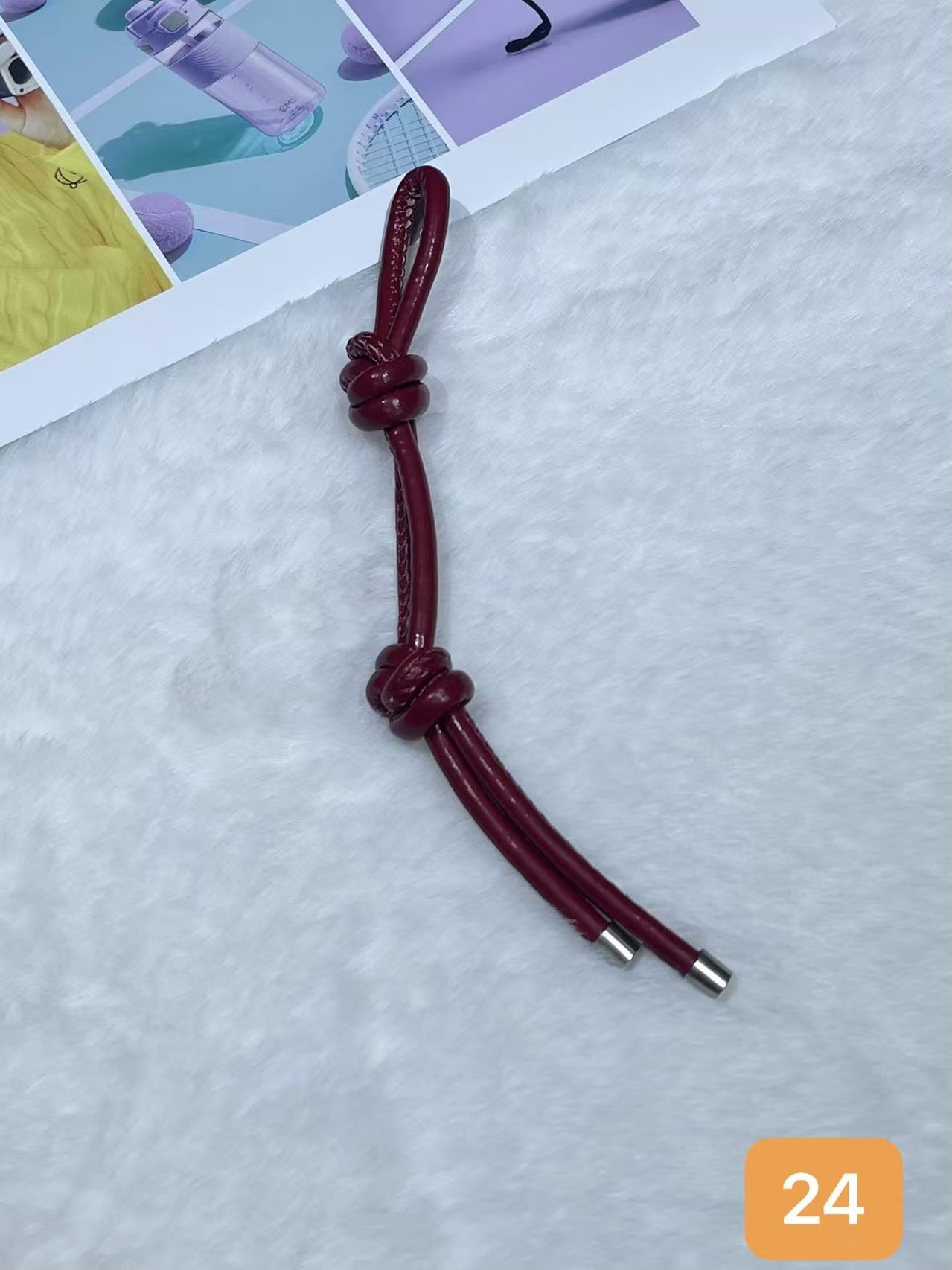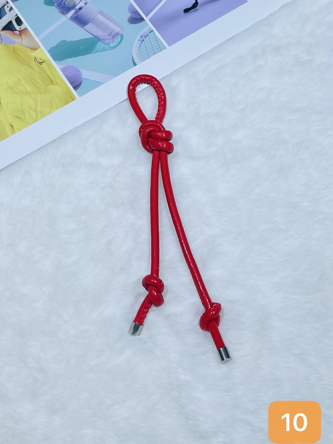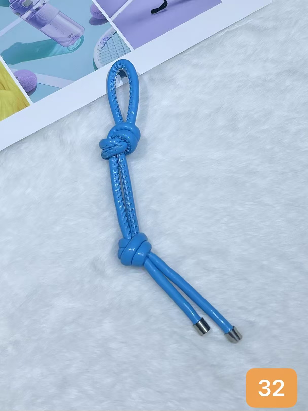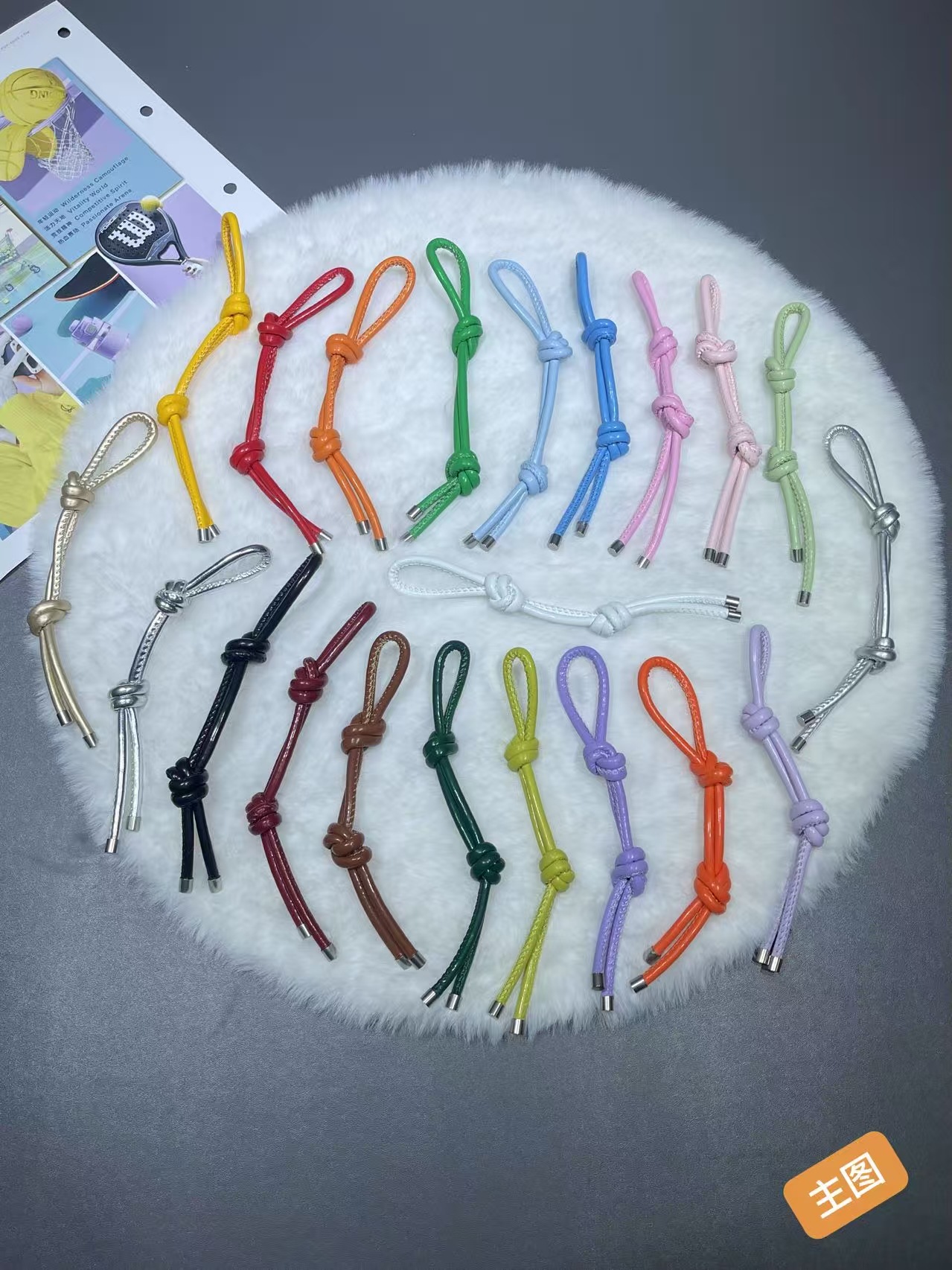 彩色皮革包包挂件创意时尚百搭diy皮绳双绳结挂饰手机钥匙扣挂饰