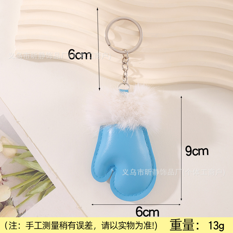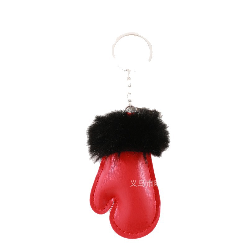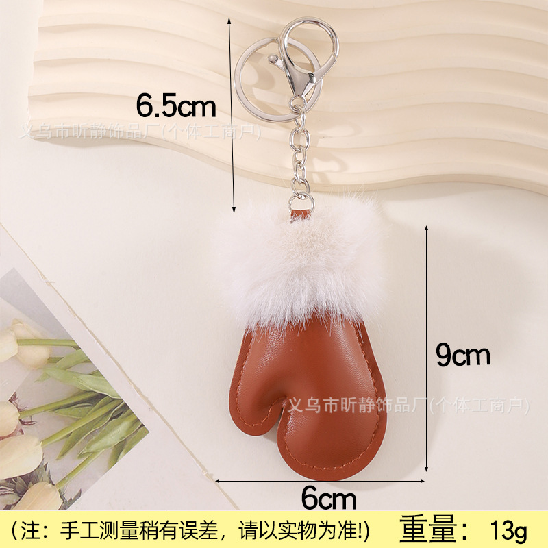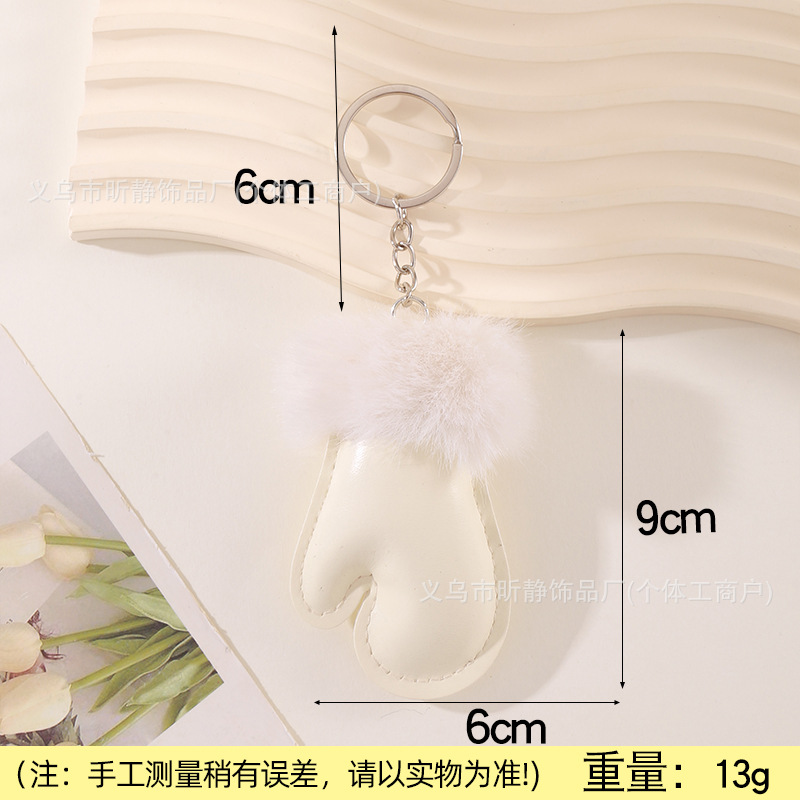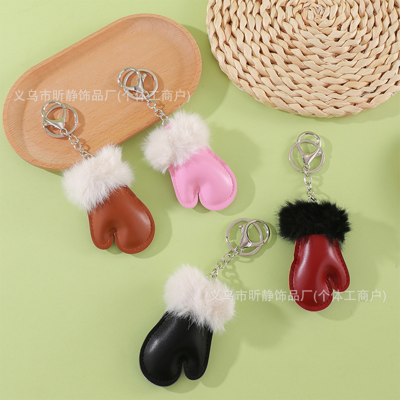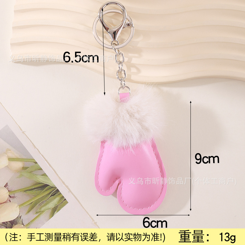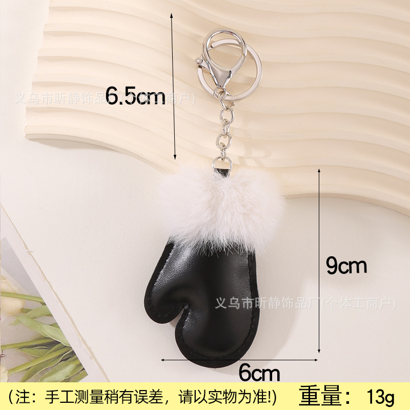 跨境新款獭兔毛绒pu皮革手套挂件手工diy汽车钥匙扣包包挂饰批发