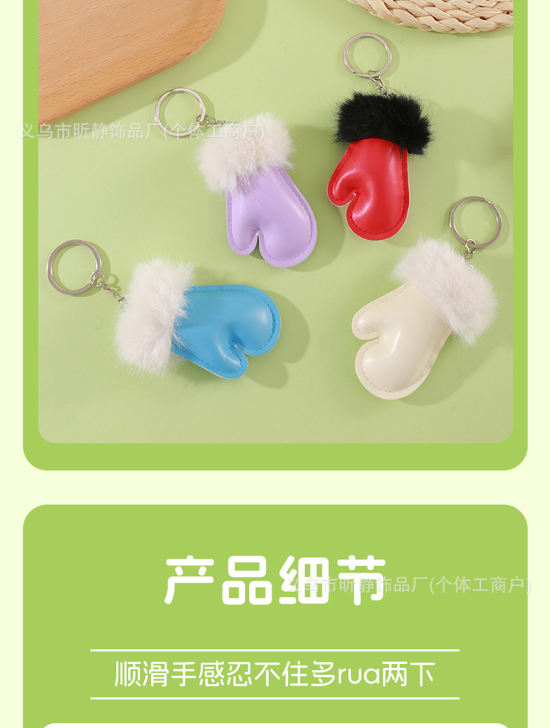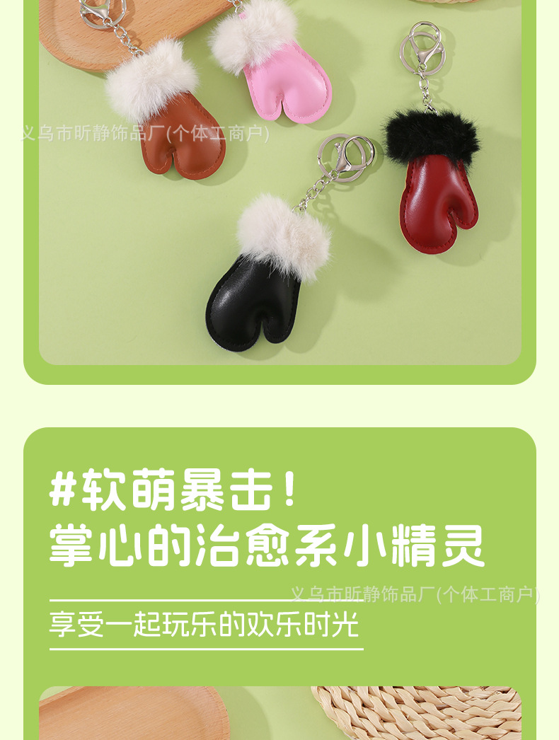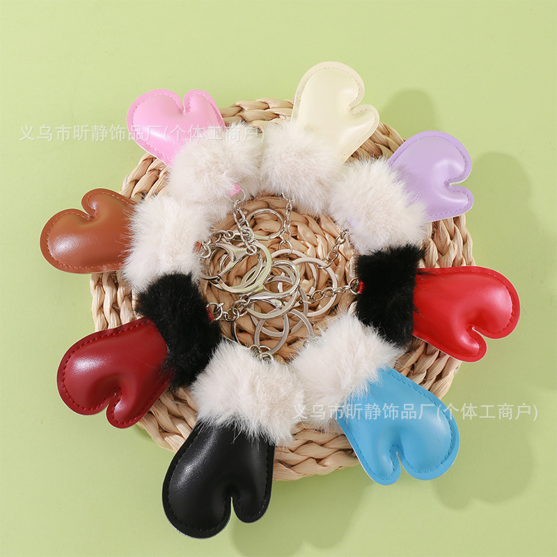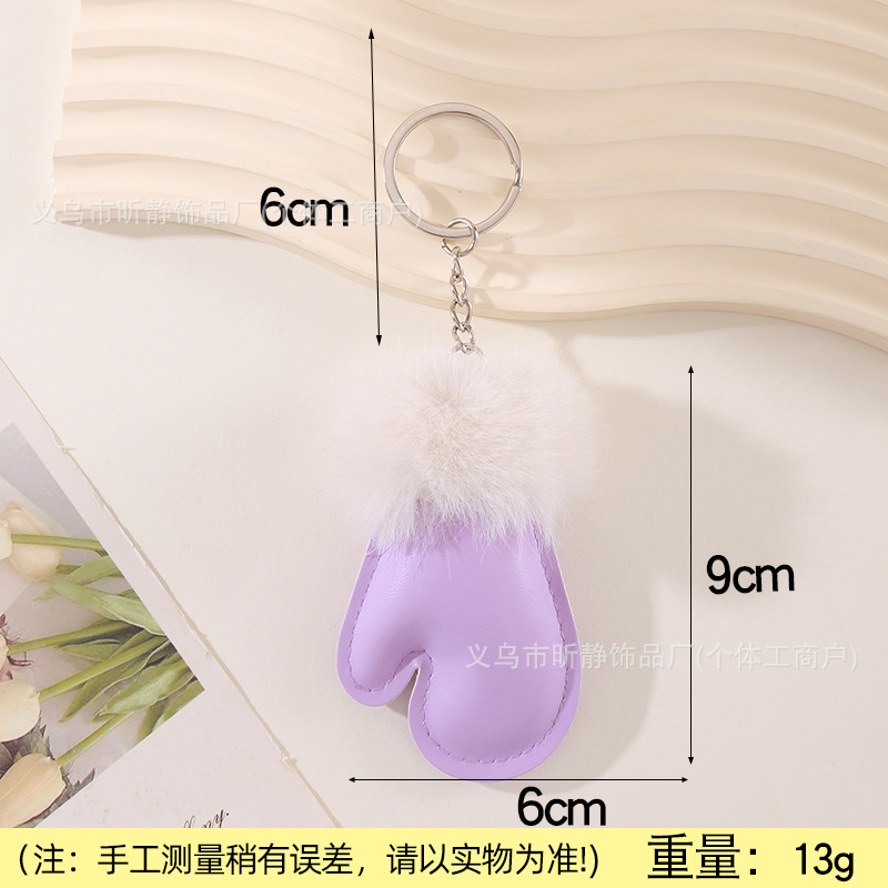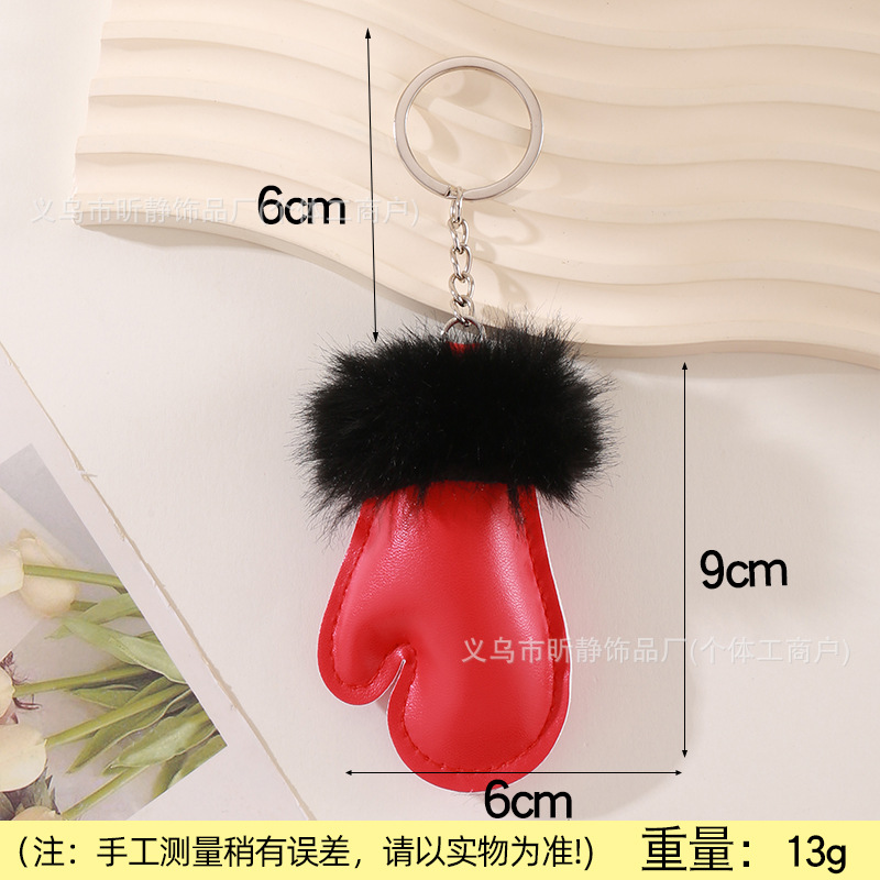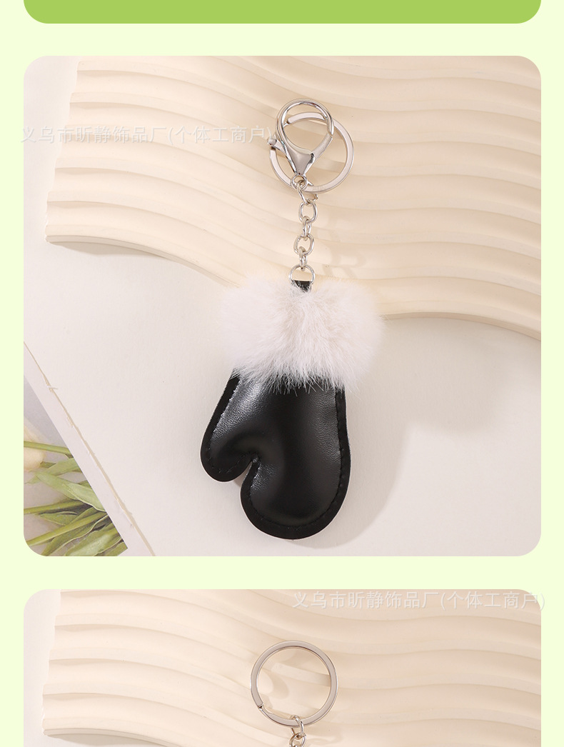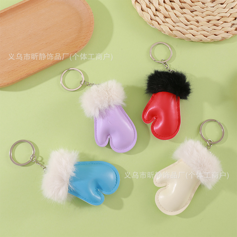 跨境新款獭兔毛绒pu皮革手套挂件手工diy汽车钥匙扣包包挂饰批发