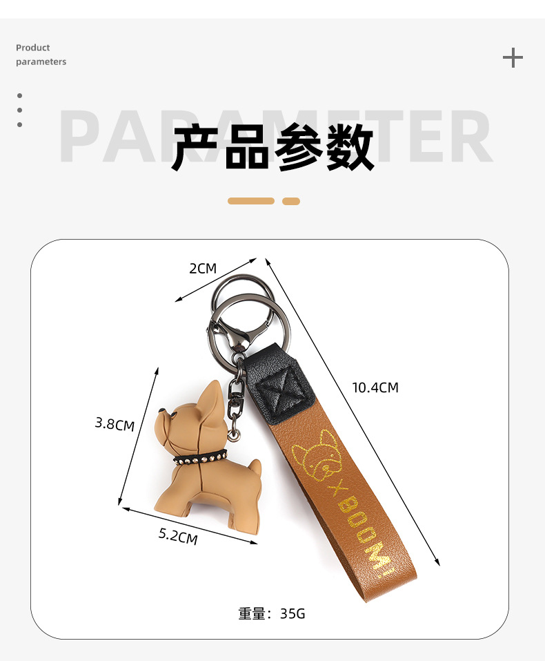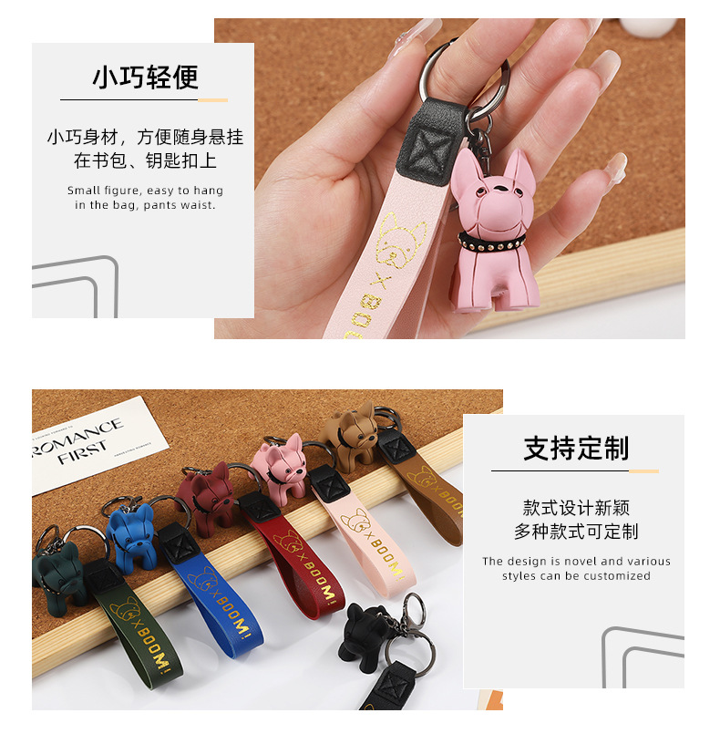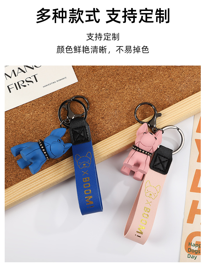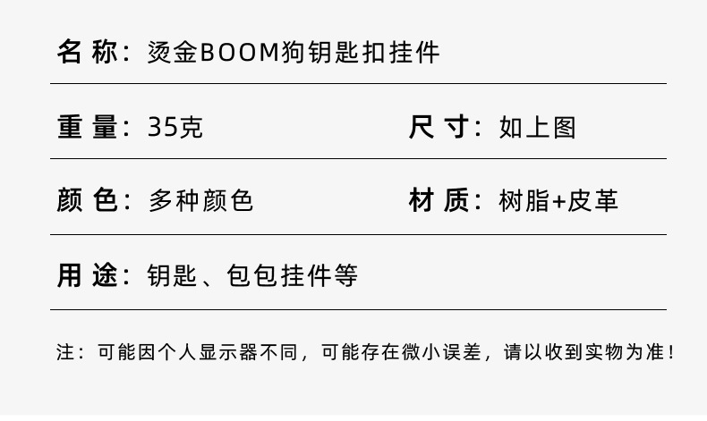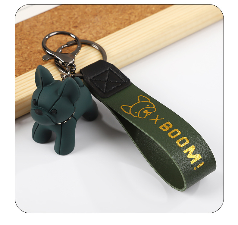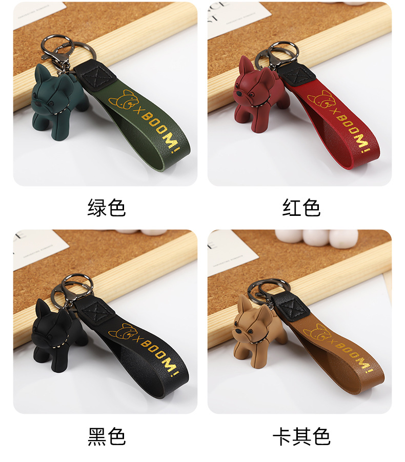 烫金BOOM狗钥匙扣可爱公仔钥匙链皮革腕带卡通小狗简约钥匙扣挂饰